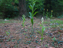 윤판나물아재비; 제주도와 울릉도의 숲속 그늘에서 자라는 다년생 식물이다. 윤판나물이 전국에서 볼 수 있고 꽃이 황금색인 데 반해 아재비는 초록빛을 띤 흰색인 점이 가장 큰 차이라고 한다. 윤 씨 성을 가진 판서가 항시 고개를 숙이고 잘난 체하지 않는 이 식물을 모델로 삼아 처신했다는 데서 윤판나물 이름이 유래됐다는 설도 있다. 나물로 먹을 수 있고 기침 등의 약재로 썼다고 한다. 꽃말은 "당신을 따르겠습니다"