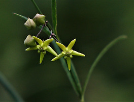 왜박주가리; 제주도와 경기도 일부 한정된 지역에서 자라는 덩굴성 다년생 초본이다. 줄기는 가늘고 연약하지만 다른 물체를 감고 길게 올라간다. 양반박주가리나 나도박주가리란 이름도 있다고 한다. 6~8월에 흑자색의 작은 꽃이 피며 9월에 열매를 맺는다. 박주가리류의 꽃말은 "먼 여행"