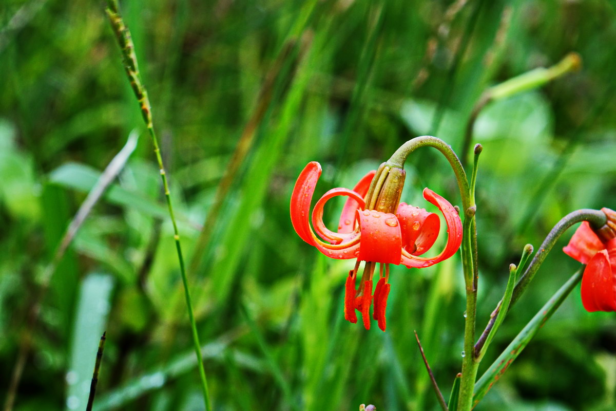 땅나리; 중부 이남의 산이나 들에 자라는 다년생 알뿌리 식물로 꽃이 땅바닥을 바라본다고 하여 땅나리란 이름이 붙었는데 중나리와 하늘나리도 꽃의 방향에 의해 이름이 생겼다. 6~7월에 피는 주홍빛 꽃은 오전에 봉오리가 뭉쳐 있다가 오후가 되면서 꽃잎이 뒤로 올라가는 현상을 보인다. 꽃말은 "발랄, 열정"