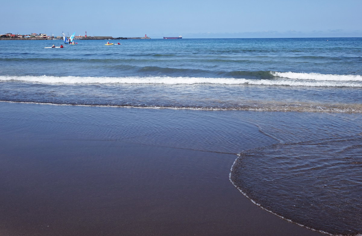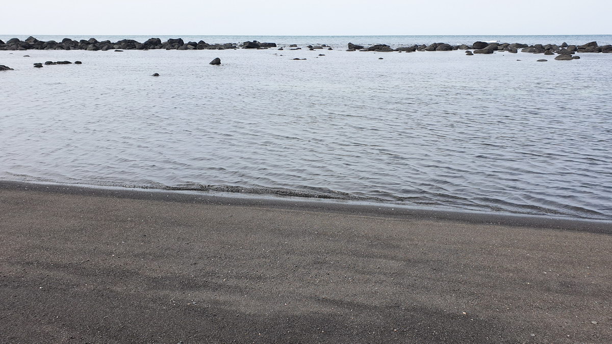 제주도 흑사장; 제주도는 코발트 빛 백사장으로 유명하지만 검은 현무암이 부서져 형성된 검은 모래 해안도 여러 곳에 있다.