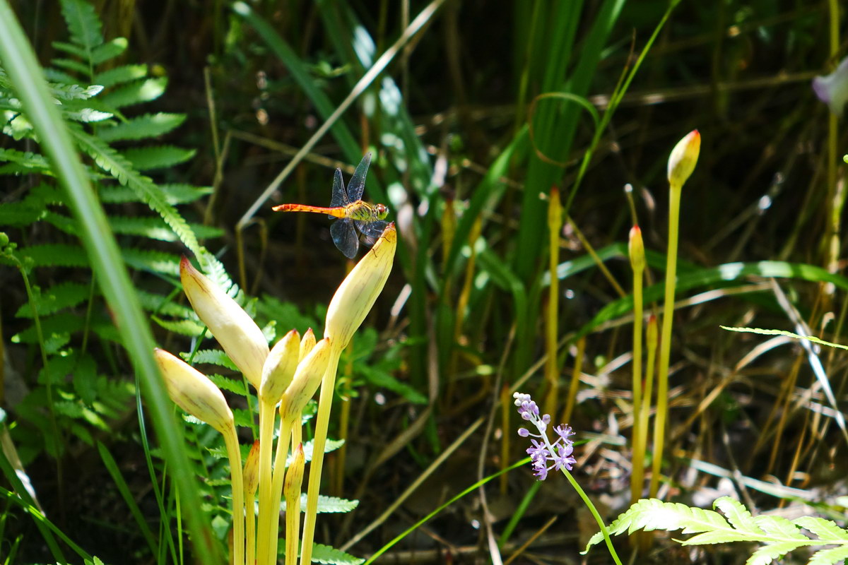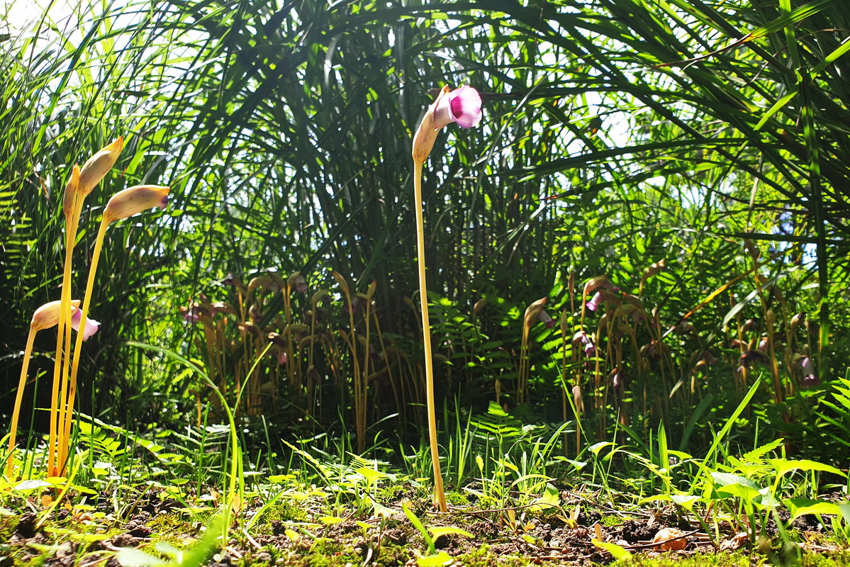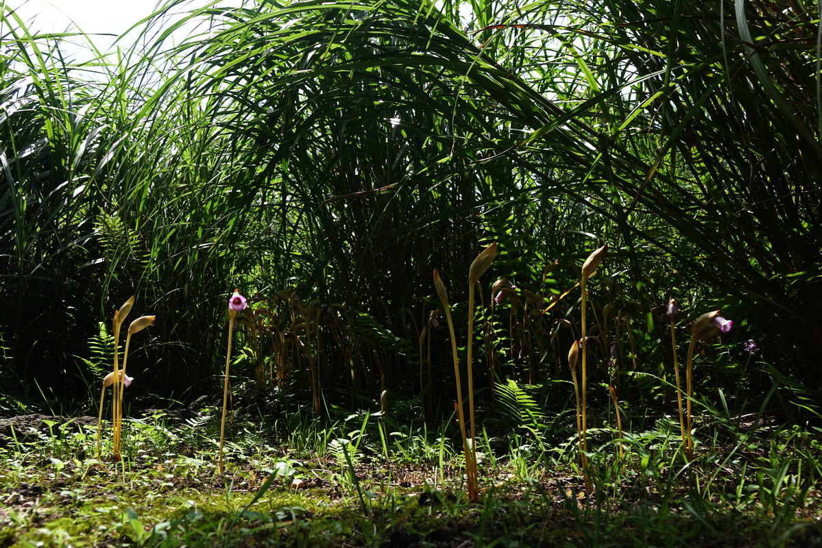 야고; 야고란 생약명으로 인후염, 골수염, 요로 감염 등의 처방약으로 사용된 것이 그대로 꽃 이름이 되었다 한다. 곰방대를 닮아 담뱃대더부살이라는 별명도 있다. 억새의 뿌리에 기생하는 식물이며 제주도에서만 자생하였는데 최근 서울 상암동 하늘공원에서도 발견된다고 한다. 광합성을 하지 않지만 몇 개의 비늘 같은 잎이 있고 짧은 줄기도 있다.