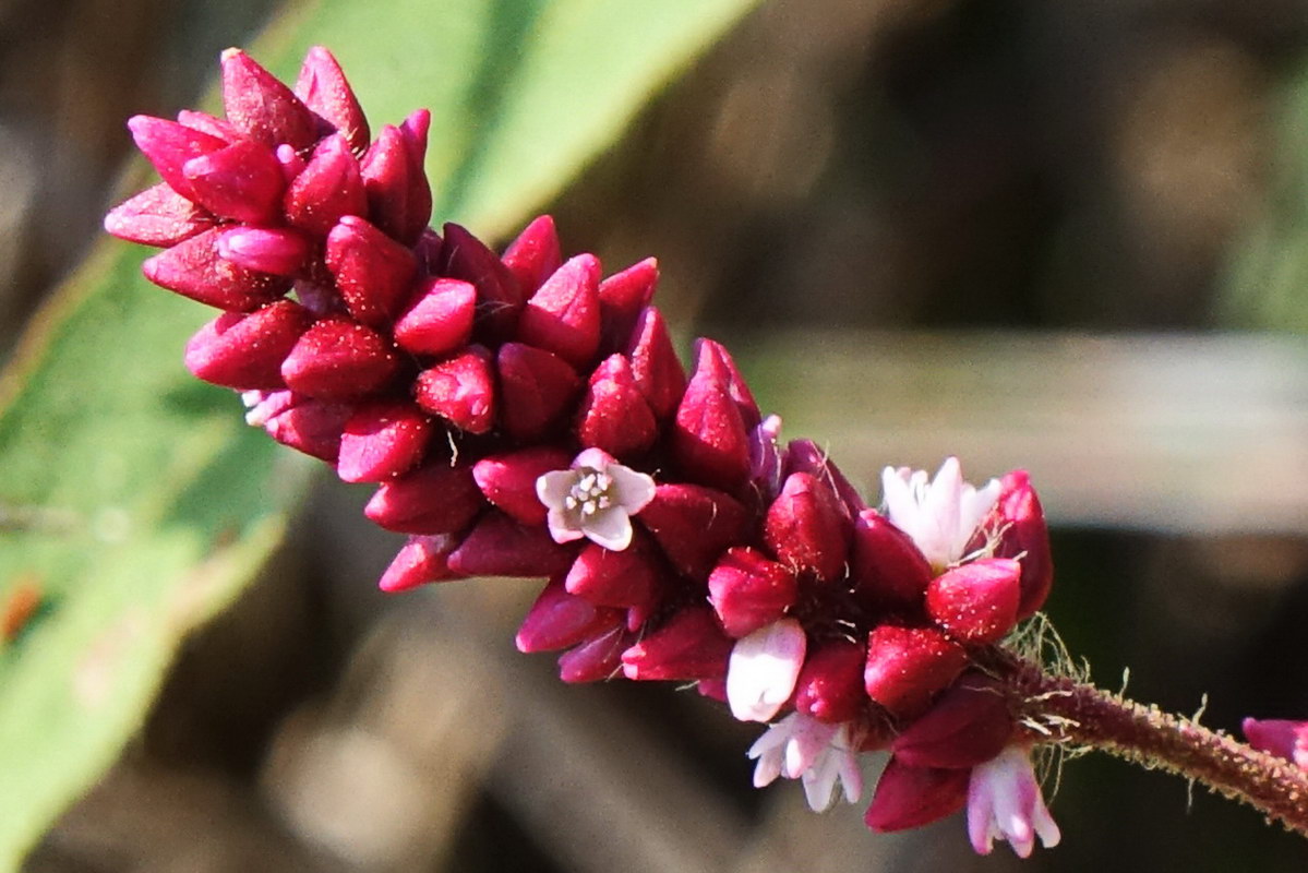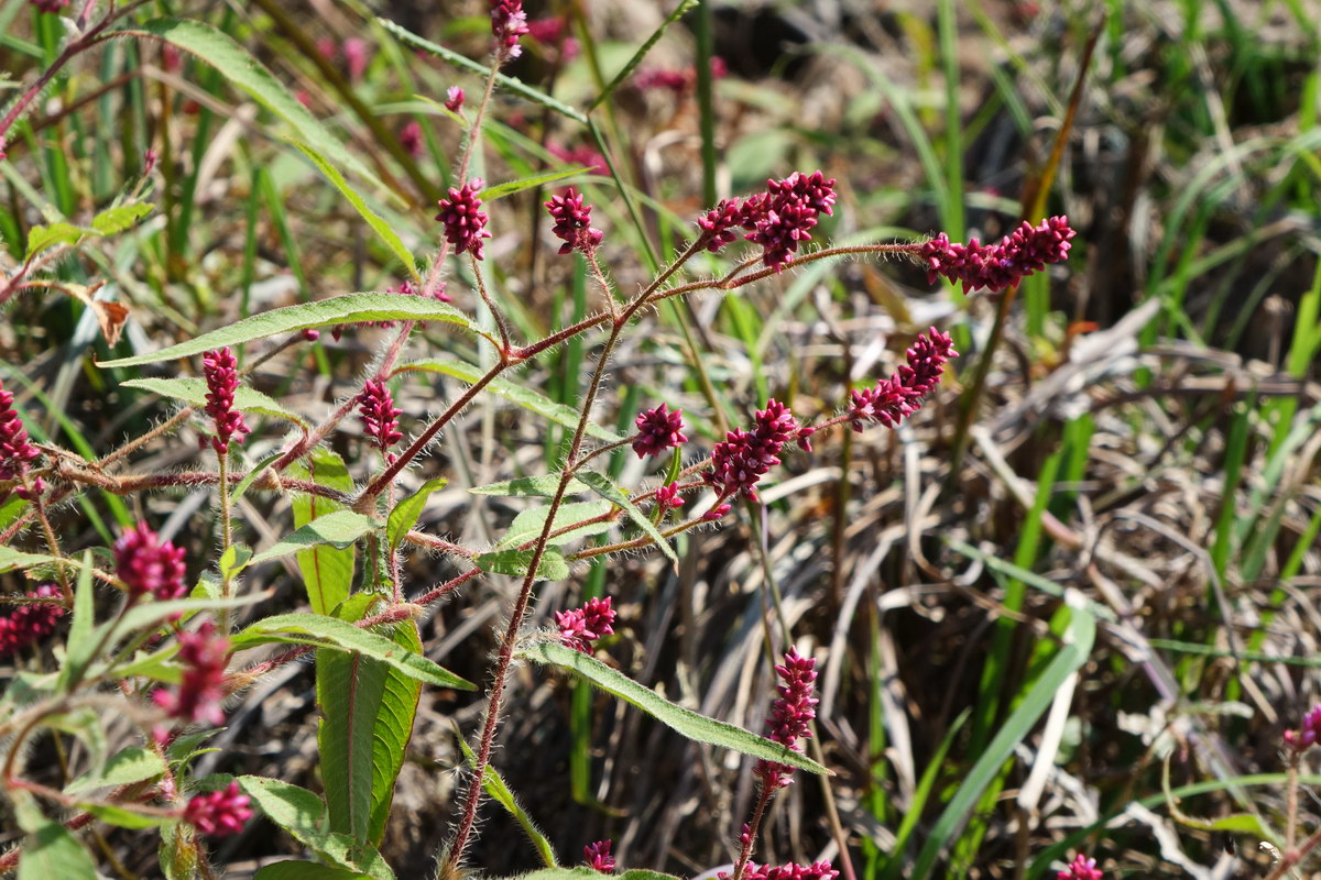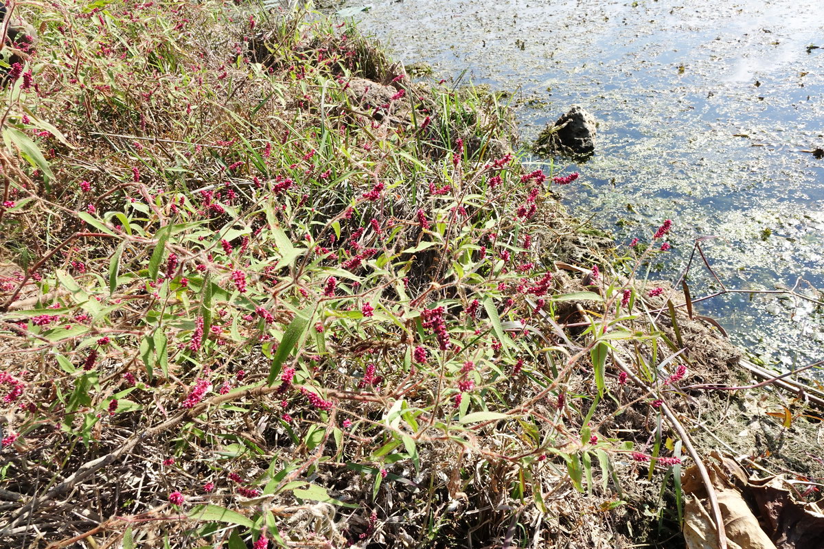 기생여뀌; 연못이나 습지에서 자라는 마디풀과의 한해살이풀이다. 키가 훤칠하고 향기가 나며 하얀 솜털이 있고 붉은색의 꽃이 피기 때문에 기생이란 이름이 붙었고 20여 종류의 여뀌 중에서 가장 아름답다는 평가를 받고 있다. 홍자색의 꽃은 여름부터 준비하여 늦가을에 만개하는데 가지 끝과 잎겨드랑이에 다닥다닥 달린다. 향여뀌라고도 하며 열매가 향료로 쓰인다고 한다. 꽃말은 “학업의 마침”