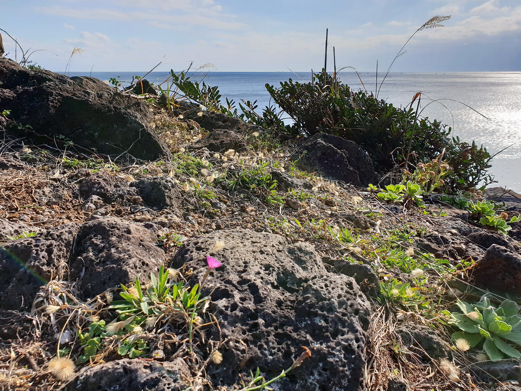 낮고 넓게 펼쳐진 현무암에 앉아 잠시 쉬려는데