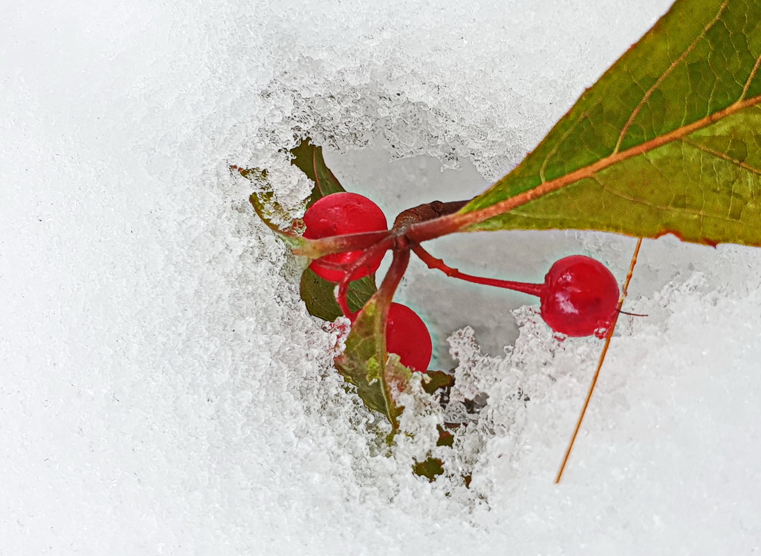 백량금; 제주도 숲속에서 사는 상록 활엽 관목으로 자금우보다 조금 큰 나무라고 하지만 나무보다는 풀처럼 보인다. 열매를 백량이나 맺는다고 하여 백량금이란 이름이 붙었다고 하는데 9월부터 이듬해 3월까지 붉은 열매를 달고 있다. 겨울에 눈에 덮이면 무게 때문에 넘어져 있는 모습을 많이 보게 되지만 빨간 열매는 보석처럼 빛난다. 한방에서는 뿌리를 주사근이란 이름으로 호흡기질환에 사용했다고 한다.