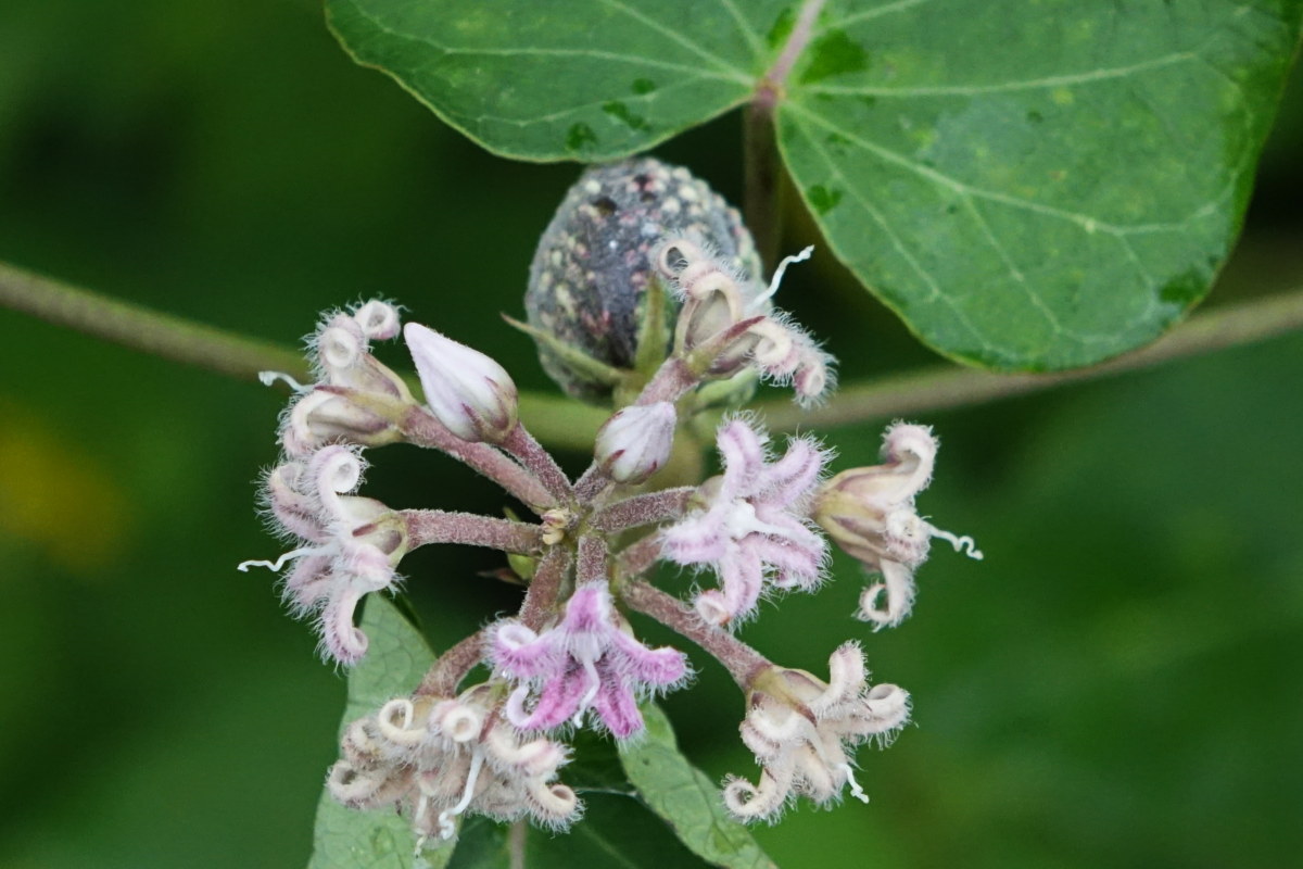 박주가리; 산이나 들판의 풀밭에서 자라는 여러해살이 덩굴성 풀이다. 땅속줄기가 길게 벋어가고 여기서 자란 덩굴이 길이 3m 정도로 자라며 줄기를 자르면 하얀 유액이 나온다. 잎은 마주나고 부드러운 털이 있으며 뒷면은 분청색인데 만지면 부직포처럼 부드럽다. 꽃은 7∼9월에 백색에 가까운 담자색으로 오랜 기간 피고 지면서 열매를 맺는다. 열매는 익으면 두 쪽으로 갈라지는데 안에서 면사상 털이 있는 종자가 나와 바람 타고 산포한다. 한방에서는 나마란 이름으로 각종 질환에 쓴다. 꽃말은 “먼 여행”