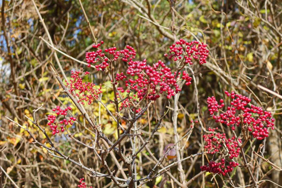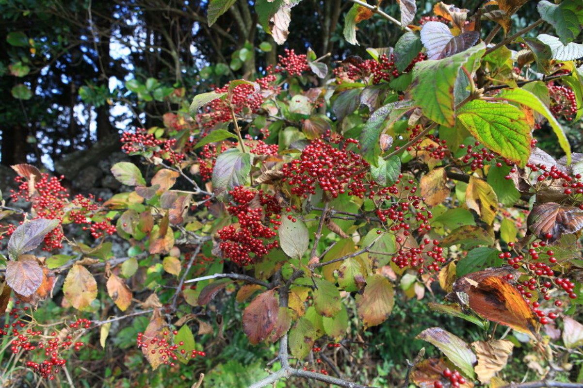 가막살나무; 낙엽 지는 활엽 관목으로 산허리 아래의 숲속에서 자란다. 내한성, 내조성, 내음성 등 공해에 강한 나무로 5월에 흰 꽃이 피고 가을철에 빨간 열매가 달리는데 겨울 늦게까지 새들의 먹이가 된다. 한방에서는 협미란 이름으로 구충제 등 다양한 약제로 썼고 열매(협미자)는 피로 해소에 좋다고 한다.