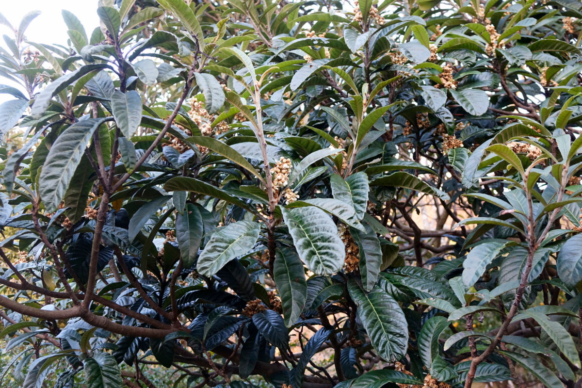 비파나무; 제주도와 남해안에서 자라는 상록성 소교목으로 잎이 현악기 비파를 닮았다. 주로 집안에서 약용, 식용, 관상용으로 심는다. 열매(비파)를 비롯하여 꽃(비파화), 잎(비파엽), 뿌리(비파근), 껍질(비파목백피), 줄기(비파간), 씨(비파인) 등 모든 것이 각각 서로 다른 질병의 약재가 된다고 하여 "비파나무 한 그루 있으면 의사가 필요 없다"는 말까지 나왔다. 겨울에 꽃 피고 여름에 열매 맺는다. 꽃말은 "현명, 온화"
