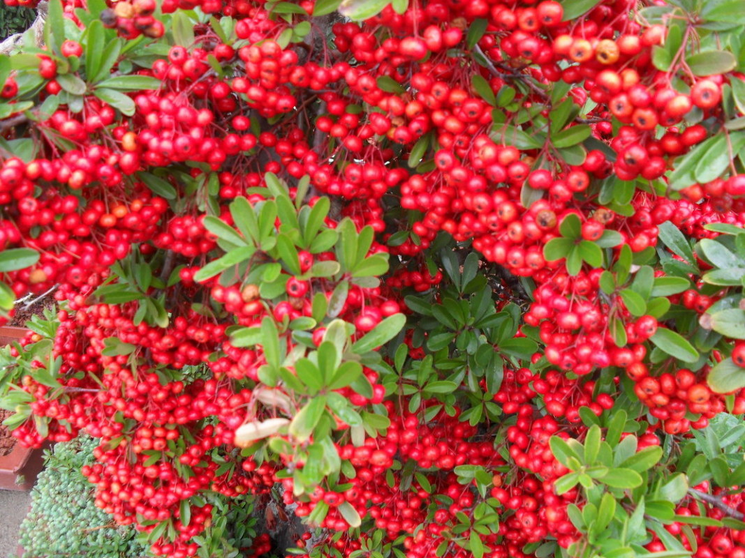 피라칸타; 남쪽 지방에서 주로 관상용으로 가꾸는 상록 작은키나무로 피라칸사스나 피라칸샤라고도 부른다. 전 세계에 있는 6종 중 제주도에는 3가지가 있는데 중국 서남부산(등황색 열매), 히말라야산(주홍색 열매), 유럽 남부산(붉은 열매) 등으로 구분된다. 5~6월에 흰색의 꽃이 피고 가을에 열매를 맺는데 다음 해 3월까지 달려 있다. 꽃말은 "알알이 영근 사랑"