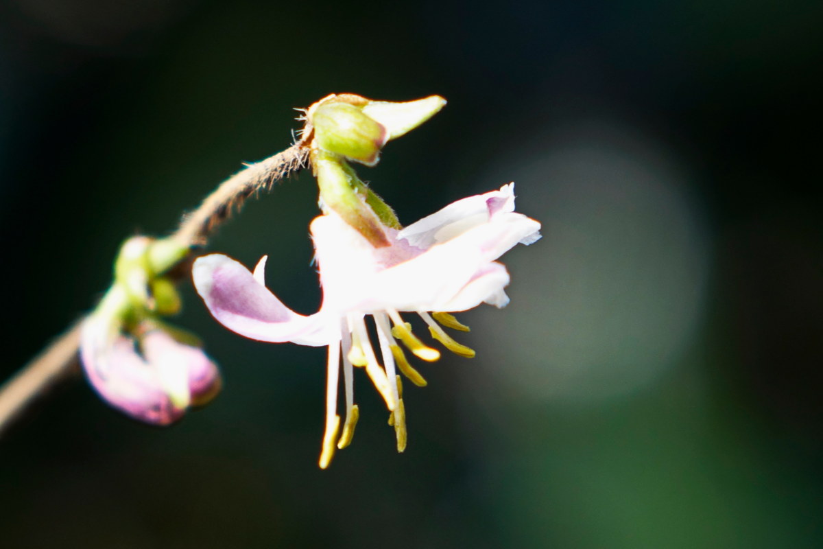 길마가지나무; 산기슭 바위틈 등지에서 자라는 낙엽 떨기나무로 잎이 나오기 전에 가지 끝에 2개씩 흰색의 꽃을 피운다. 약간 긴 꽃자루와 노란색의 꽃밥이 스케이트 신은 모습을 닮았다. 전국에 분포하며 4월에 꽃이 핀다고 되어 있음에도 이른 곳은 2월에도 피어나지만, 올해는 조금 늦은 편이다. 꽃 진 후 열매가 소의 안장인 길마를 닮아서 이름이 생겼다고 한다. 꽃말은 "소박함"