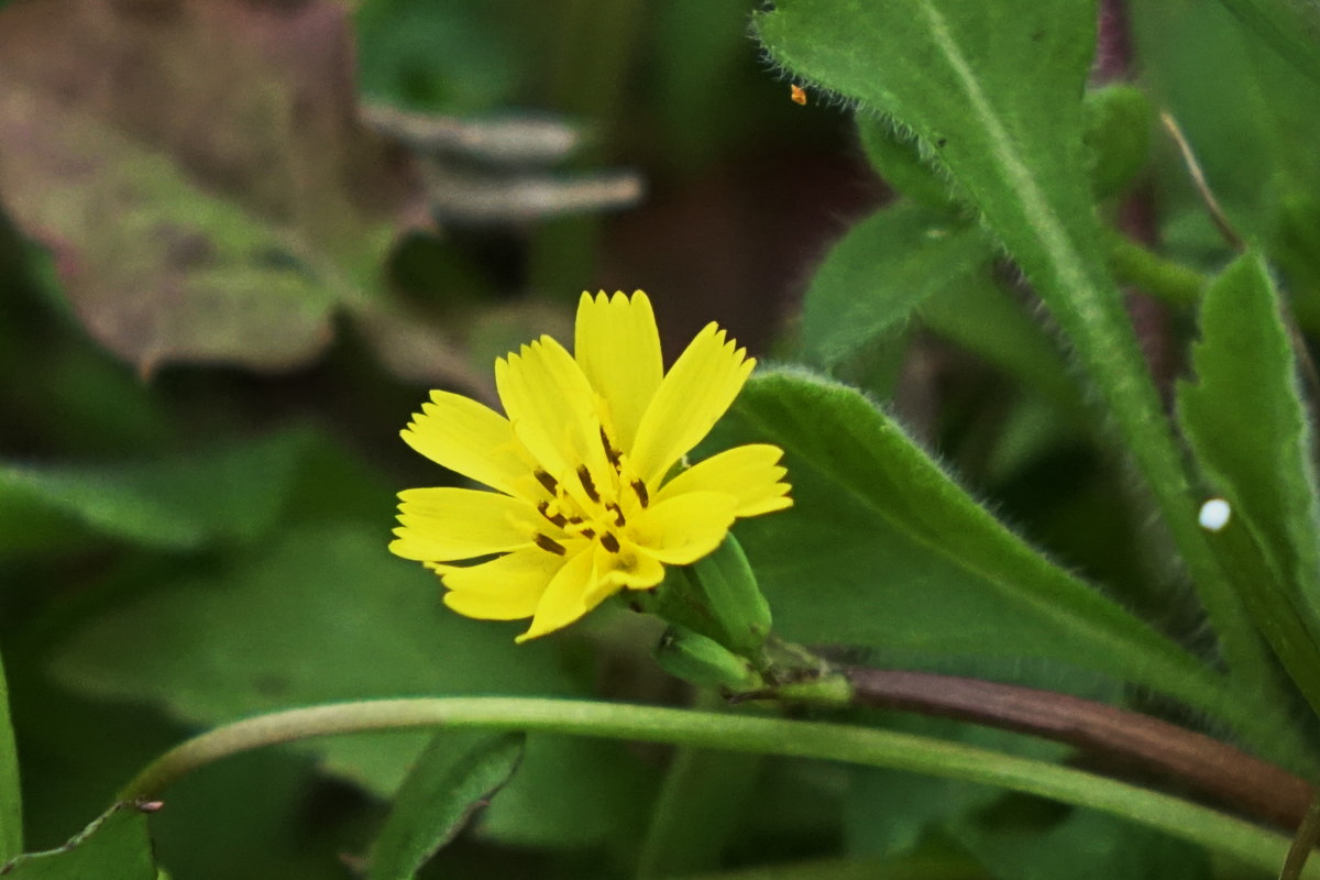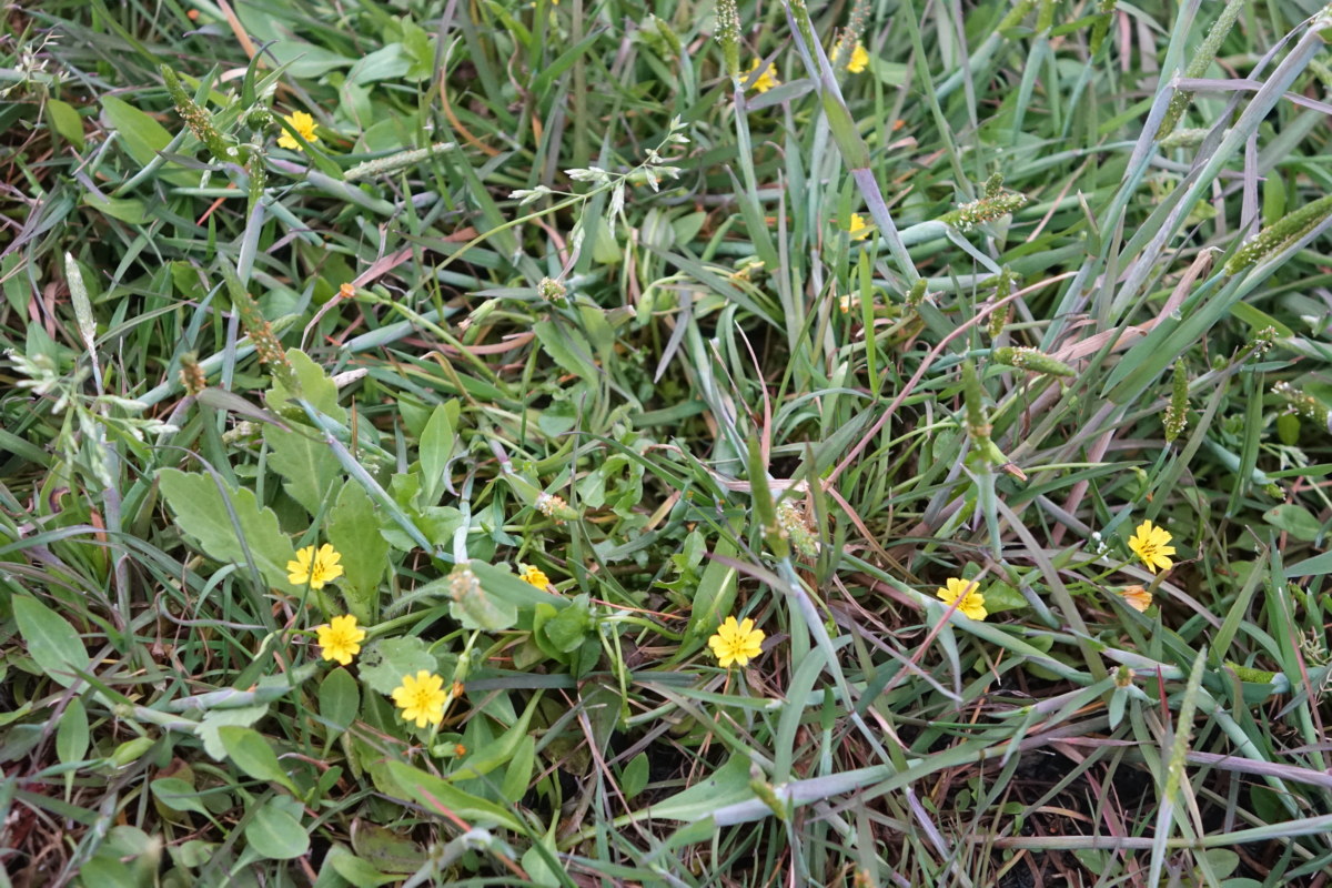 개보리뺑이; 호남 일부 지역과 제주도 하논 바닥에 붙어사는 2년생 풀로 된장뚝갈이나 보리뺑풀로도 불린다. 3~5월에 피는 노란 꽃이 뽀리뱅이보다는 조금 크나 줄기를 곧게 세우지 못하고 바닥에 눕는 편이다. 잎이 민들레와 비슷하고 나물로 먹을 수 있다고 한다. 꽃말은 "발랄"