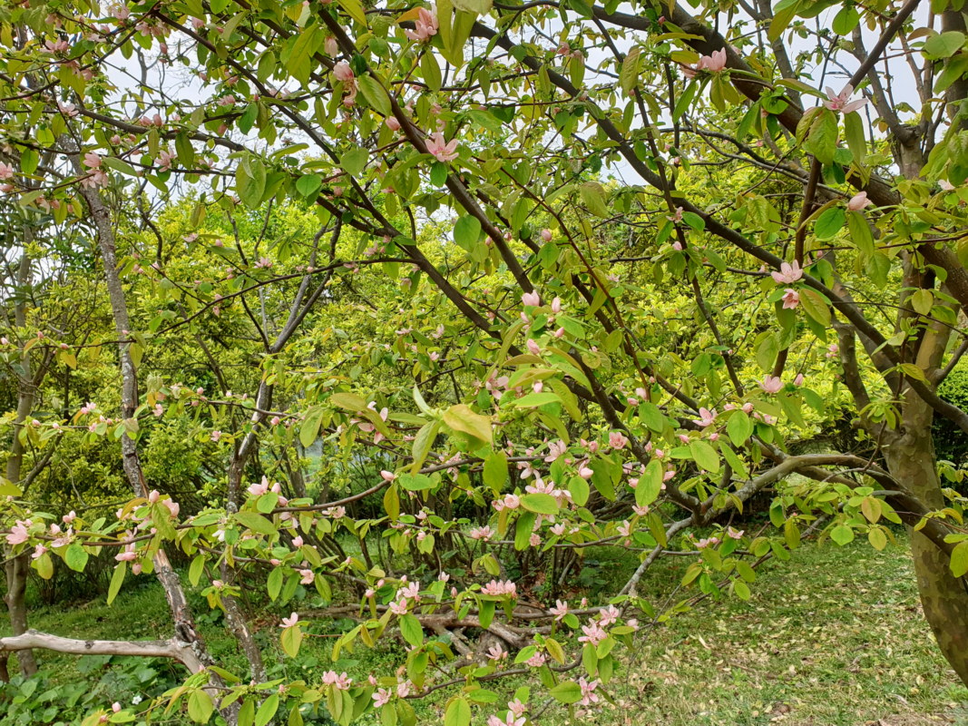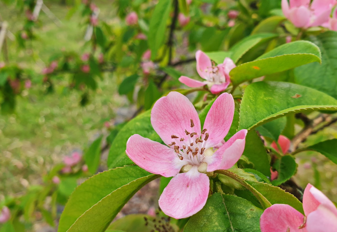 모과나무; 나무에 열리는 참외라는 의미의 모과가 달리는 넓은잎 떨기나무로 껍질이 조각으로 벗겨지는 특징이 있다. 꽃은 4~5월에 분홍색으로 피고 열매는 9월에 익어 겨울까지 달려 있다. 모과는 못생긴 과일의 대명사에서부터 여러 가지 식용 약용 등에 이르기까지 말이 많은 대상이다. 꽃말은 "평범, 조숙, 정열"