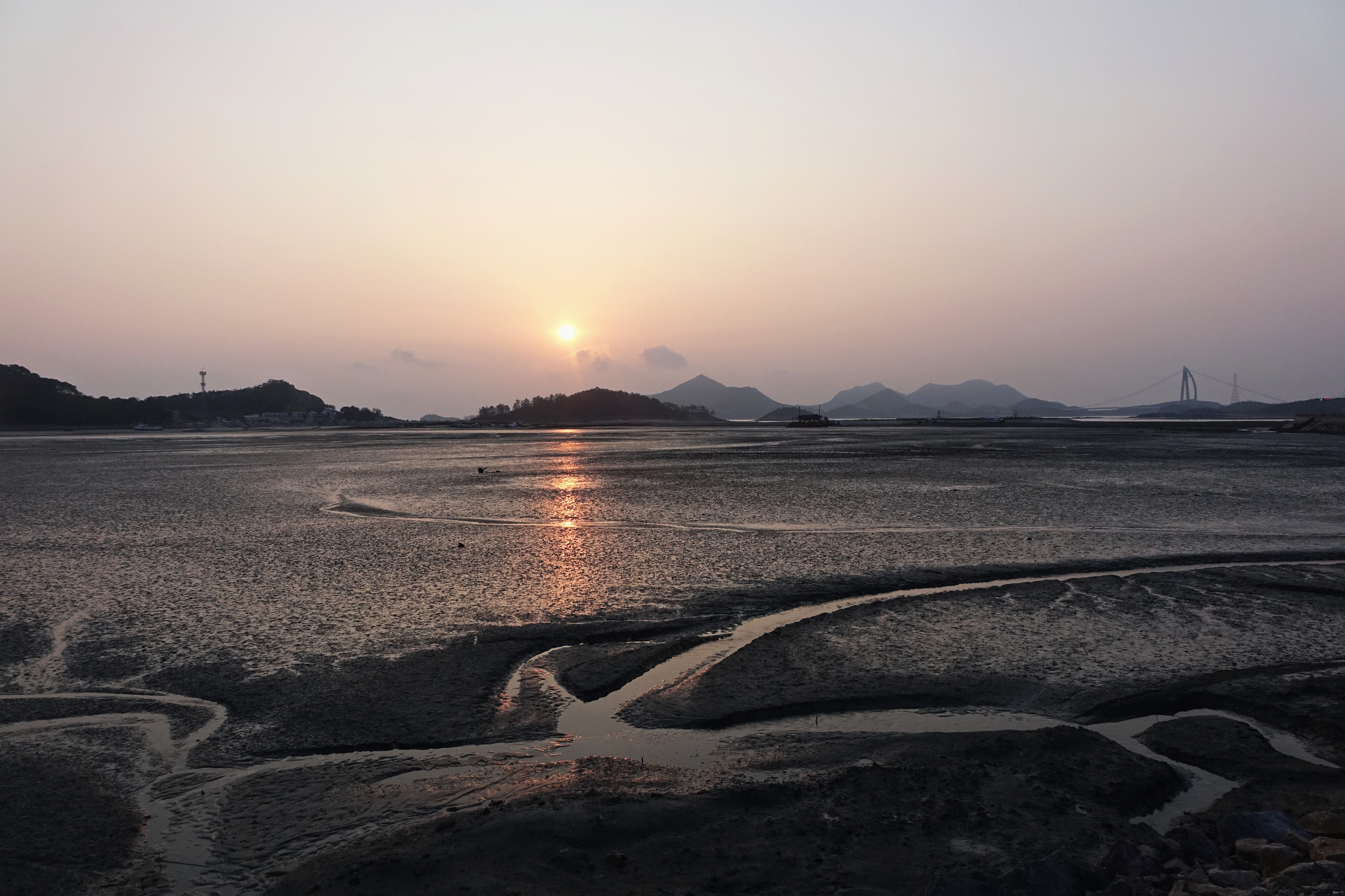 다만 물 빠진 갯벌의 물골에 비친 반사 빛은 그런대로 운치가 있었다네요