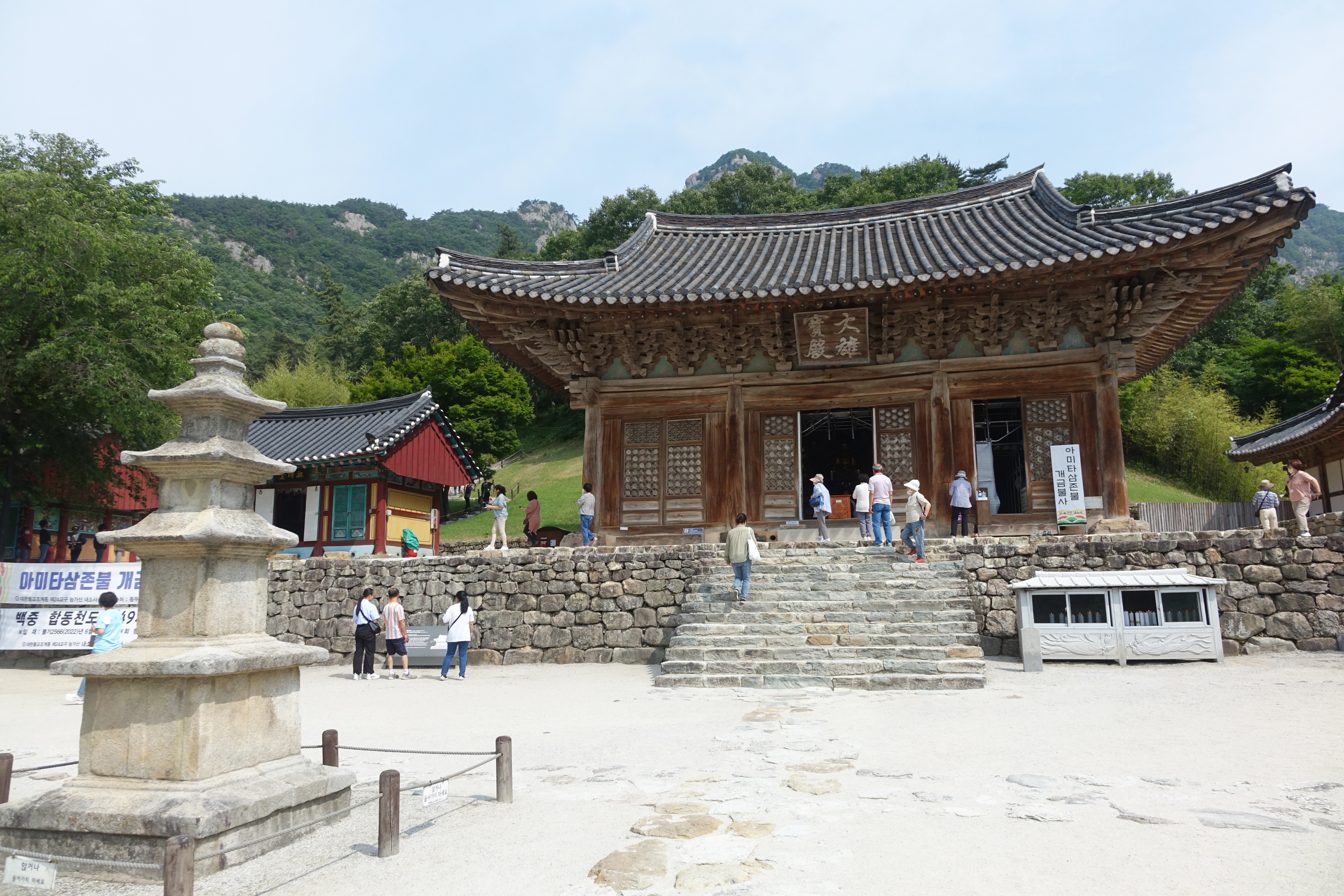 색이 바래서 고찰 같은 느낌을 보이는 대웅전에는 사람들이 많이 드나들고 있었는데