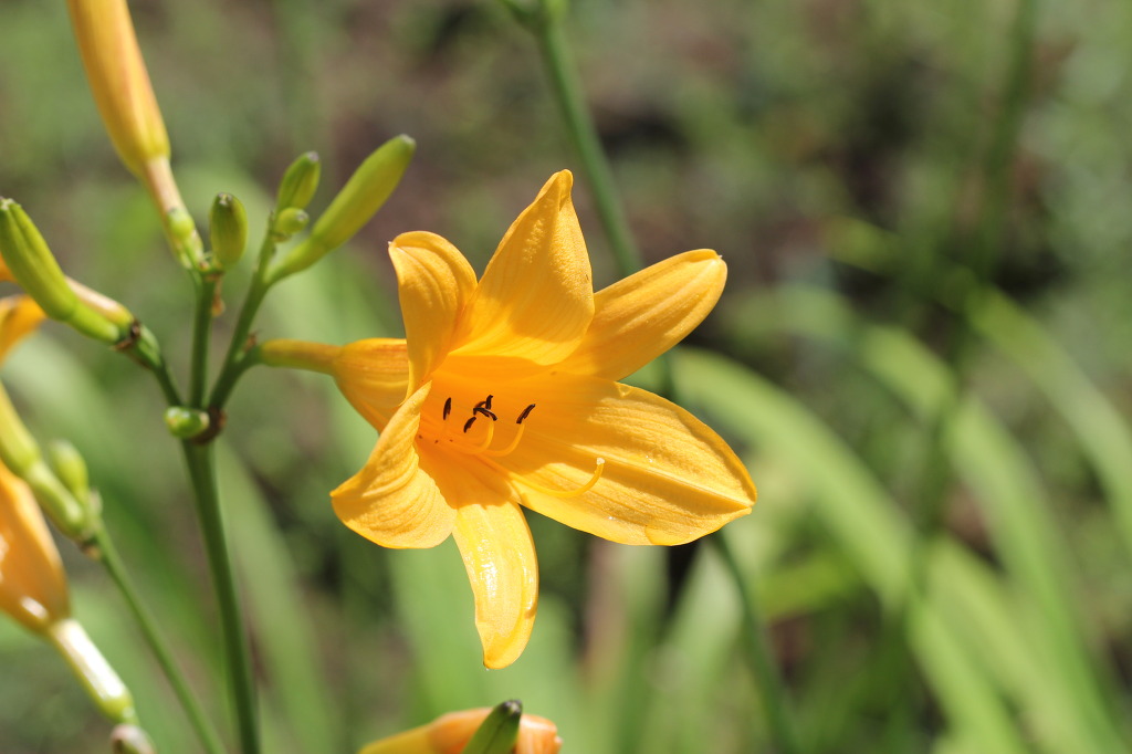 원추리; 넘나물이라고도 하며 금침채, 망우초, 의남화, 모여초 등 다양한 이름도 있다. 산기슭이나 습기가 많으면서도 토양이 비옥한 곳에서 주로 자라는 한국 전형의 고전적 식물이다. 어린 순을 나물로 먹고 있으며 꽃은 비타민이 풍부해 요리에 사용되고 색을 넣은 밥을 짓거나 소주에 담아 피로회복제로 마시기도 한다. 한방에서 훤초근이라 불리는 뿌리는 이뇨, 지혈, 소염제로 쓰인다. 원추리 꽃은 수더분하고 조용한 어머니의 상징이라 하여 훤초 또는 훤당이라는 말도 나왔다 하며 "기다리는 마음" 또는 "근심을 잊는" 꽃말과 함께 어머니의 공간인 집안 정원의 주인이라고도 한다.