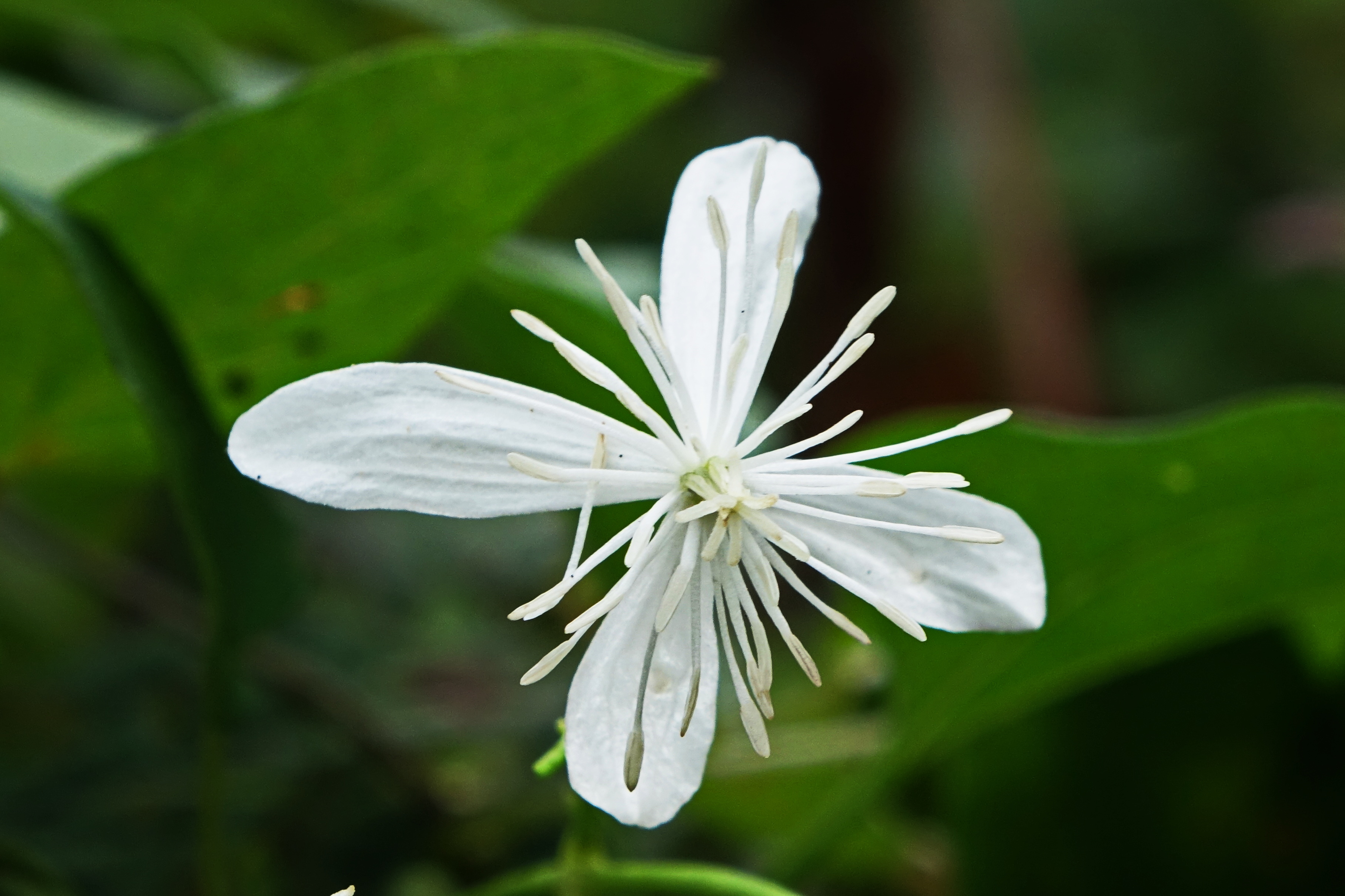 참으아리; 으아리가 봄꽃이라면 참으아리는 가을꽃이라 할 수 있으며 제주도에서는 겨울철에도 볼 수 있는데 주로 바닷가에서 자란다. 꽃받침이 4장으로 고정되어 있고 수술과 암술이 으아리에 비해 길며 잎은 두꺼우면서도 윤기 나고 부드럽다. 털이 밀생한 꽃자루는 으아리보다 짧고 통통하고 꽃봉오리는 면봉처럼 생겼다. 외대의아리나 큰꽃으아리와도 차이점이 조금씩 있다.