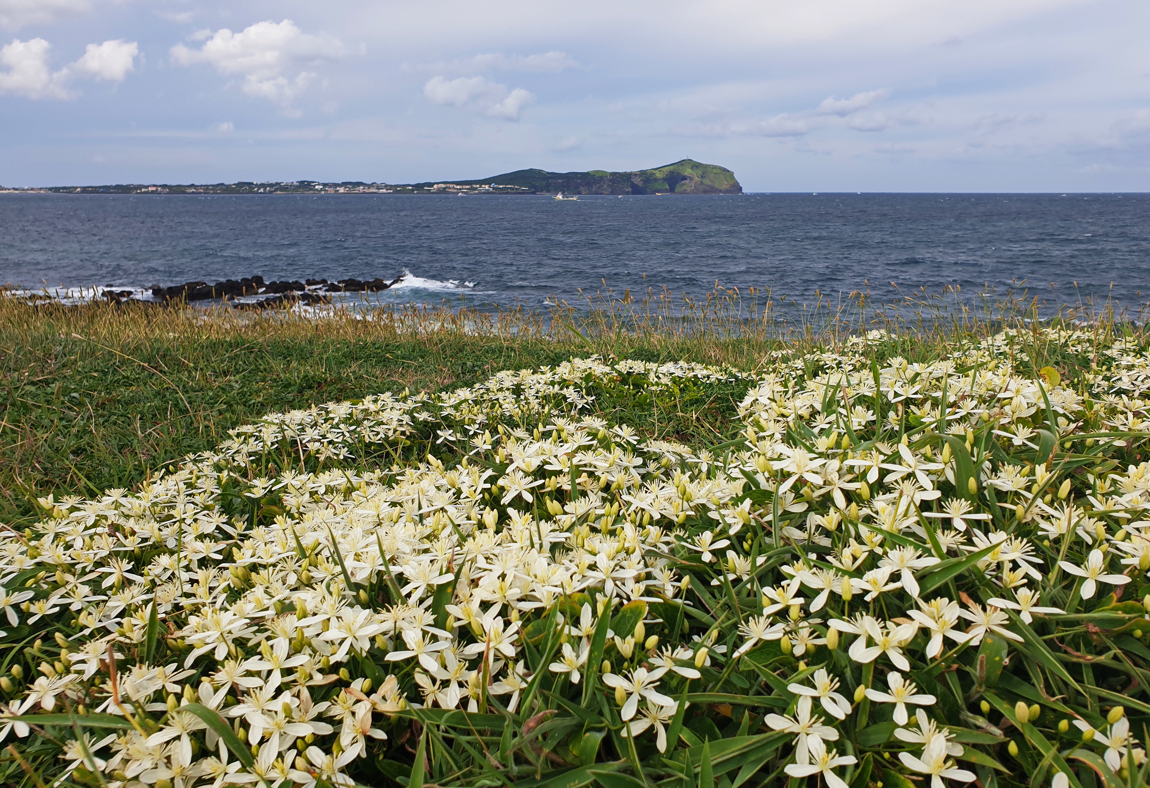 가을날에 하얀 꽃 피우고