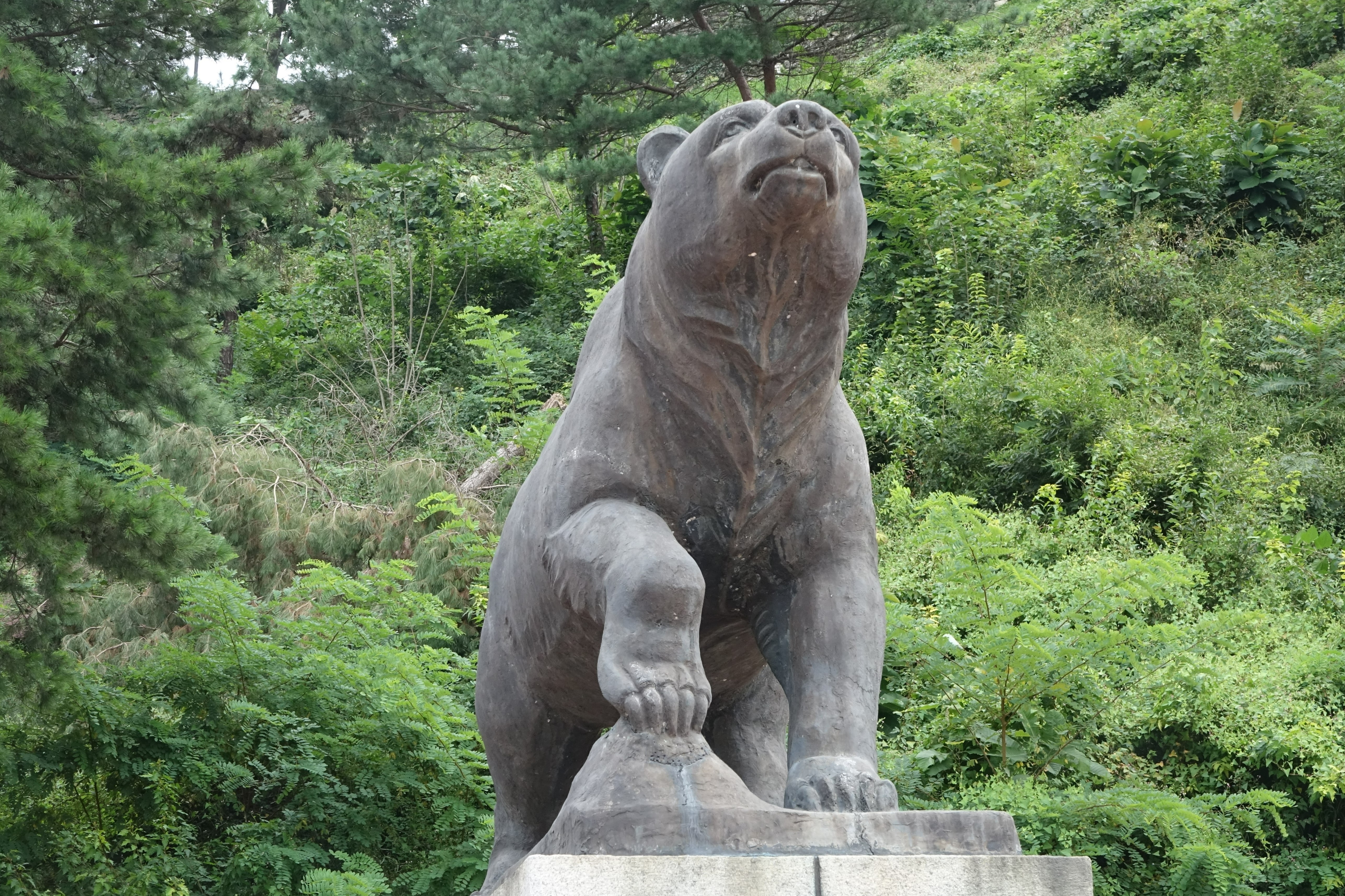 - 곰의 돌 조각상과 자연산 수석 -