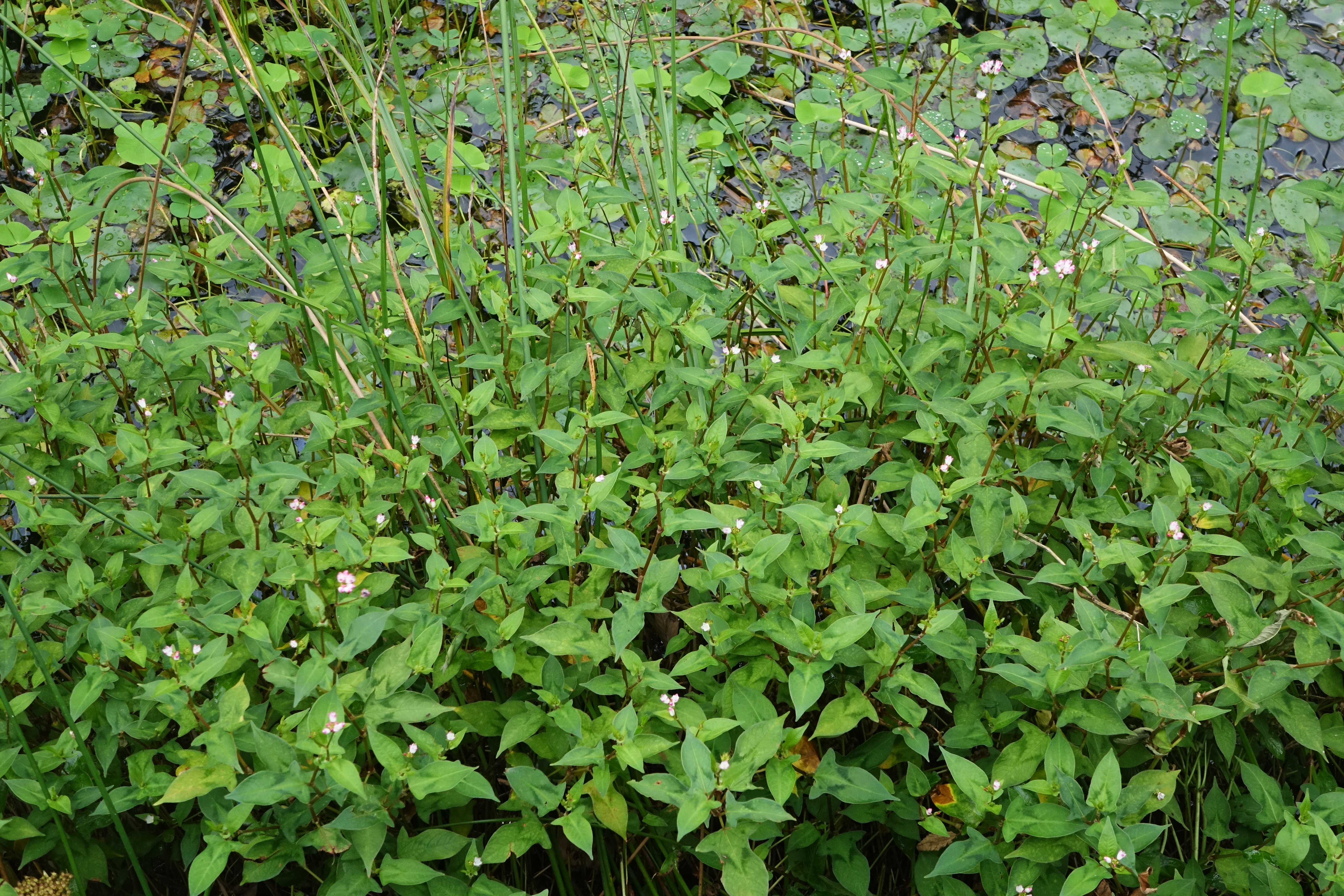 고마리; 고만이라고도 하며 냇가나 도랑 등 양지바른 물가에서 많이 자란다. 꽃의 형태와 피는 시기 및 색깔 그리고 잎의 모양새 등이 지역에 따라 조금씩 다르다. 줄기와 잎을 지혈제, 요통, 소화불량 등에 사용했고 꽃은 꽃차로 쓰고 열매는 어려울 때 수제비 만들어 먹는 등 활용도가 무궁무진하다고 한다. 수중으로 뿌리를 뻗어 질소화합물과 유기질을 흡수하는 수질 정화 능력이 뛰어나다고 한다. 꽃말은 꿀의 원천.