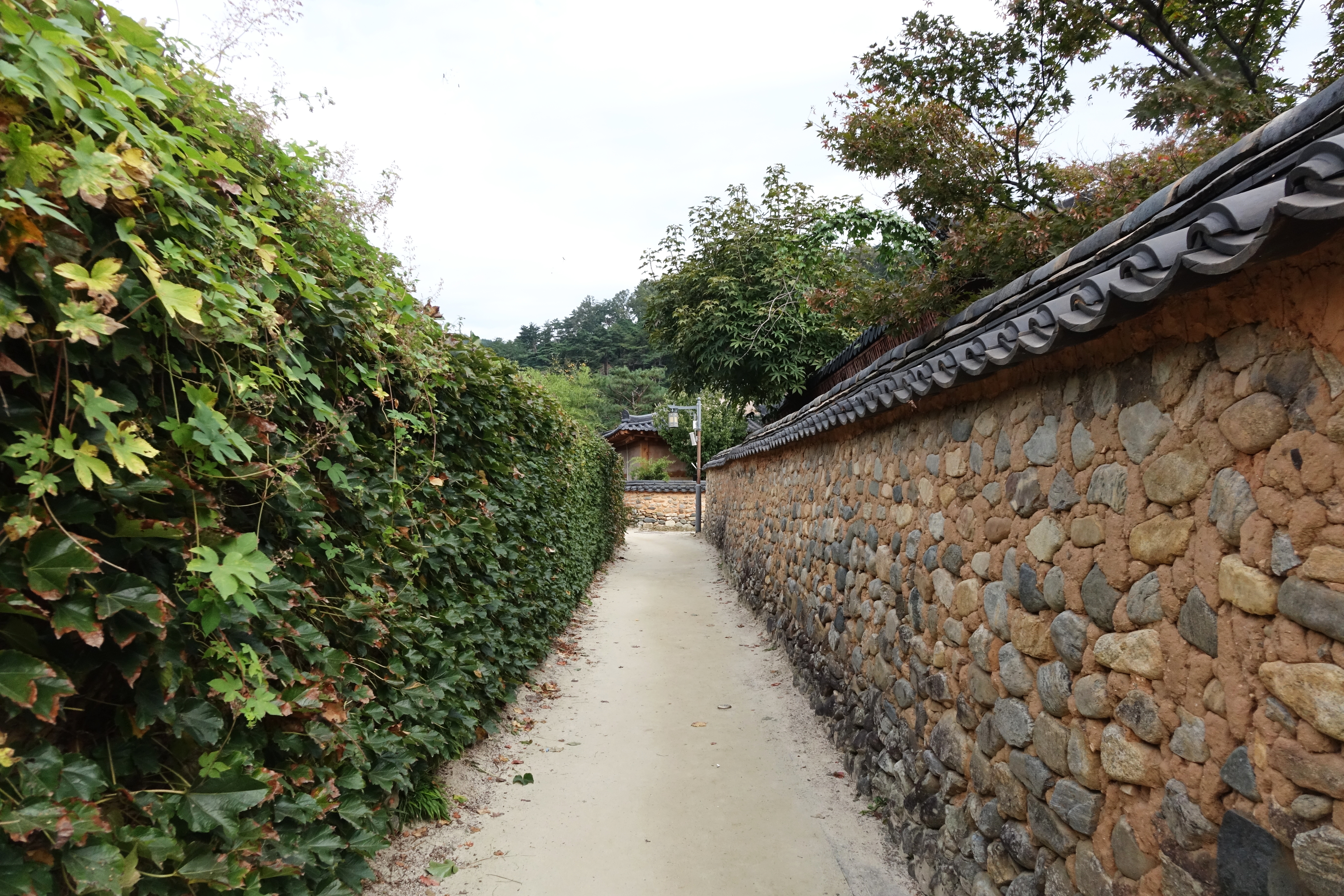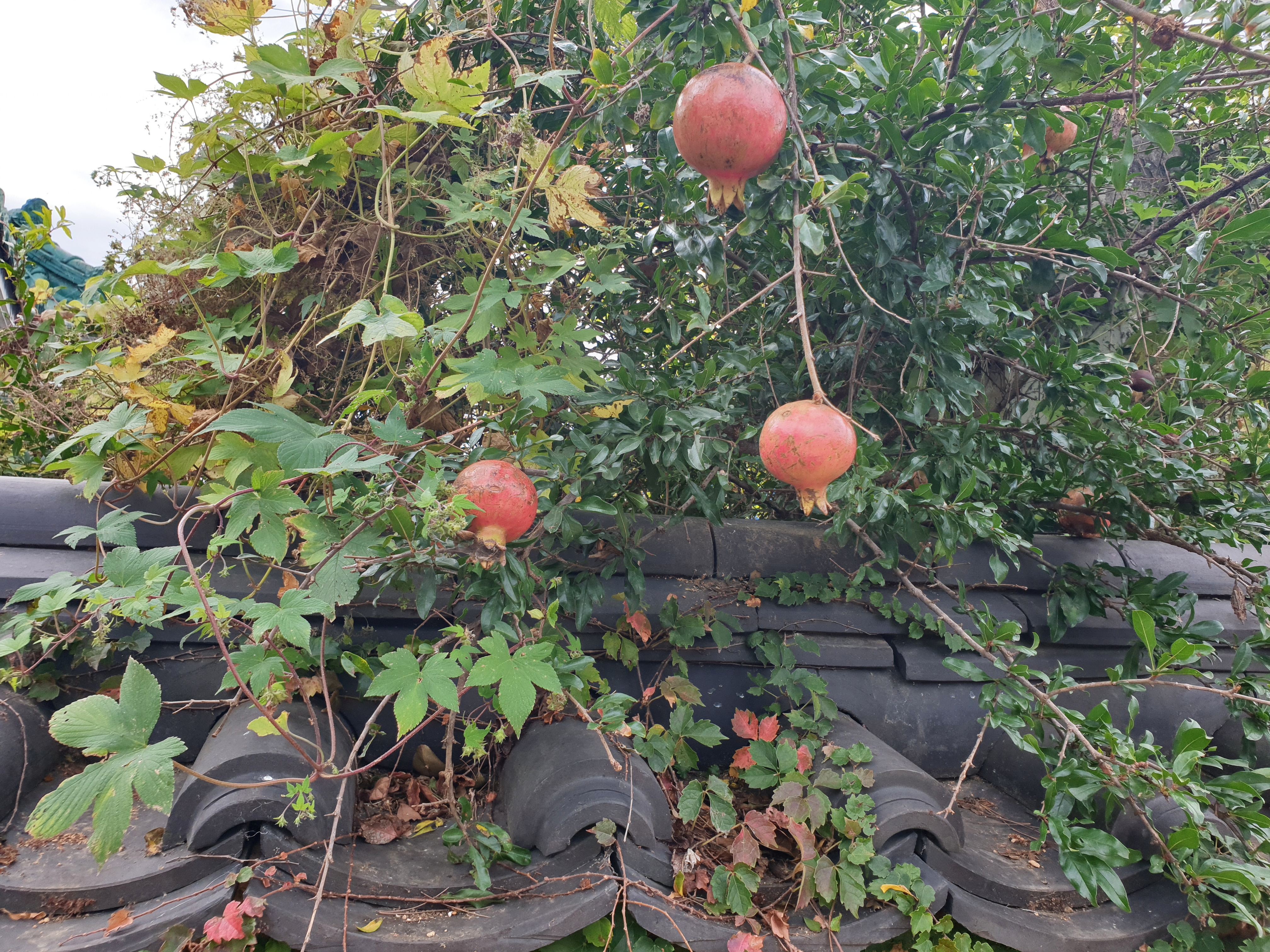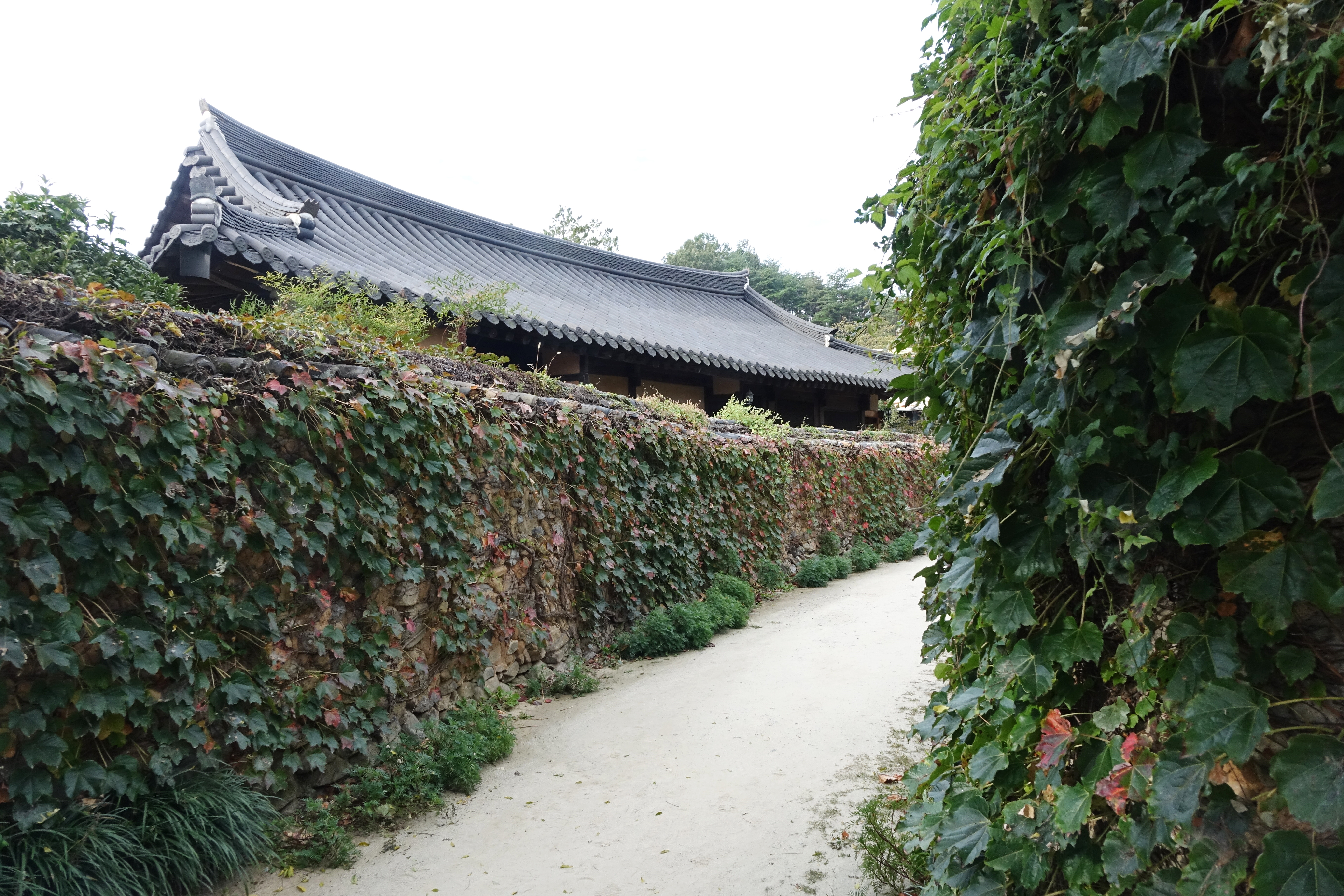 그래서 기와지붕인 흙돌담은 비교적 견고하다 보니 담장엔 덩굴식물이 자라서 완전 덮어 버리는 경우도 많았다.