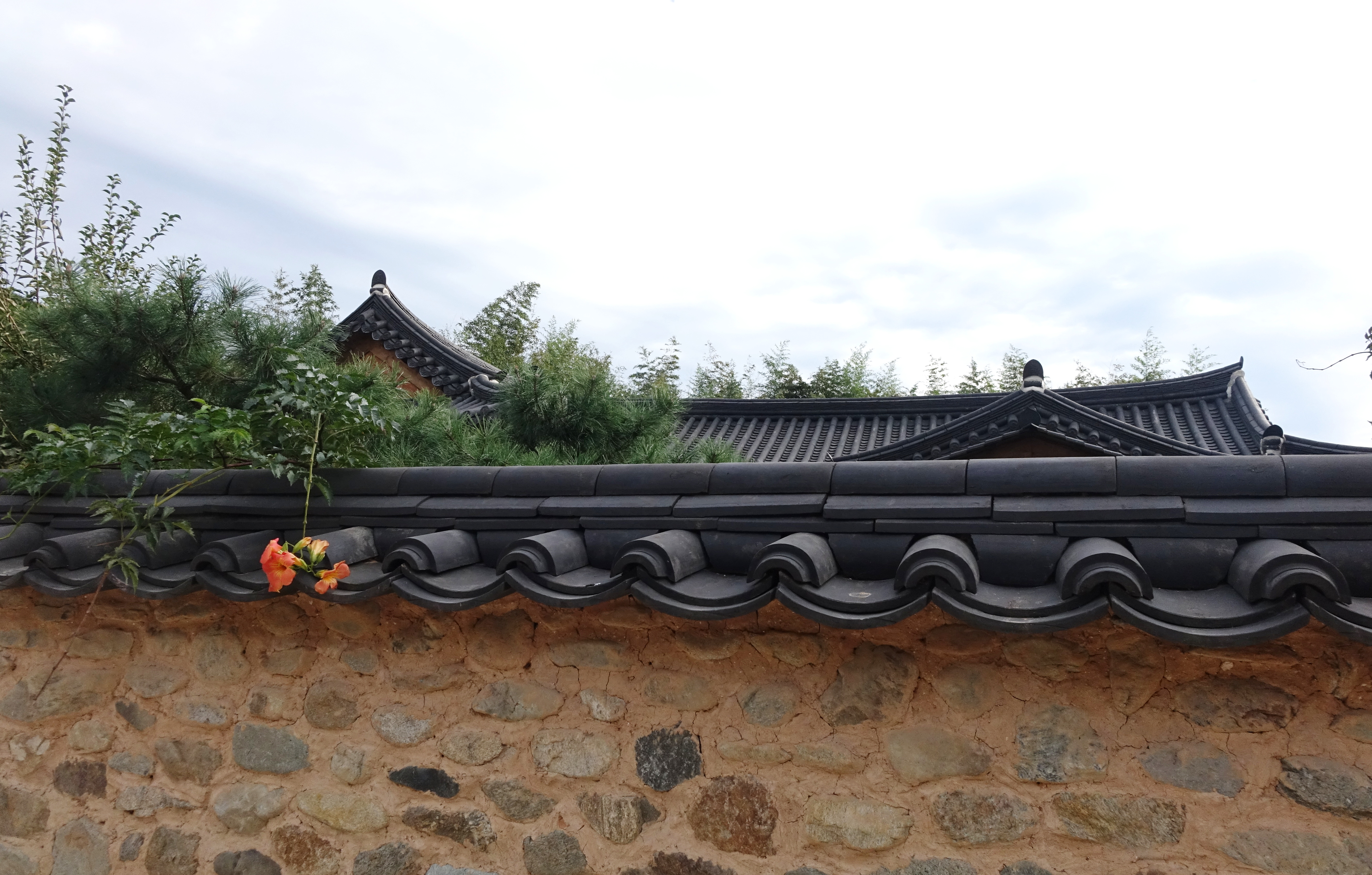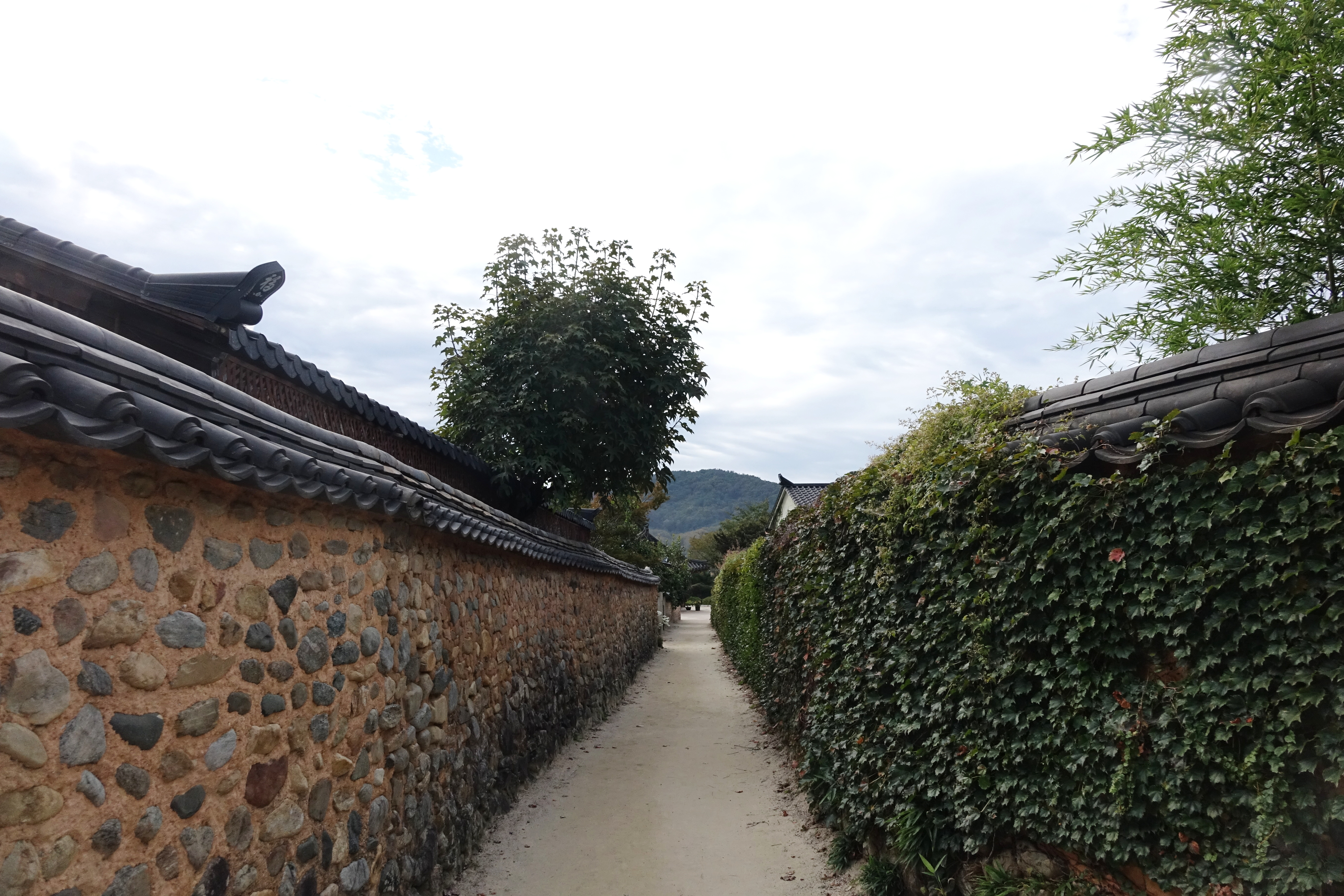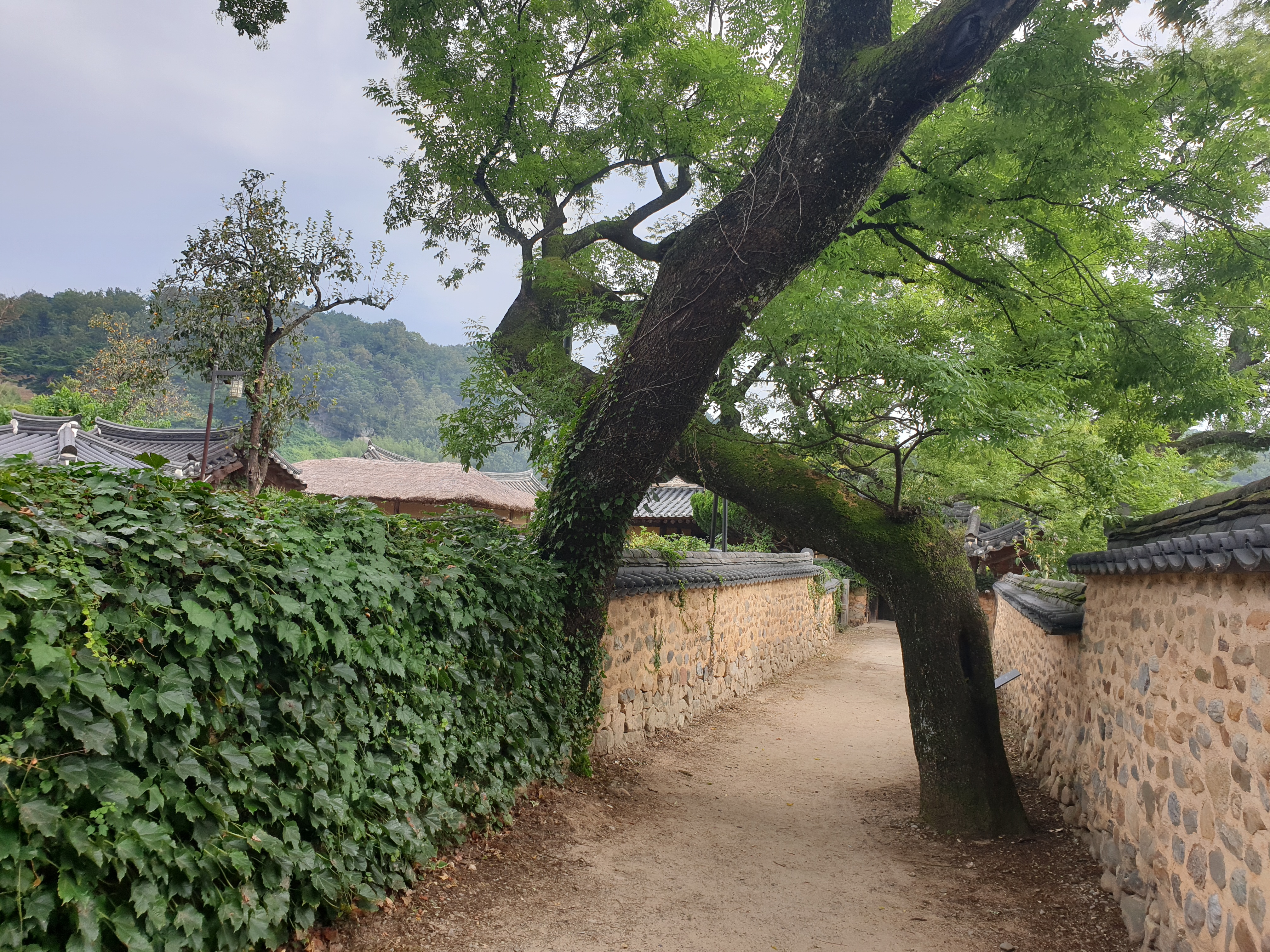 그래서 기와지붕인 흙돌담은 비교적 견고하다 보니 담장엔 덩굴식물이 자라서 완전 덮어 버리는 경우도 많았다.