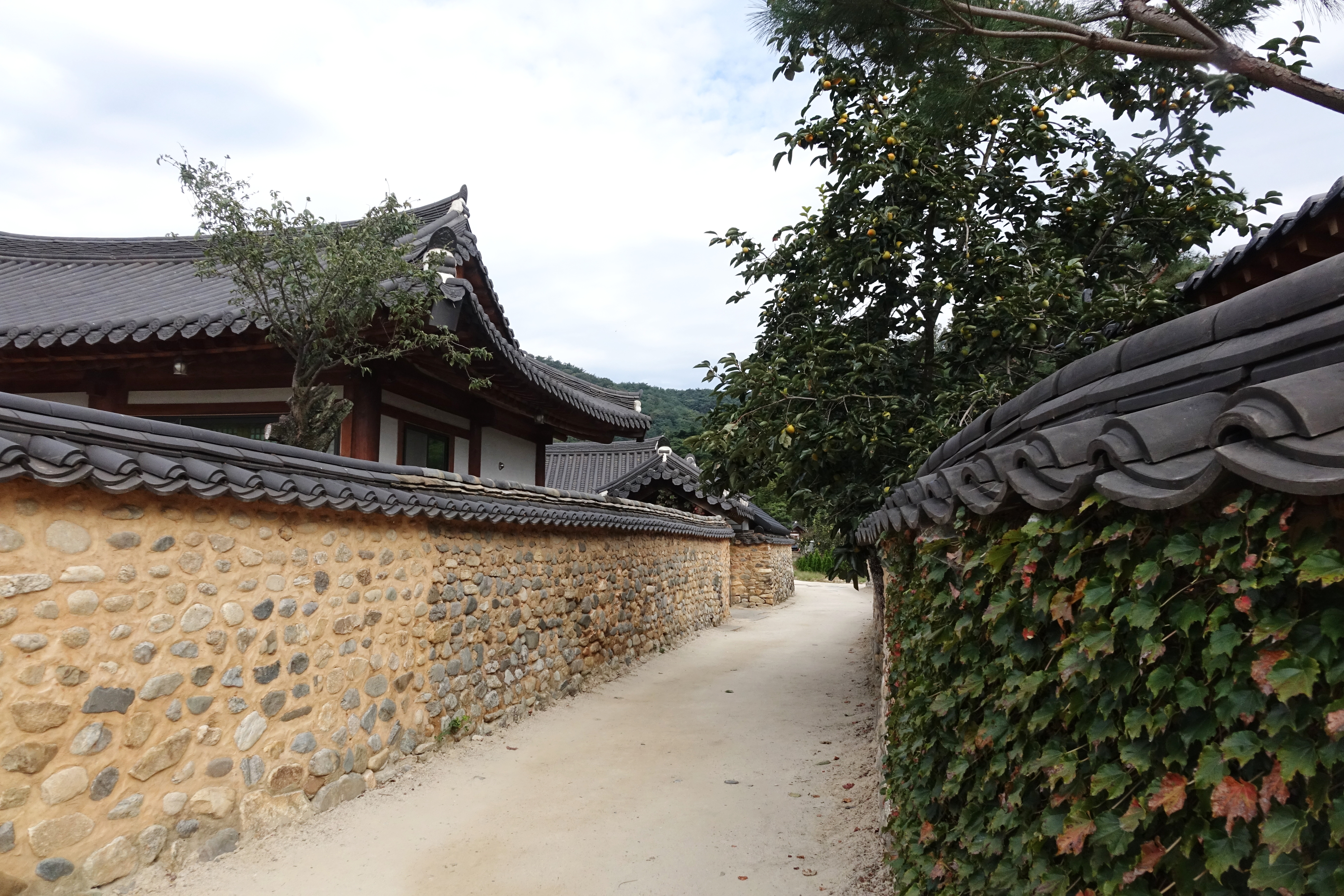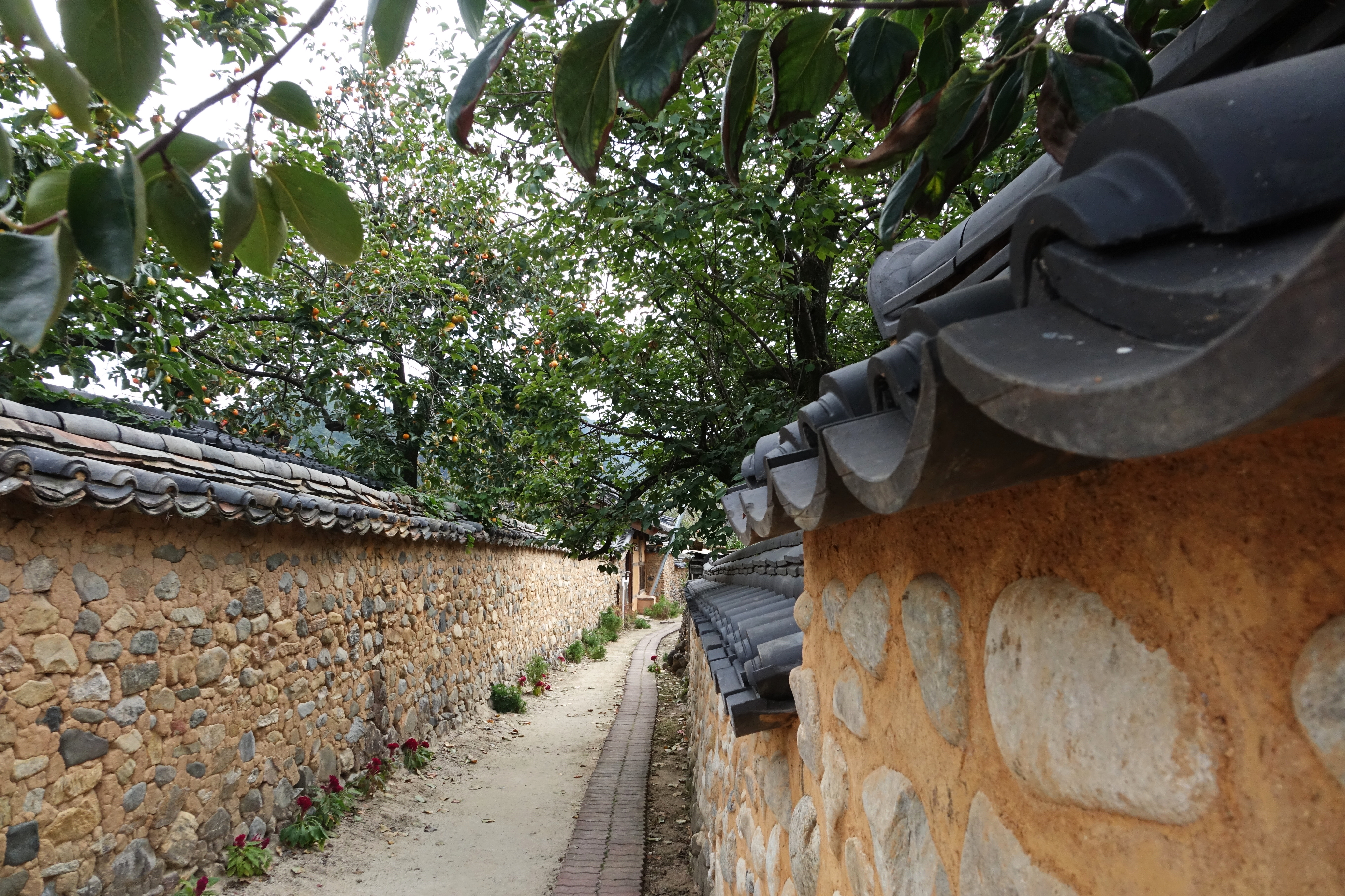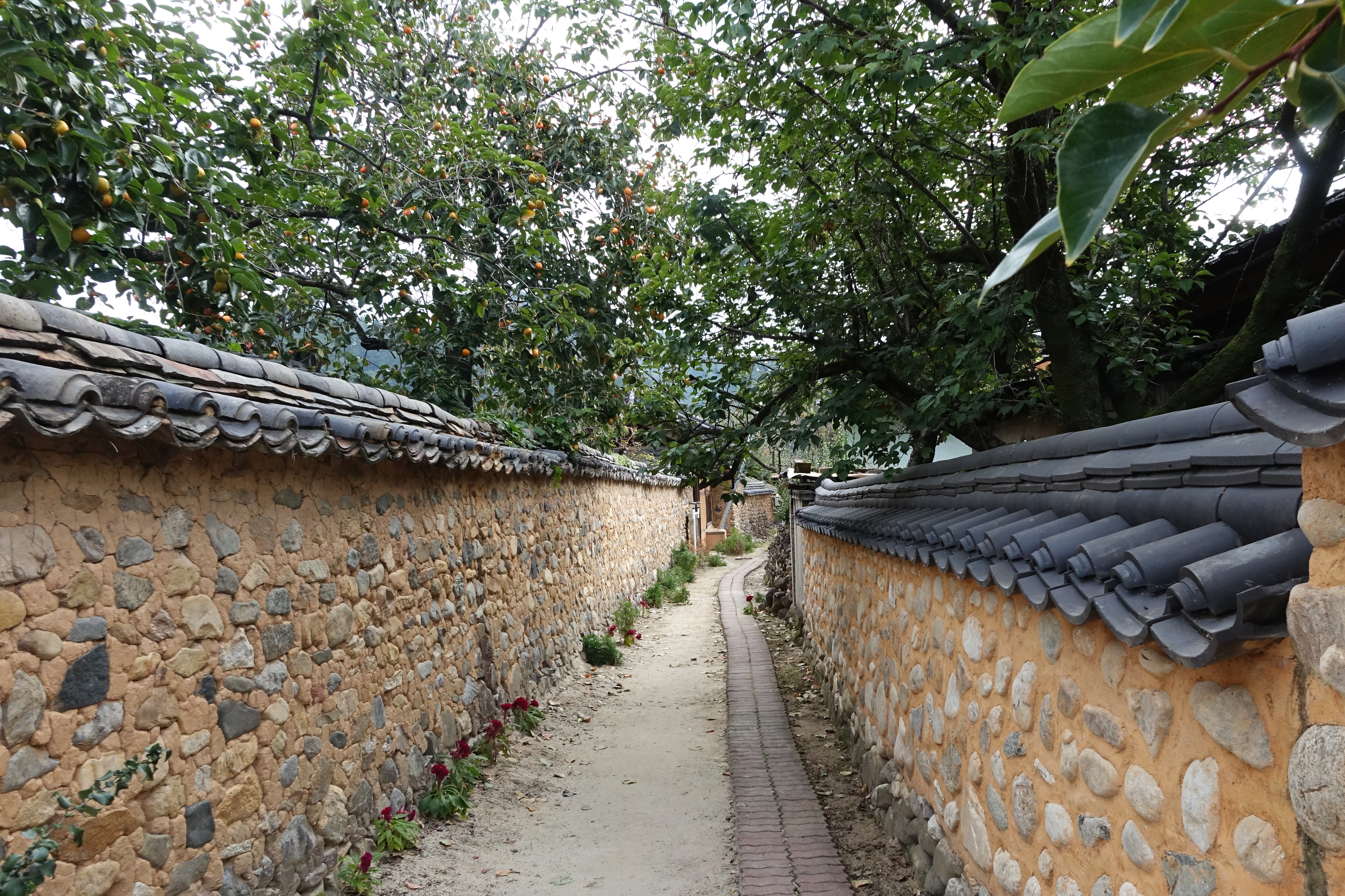 흙돌담 안의 양반 주택은 정원에 감나무나 소나무를 많이 심었기에 담장 밖으로 가지가 뻗어 나오는 경우가 많았다.
