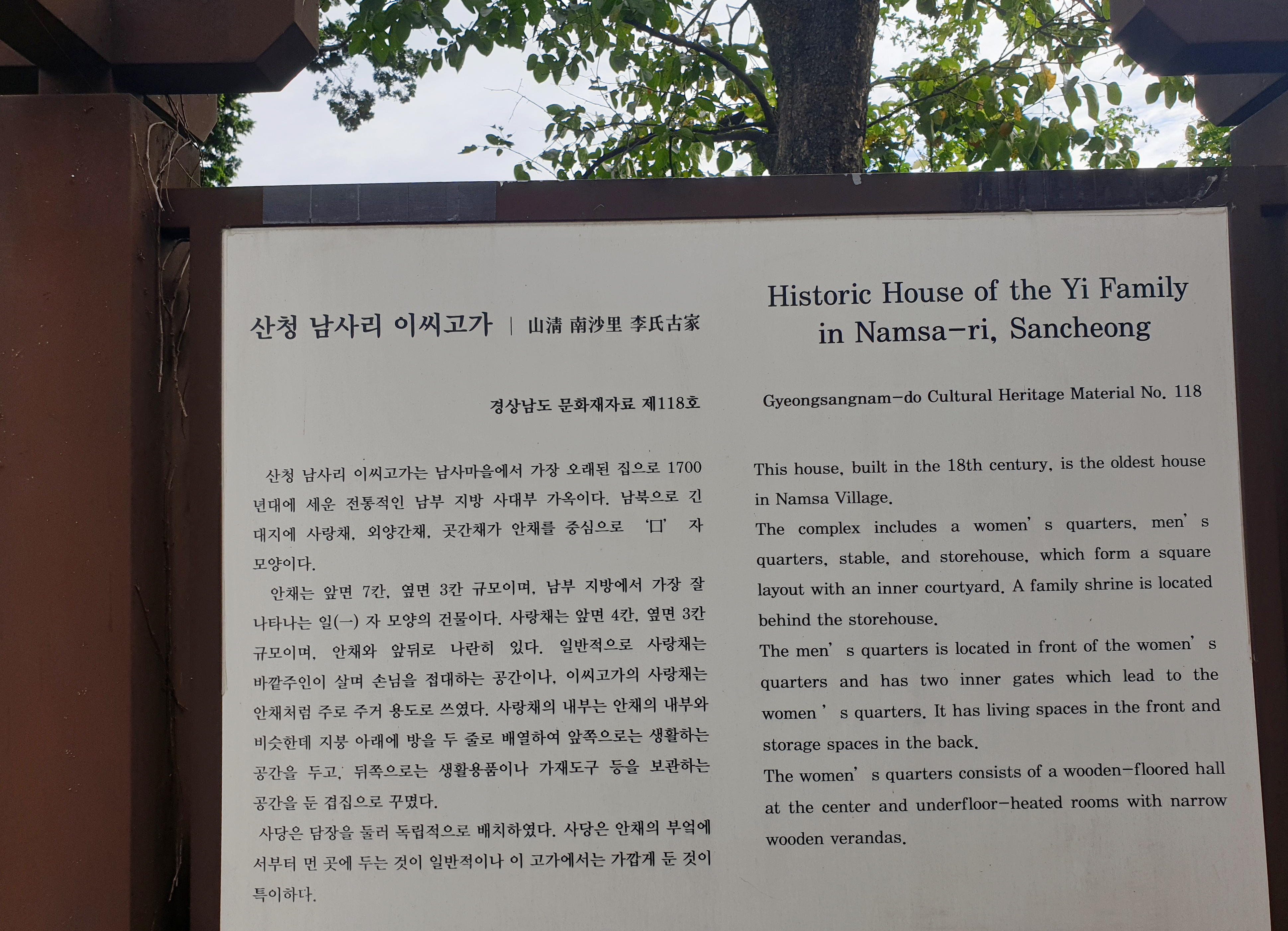 이씨 고택은 문화재로 지정되었고 남사예담촌의 한옥들이 대부분 문을 닫아 놓아 외부인 출입이 제한되고 있는데 비해 완전 개방되어 있다.
