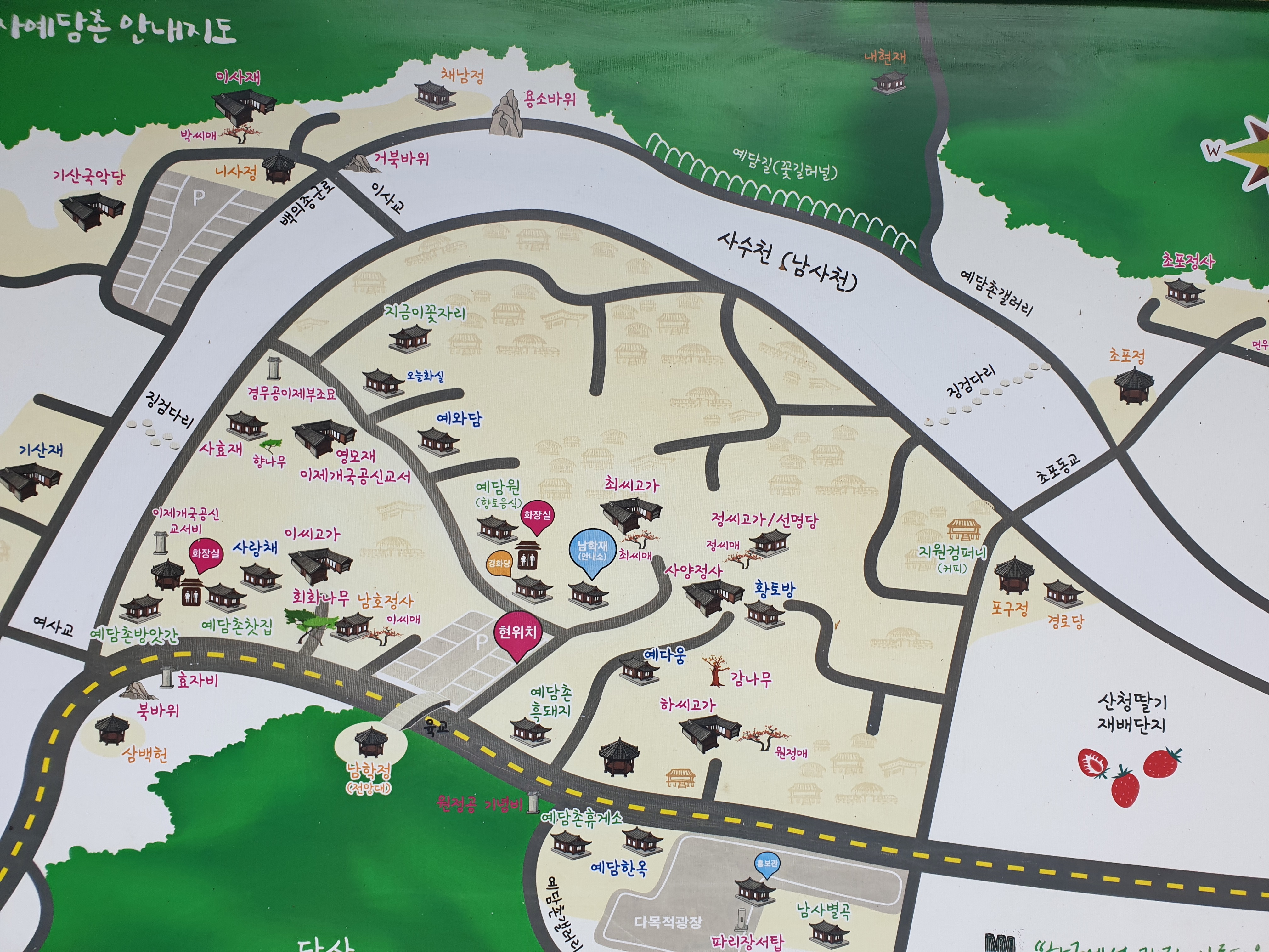 남사예담촌은 경남 산청군 단성면 남사리에 있는 한옥마을로 우리나라 전통 가옥의 아름다움을 엿볼 수 있어 표면적으로는 옛 담장 마을이라는 의미를 담고 있고 내면적으로는 담장 너머의 그 옛날 선비들의 기상과 예절을 살펴 볼 수 있다는 뜻이 담겨 있다고 한다.
