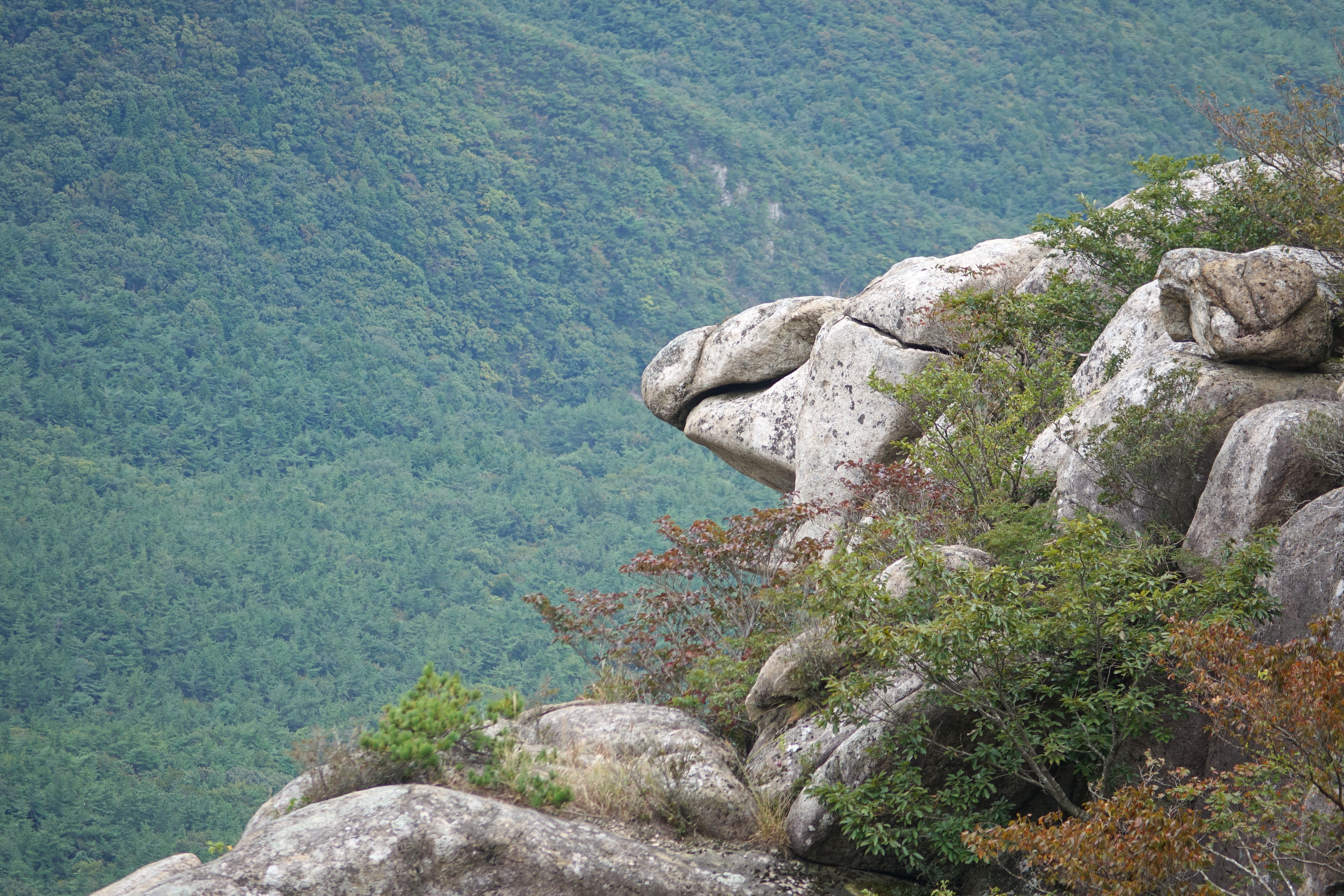 옆에 있는 바위는 윗 부분이 당장이라도 무너져 내릴 듯한 모습으로 위태롭기만 하다.