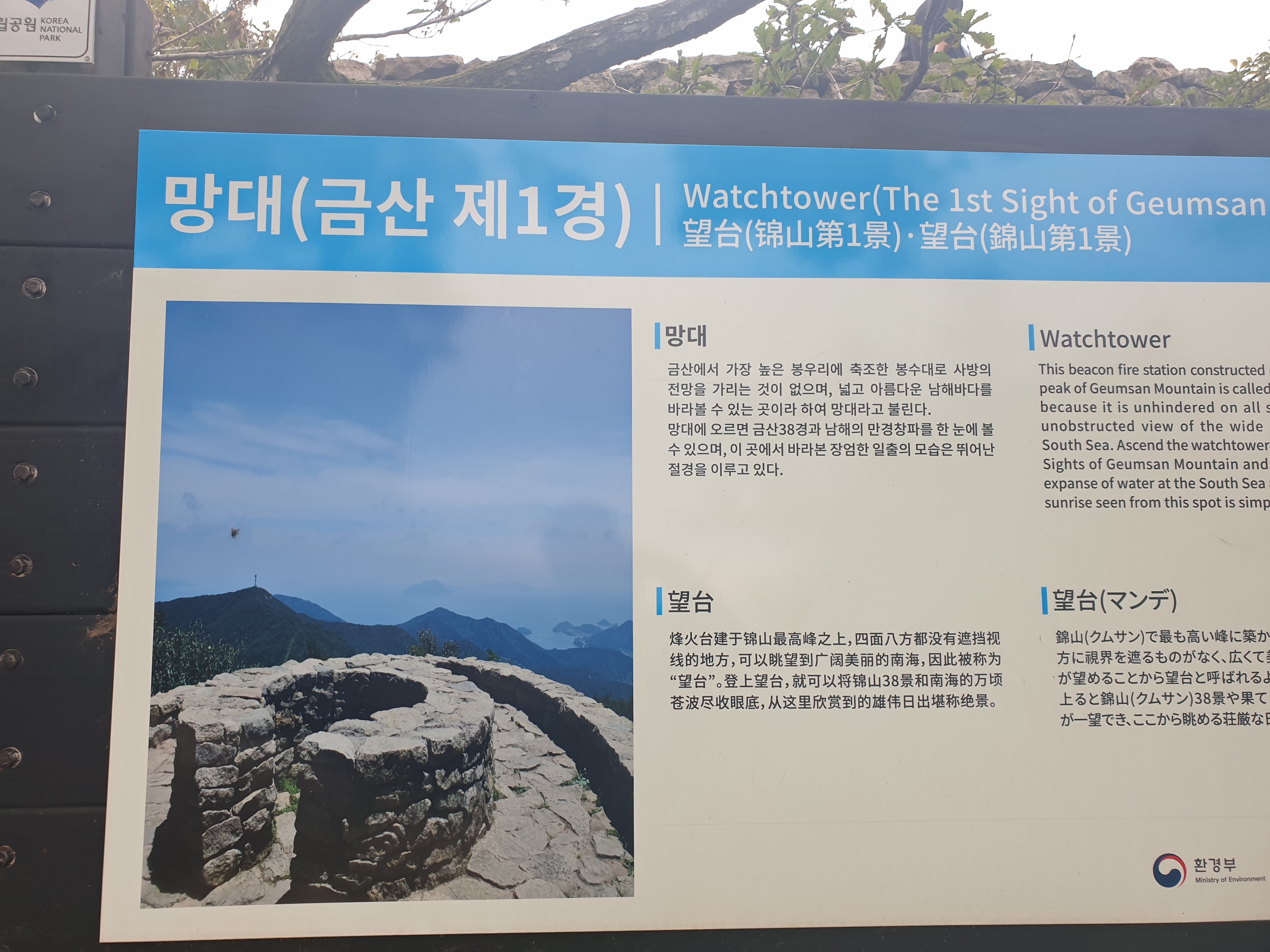 남해 금산의 제1경으로 정상에 있는 봉수대인 망대를 꼽고 있나 보다