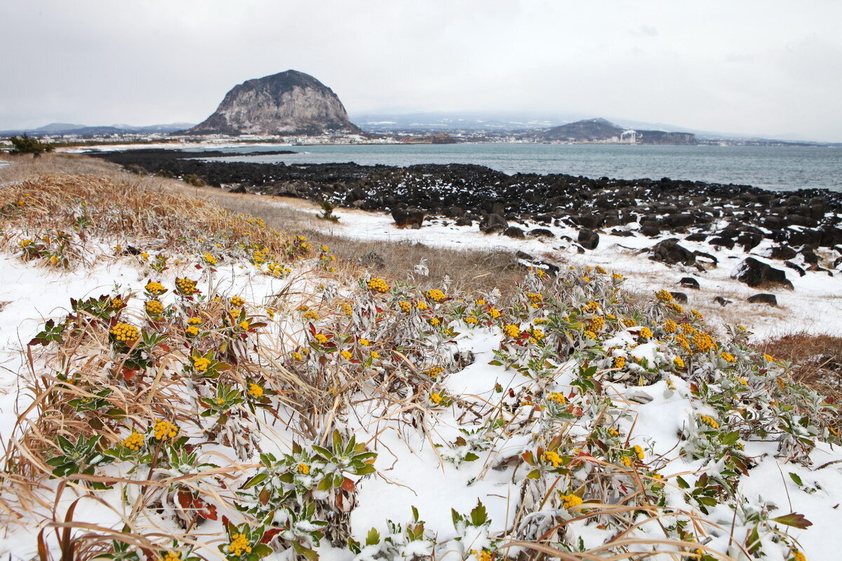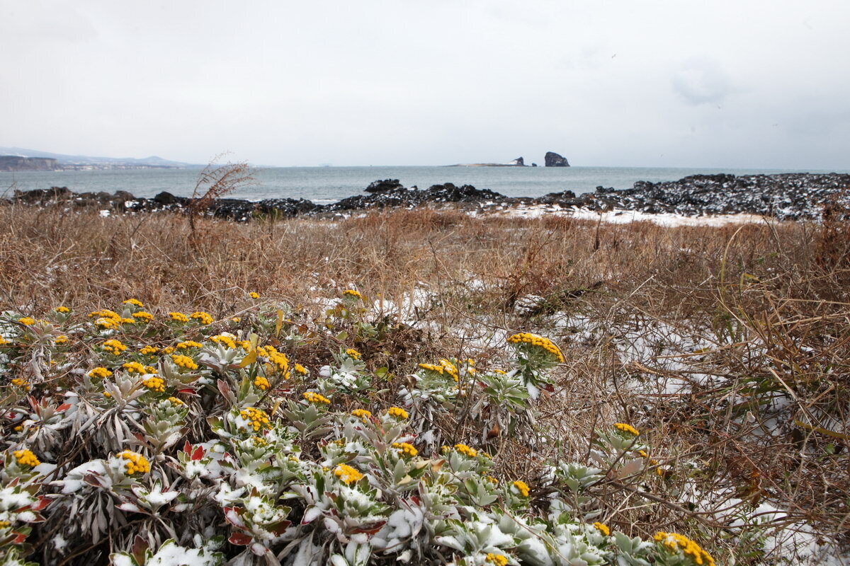 <서귀포시 사계리 해안에는 갯국화가 12월부터 2월까지 겨우내 피어 있답니다.>
