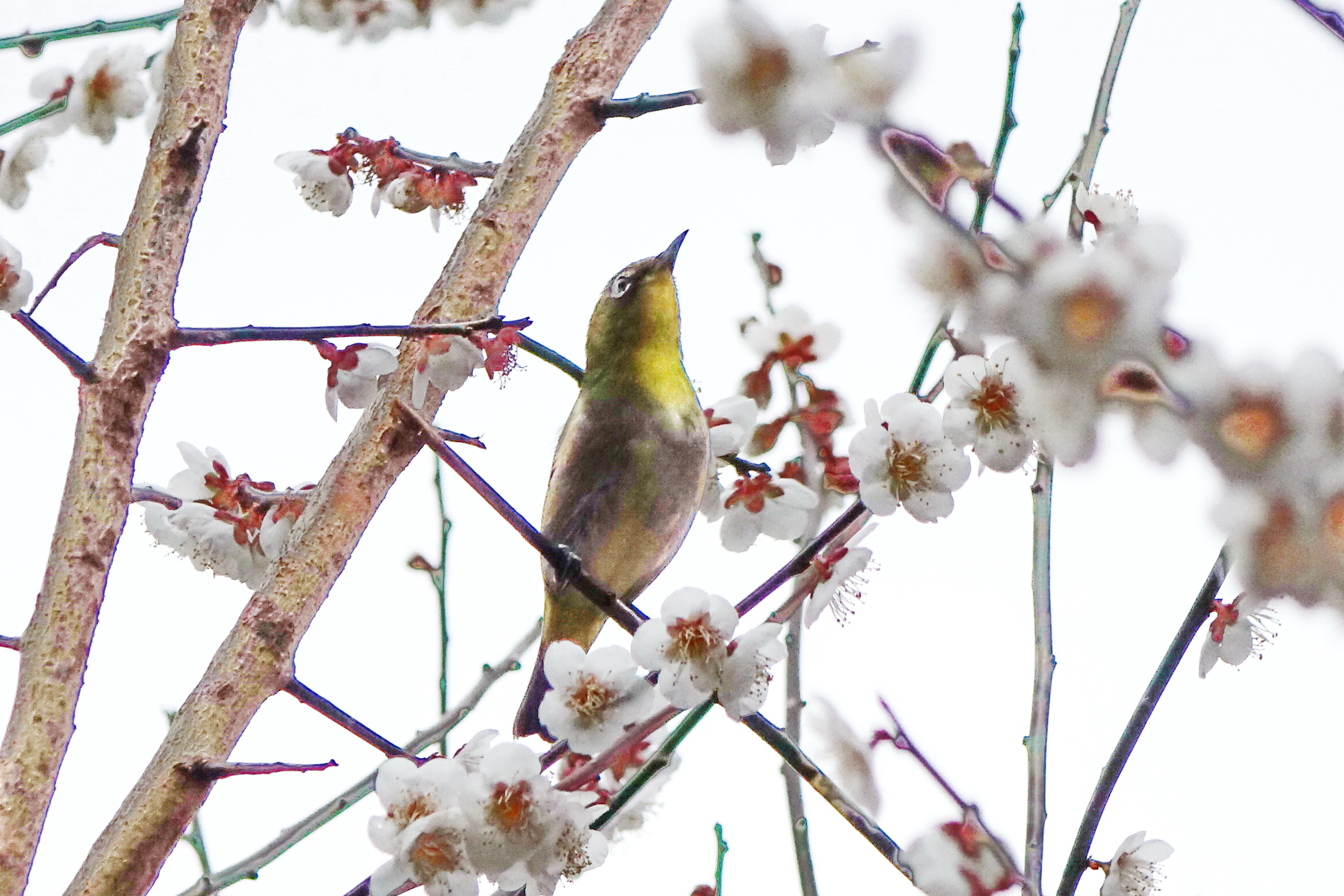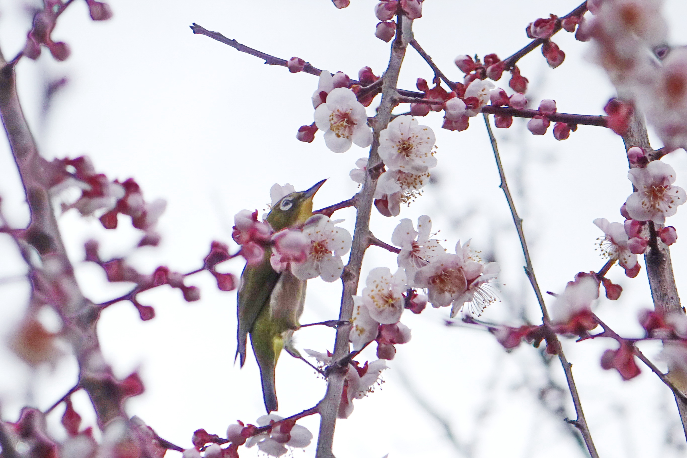 매화 꽃술을 간지럽히는 동박새의 심술