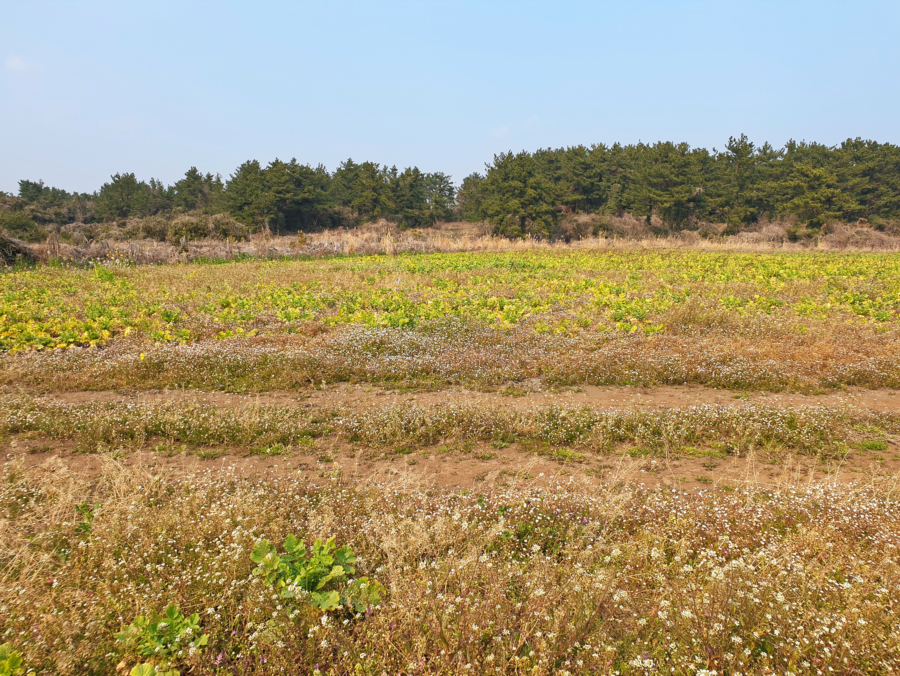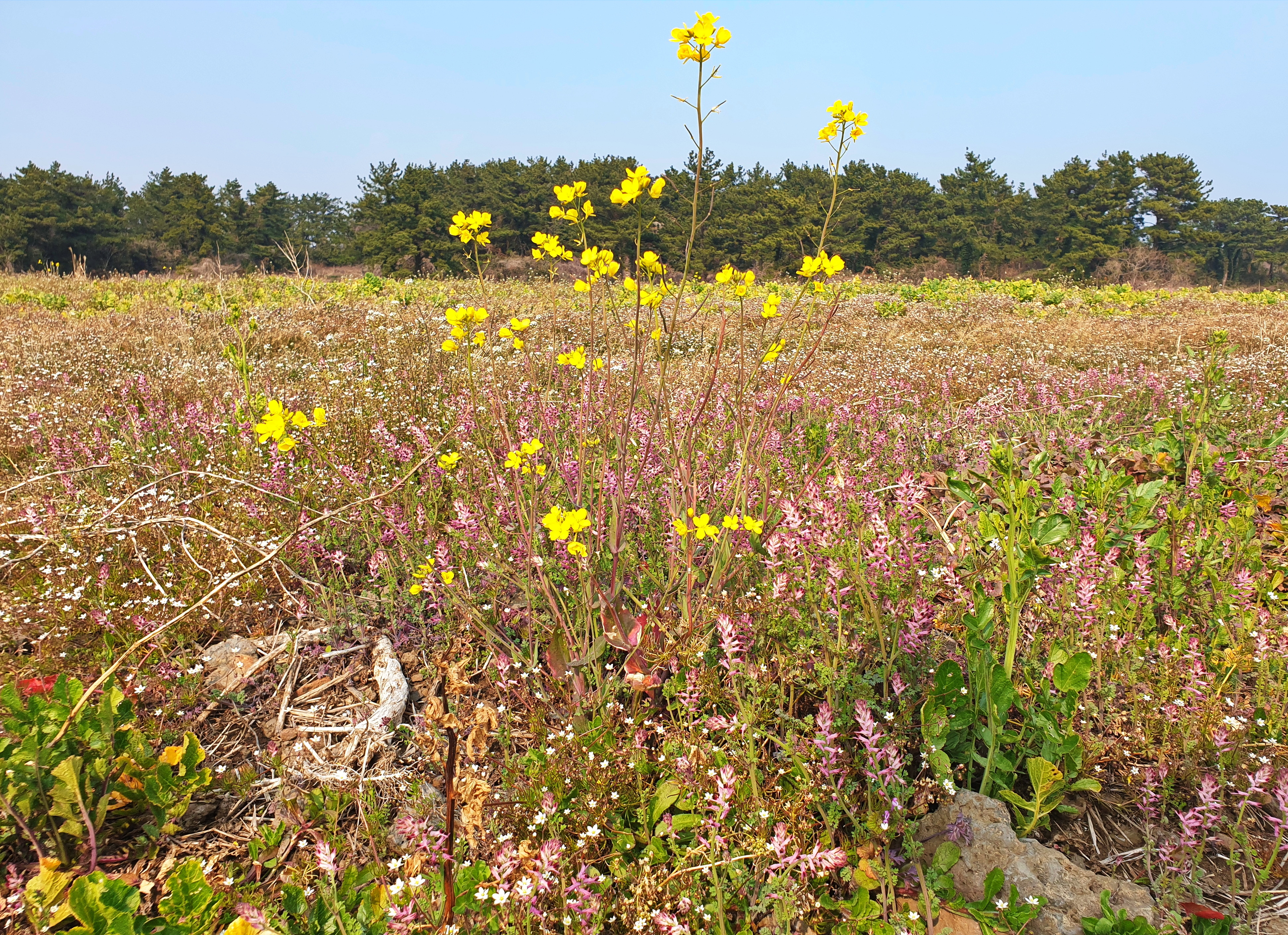 무밭의 절반 이상이 꽃밭이 되어 있는 토지에 들어 와 살면서 이른 봄부터 꽃을 피우고 있는 식물은