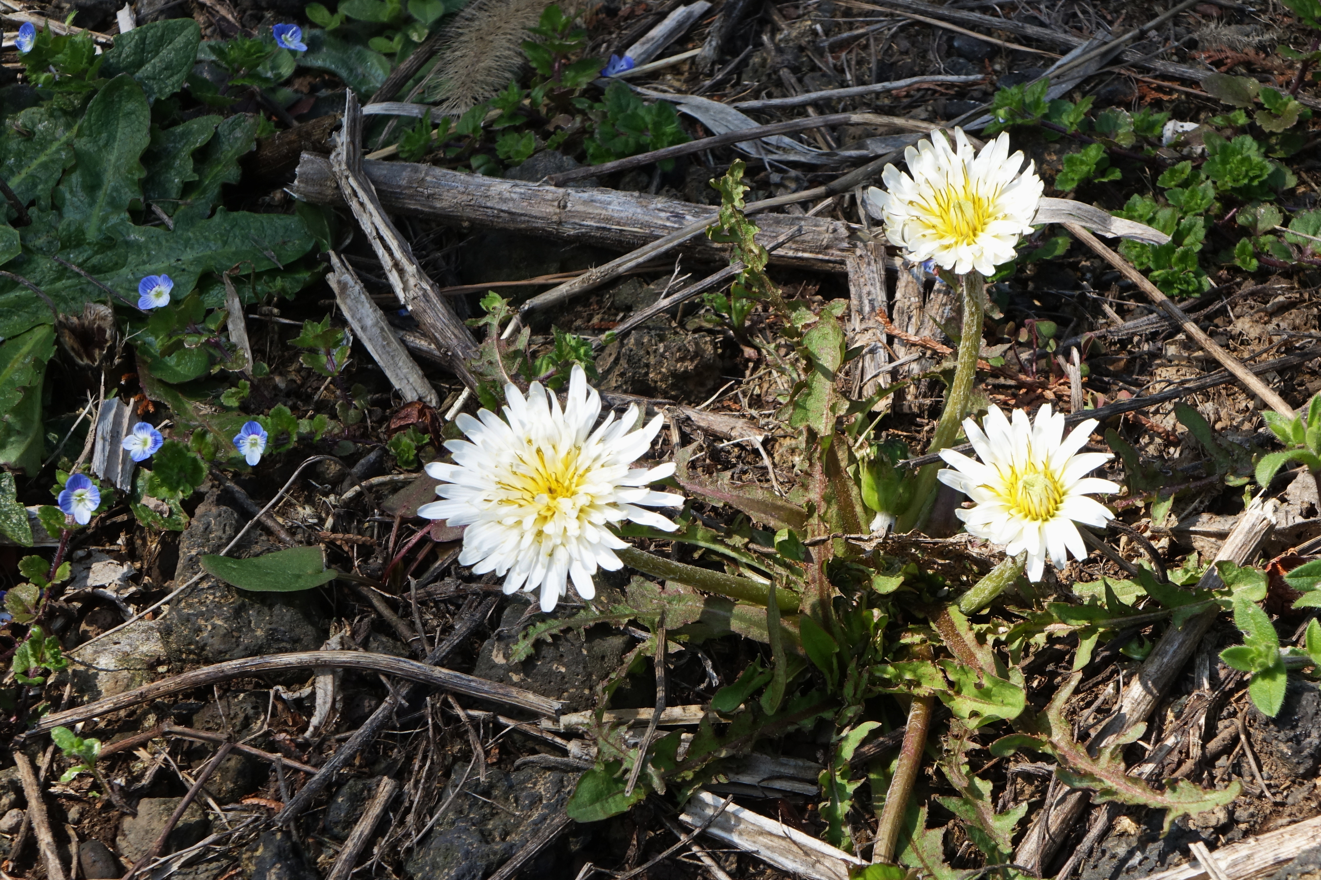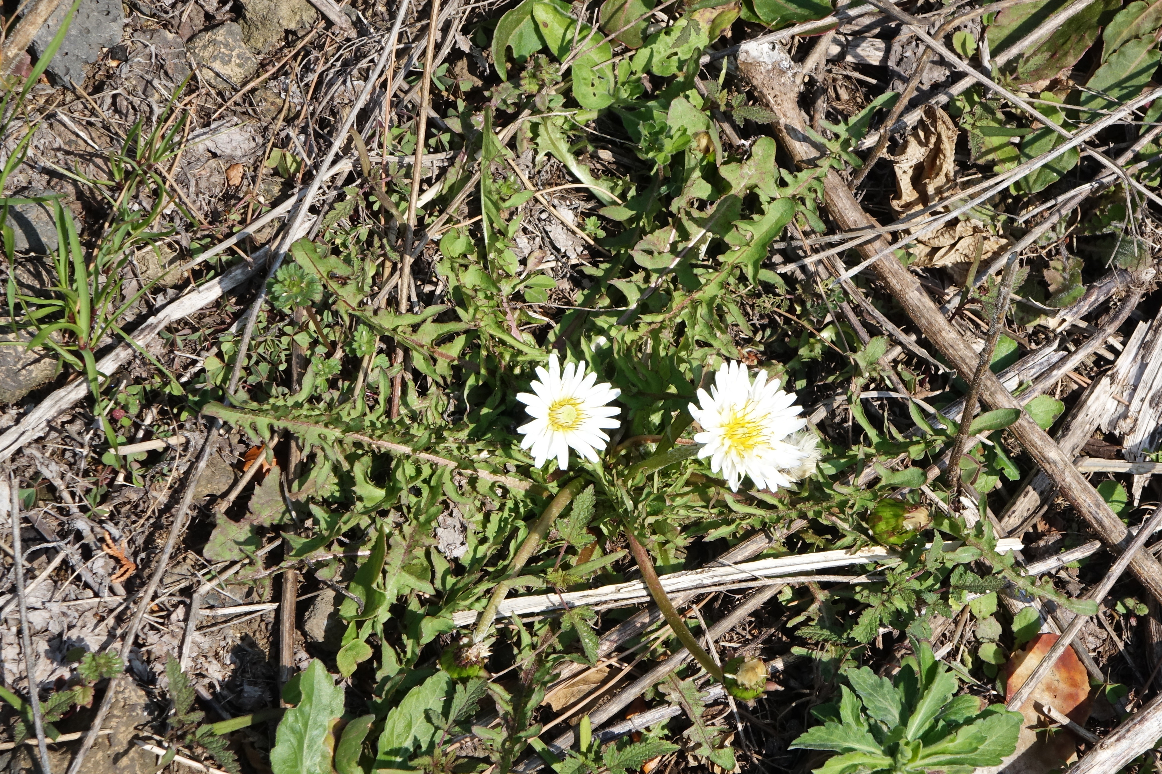 흰민들레; 양지바른 길가나 들에서 자라는 토종 민들레로 한민족과 연계성이 많다고 한다. 4~6월에 혀처럼 내민 흰 꽃이 피는데 처음에는 잎보다 짧은 꽃줄기가 여러 개 나와 그 끝에 두상화 1개씩 하늘을 향해 달리는데 혀꽃만 있다고 한다. 나물로도 애용되어왔고 포공영이란 한약명으로 소화기질환 등 여러 종류의 질병 치료에 처방된다고 한다. 꽃말은 “내 사랑을 그대에게 드려요”