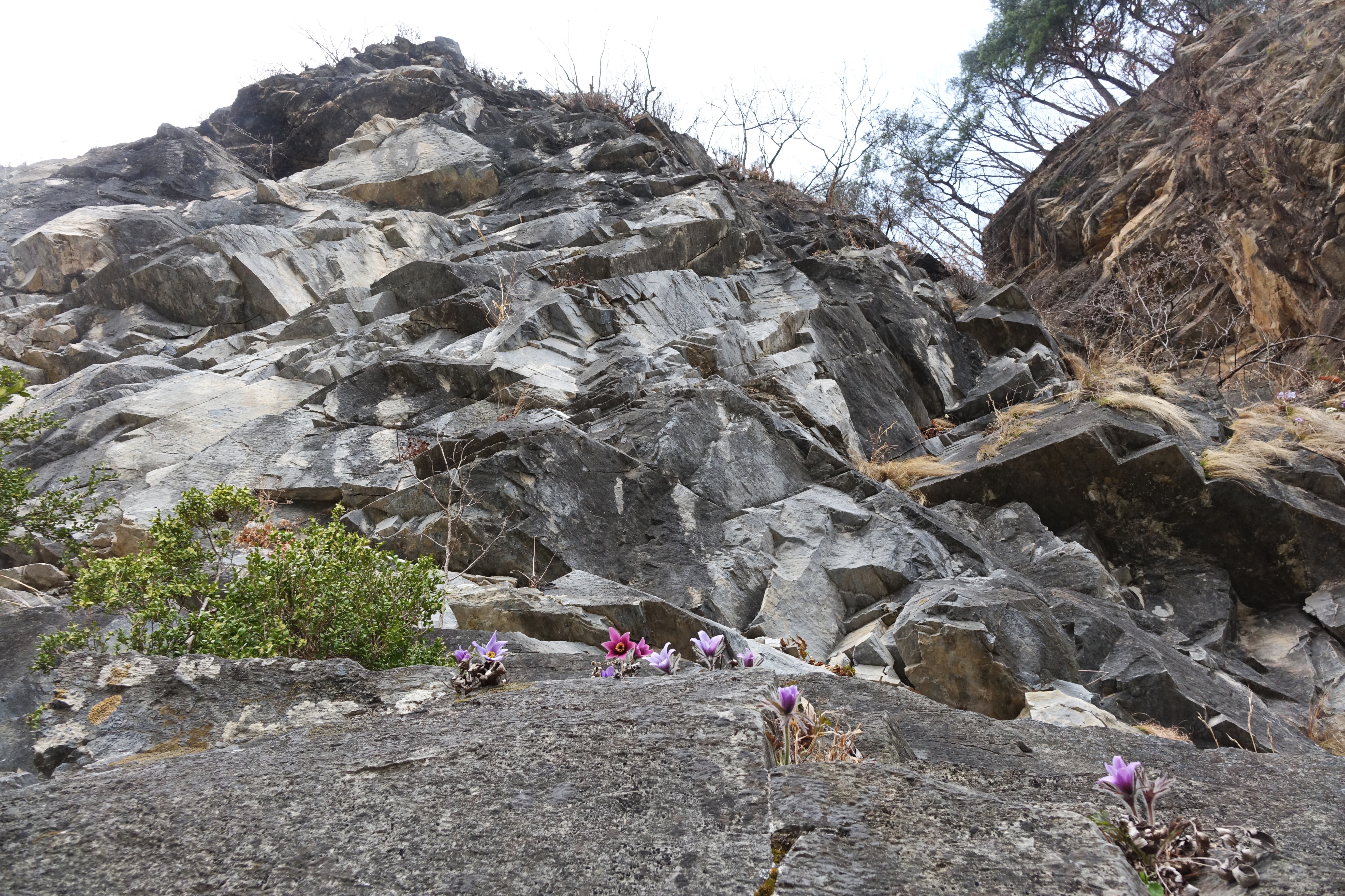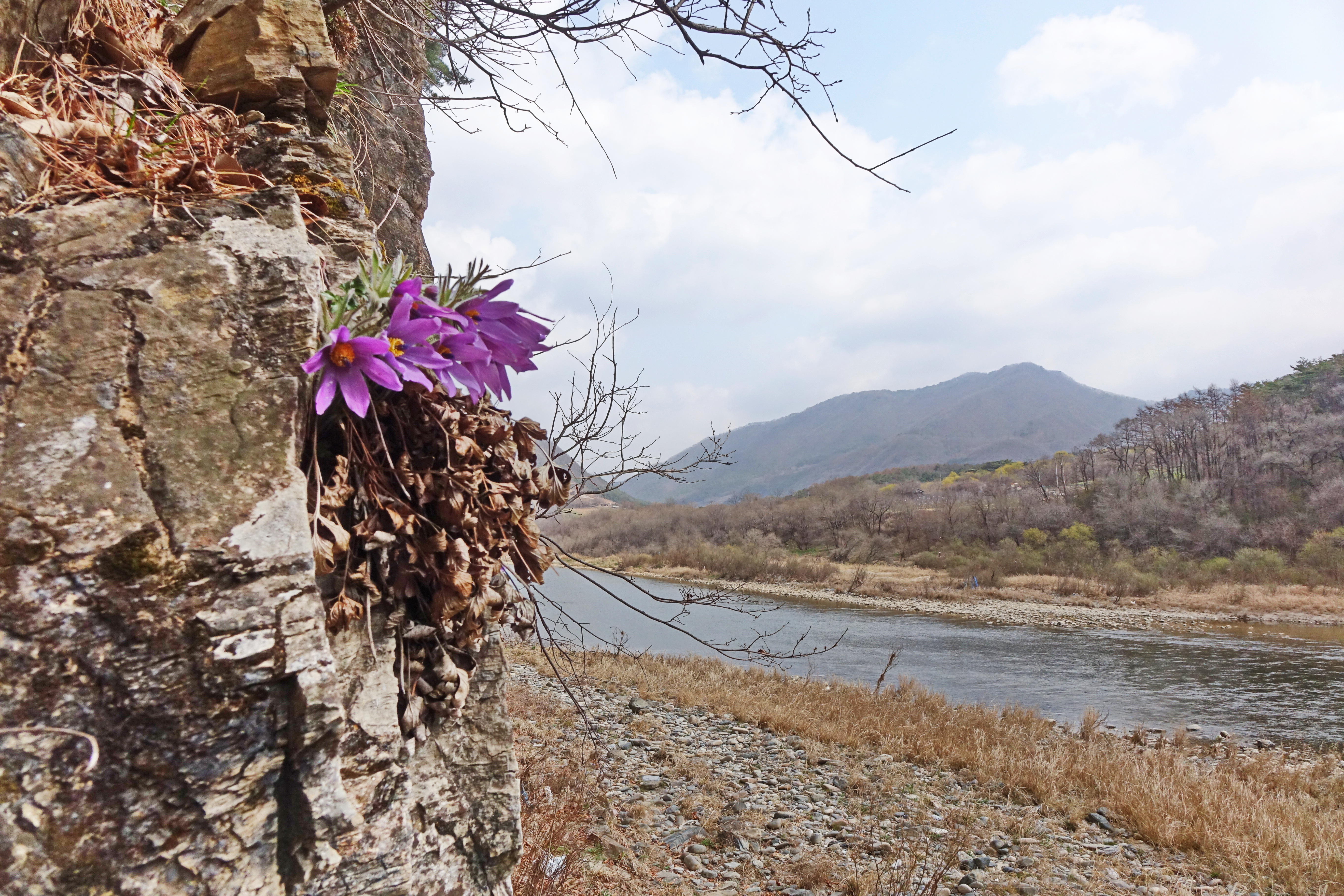 강원도 동강이 흐르는 바위 절벽에 주로 붙어 사는 동강할미꽃은