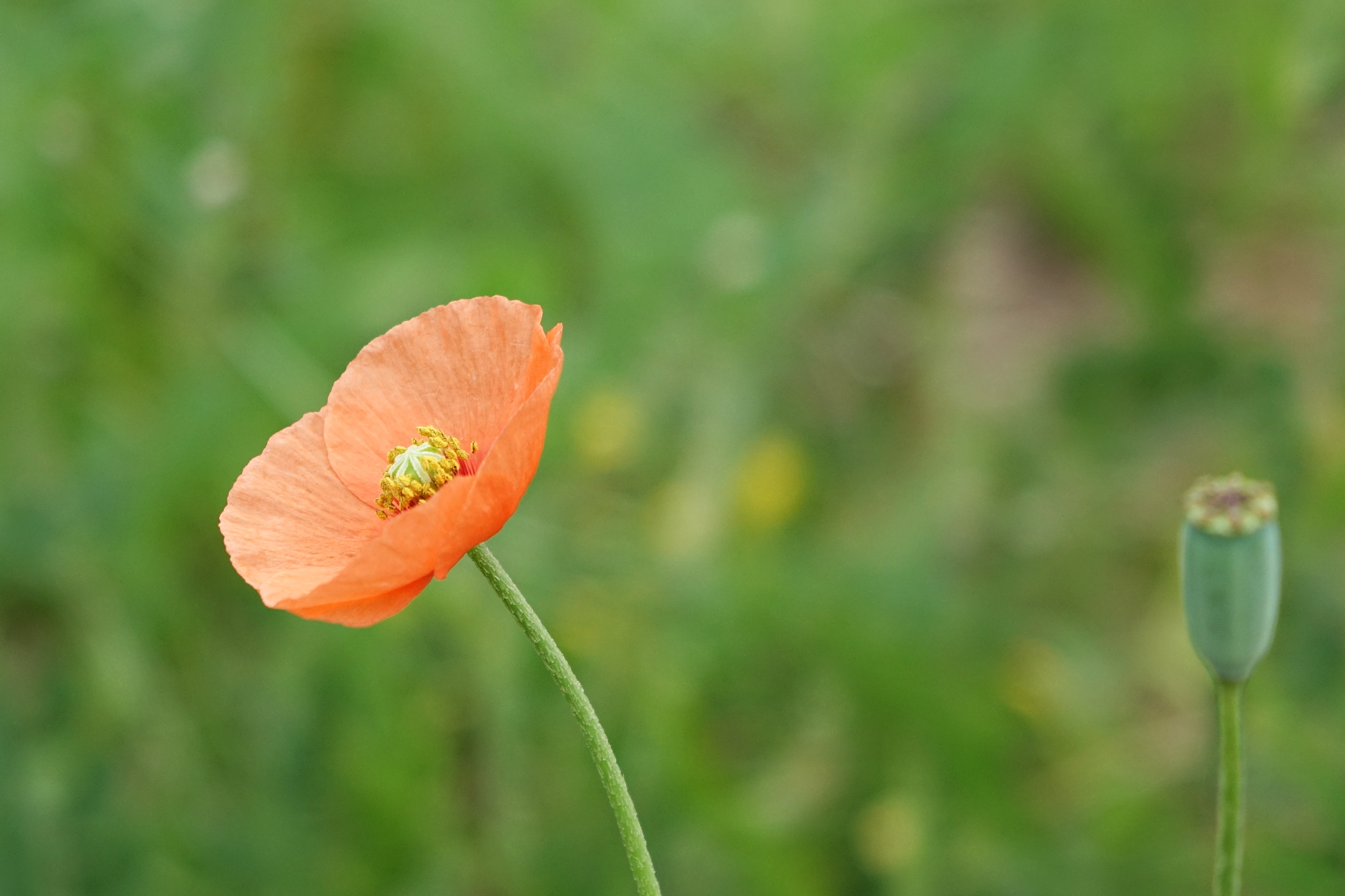 좀양귀비; 제주도 남쪽 바닷가 풀밭에서 주로 자라는 양귀비과의 한해살이풀이다. 높이 20~60cm로 자라며 하나의 꽃대를 올려 4~5월에 한 송이의 주홍색 꽃을 피운다. 꽃은 단색이며 무늬도 없이 작고 평범한 편이다. 국생정에는 안던면 해안가에만 있다고 되어 있으나 사진은 모슬포 바닷가 모습이다. 마약 성분은 검출되지 않은 것 같다. 꽃말은 “위로”
