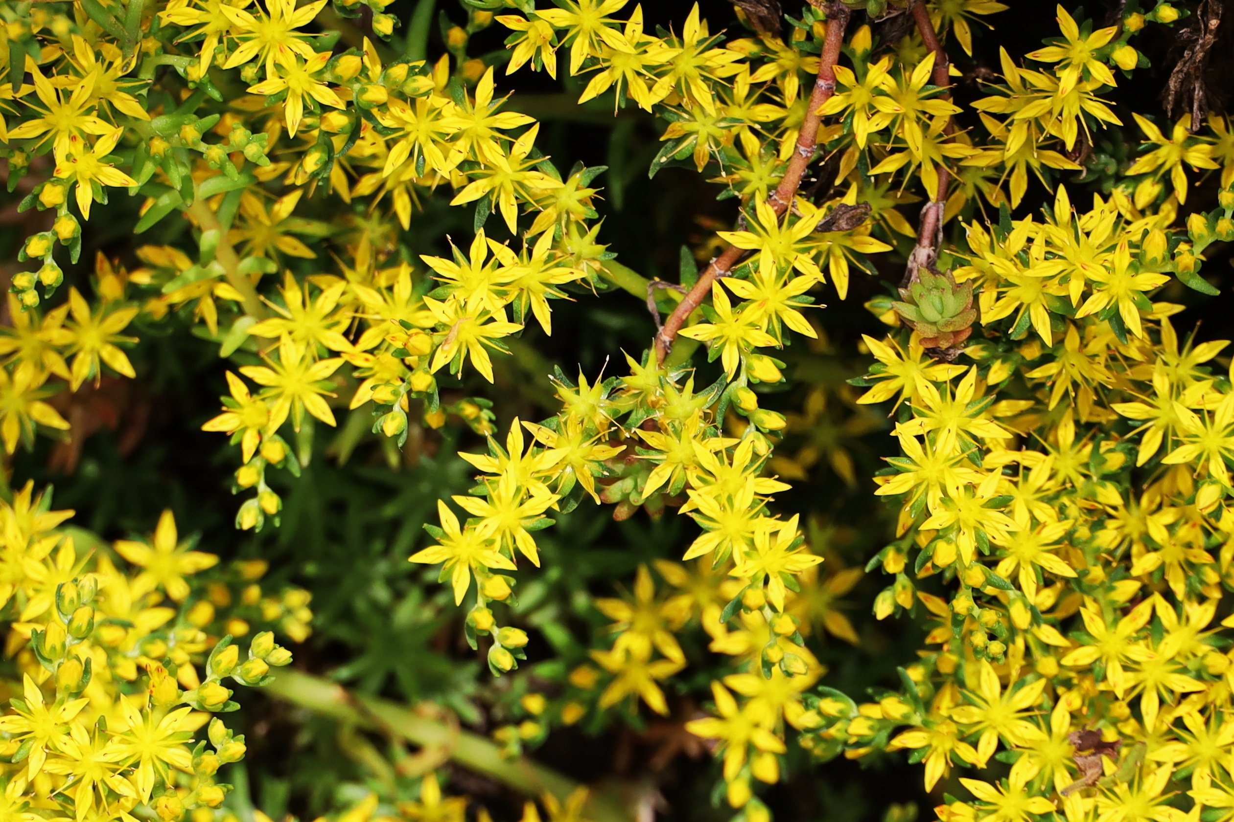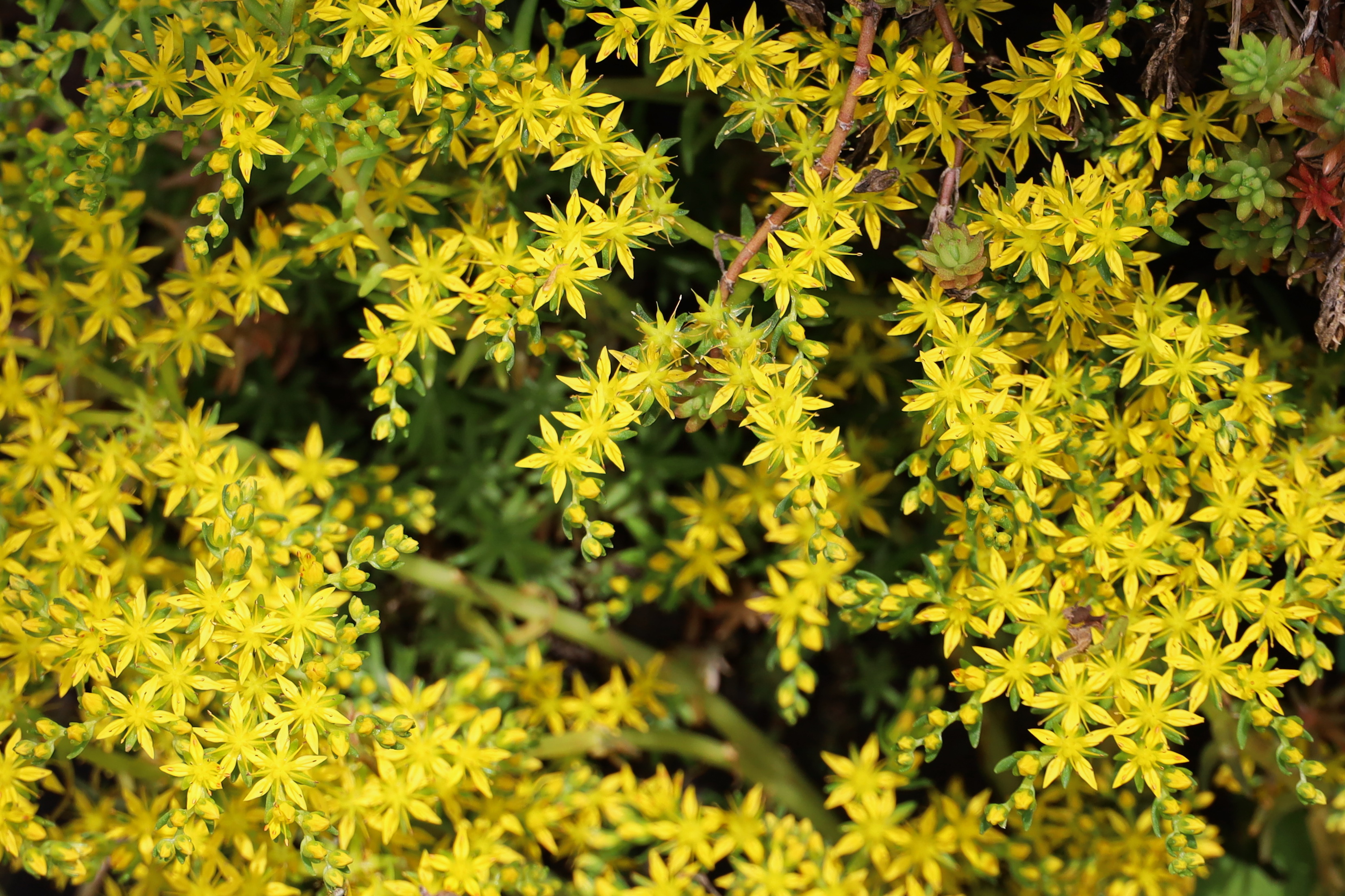 멕시코돌나물; 국가생물종지식정보에는 “잎은 어긋나고 돌려난다.”고 하는 등 돌나물 종류나 땅채송화 등과 비교될만한 내용 없이 간단하게 기술되어 있다. 다른 자료에 보면 다육식물로 원예종이었는데 밖으로 나와 야생화된 것이 논문을 통해 이름이 붙었다고 한다. 제주도 구좌읍 시골 길가에 매년 번식하고 있는 것을 대표적 존재로 여긴다. 돌나물 꽃말은 “근면”