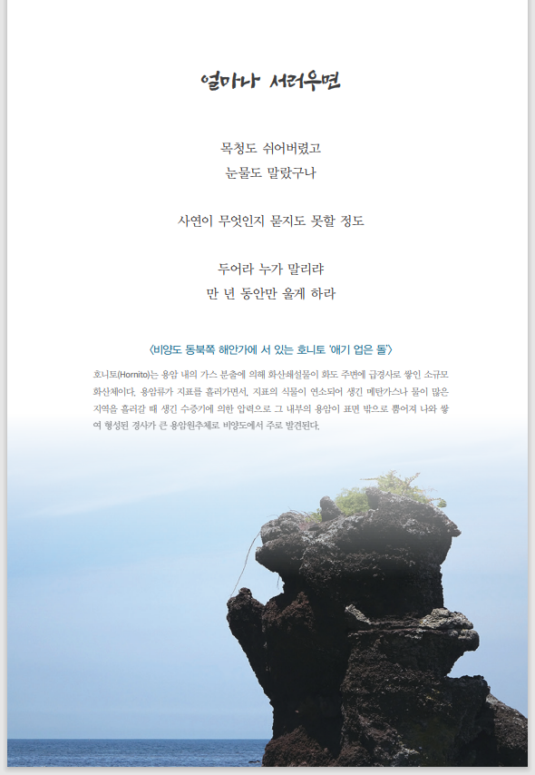 첫 페이지로 하고 싶었지만 첫 장은 제주도의 3다 중 하나인 돌이라는 점을 강조하다 보니