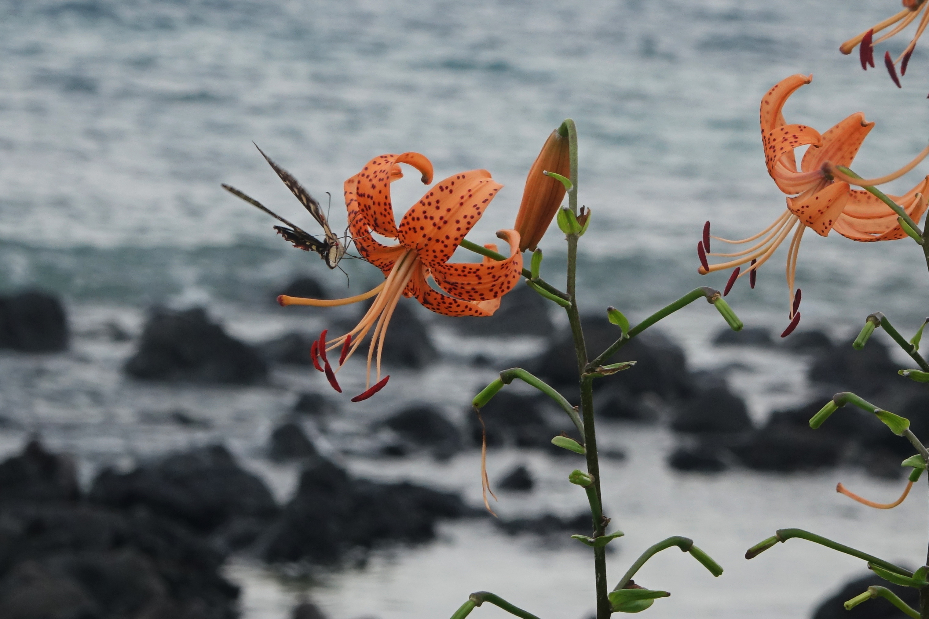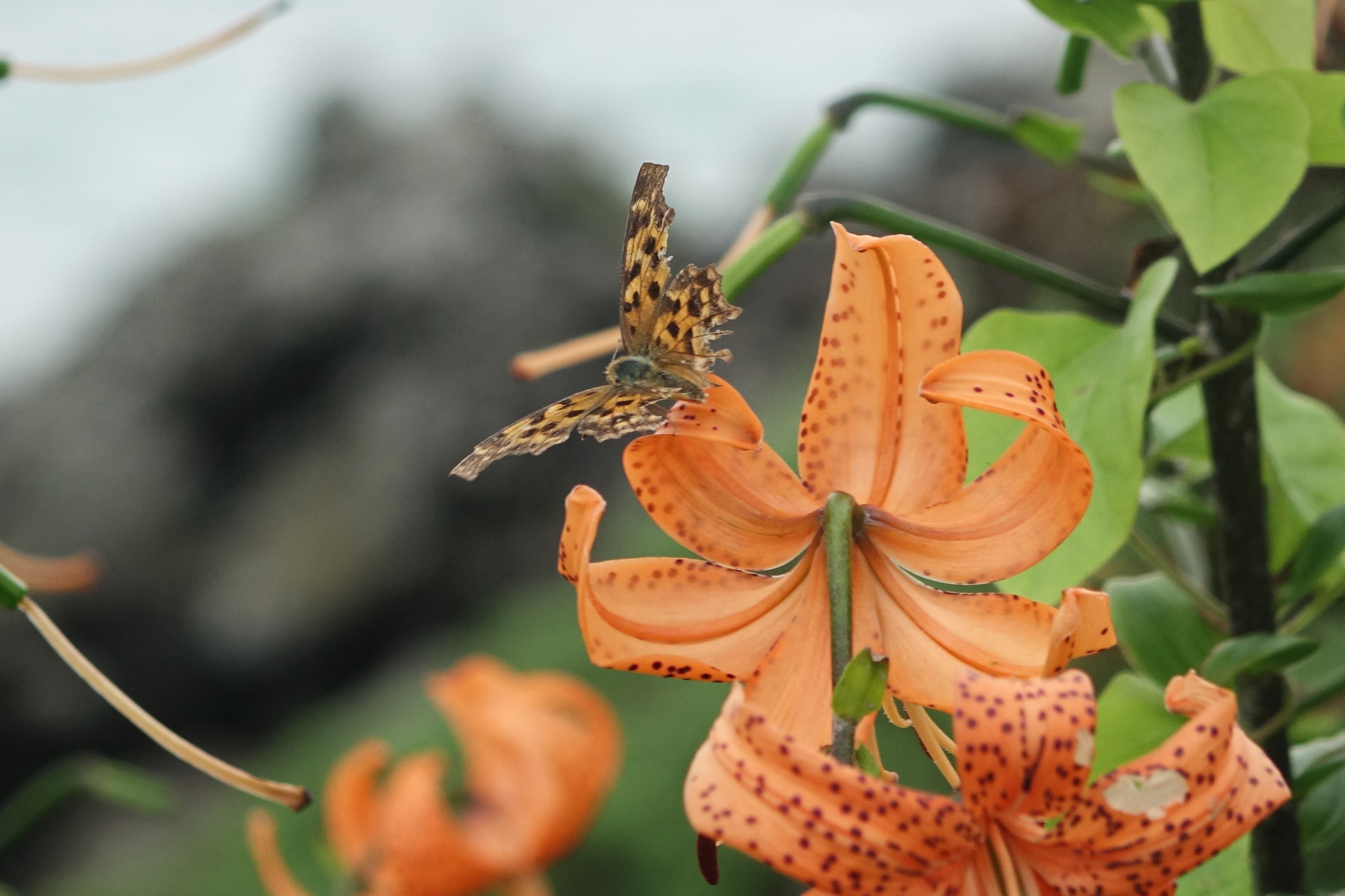 참나리; 우리나라 전역의 산과 들에서 자란다. 꽃은 뒤로 말리며 주황색 바탕에 검은빛이 도는 자주색 반점이 빽빽이 박혀 있다. 줄기가 1~2m까지 자라며 어린잎에 흰색의 털이 있는데 잎 밑 부분에 짙은 갈색의 주아가 달려있고 이 주아가 씨를 대신해 다른 곳으로 퍼져나가 발아한다. 때로는 뿌리의 비늘줄기로 번식하기도 한다. 100여 개의 나리 종류와 200여 가지 원예종이 있다고 하는 나리의 대표가 참나리이고 견내리화, 대각나리, 개나리불휘란 이명이 있으며 한국인의 정서를 대표하는 꽃이라고도 한다. 꽃말은 "순결"과 "존엄“