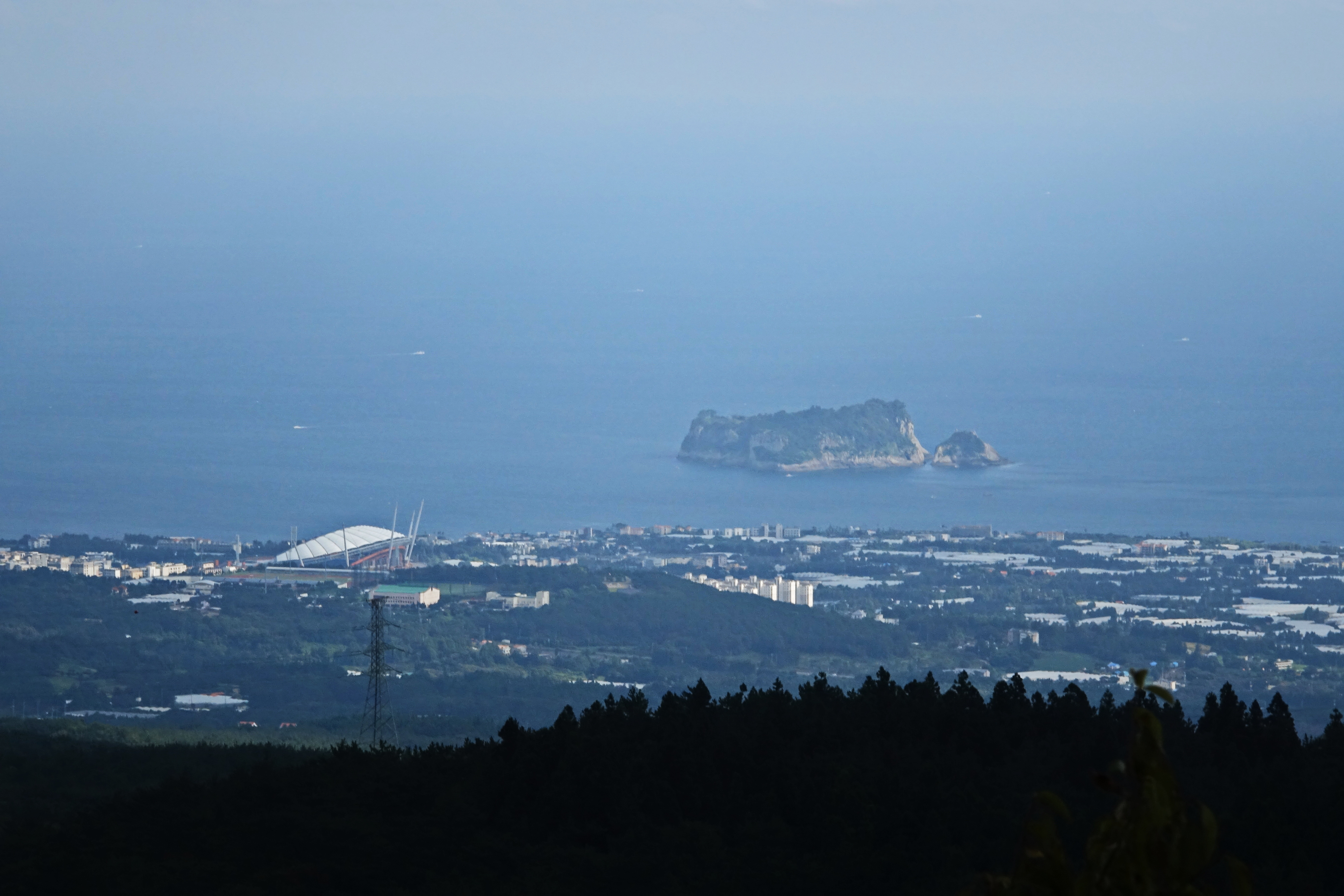 < 위로부터 범섬, 가파도와 형제섬, 섶섬, 범섬 - 서귀포시 법정악에서 본 모습>