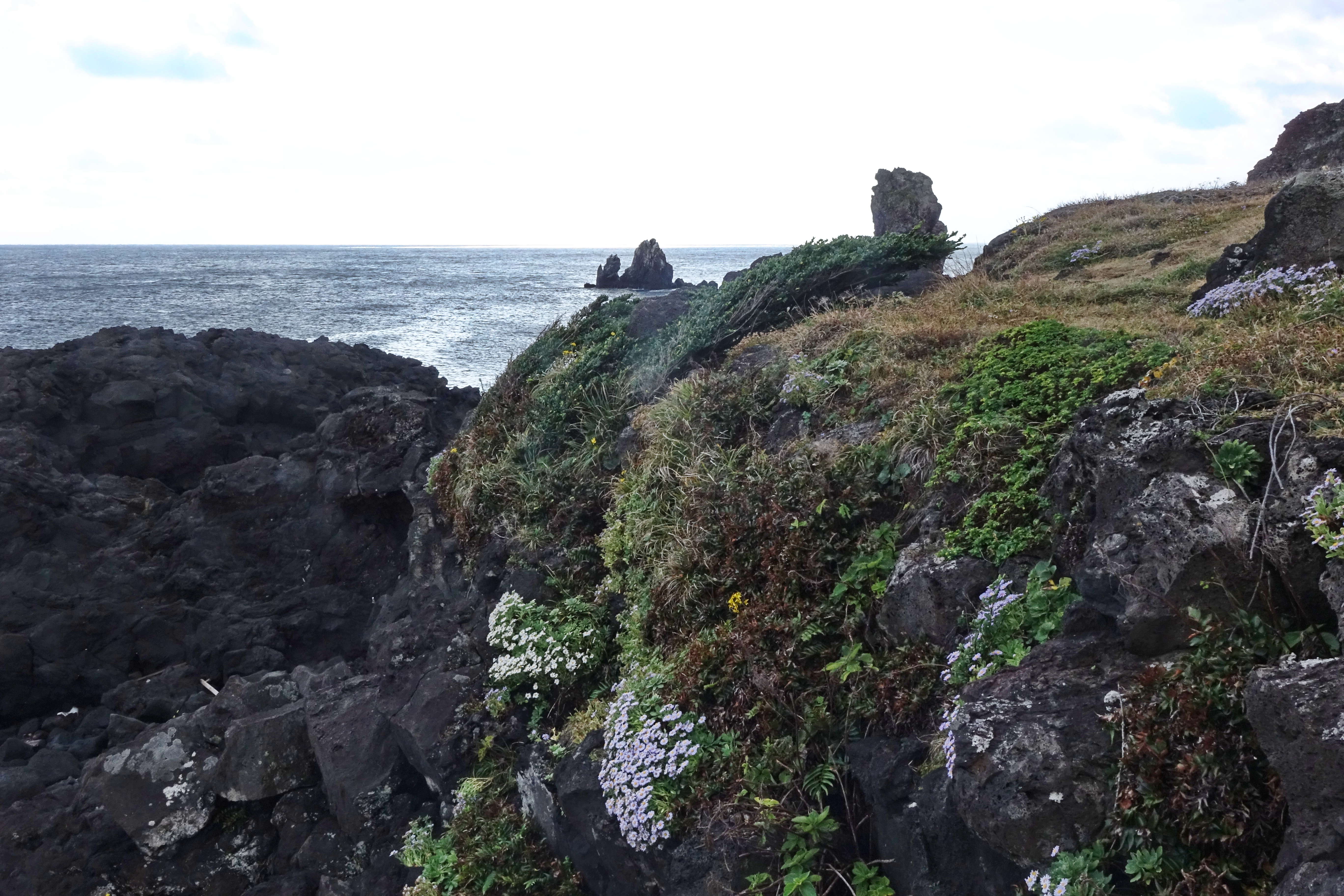 해국; 중부 이남의 바닷가 암벽이나 경사진 곳에서 잘 자란다. 고기잡이 나간 어부를 모녀가 기다리다가 죽은 후 꽃이 되어 버렸다는 전설이 있다. 상단부의 두터운 잎은 겨울에도 고사하지 않고 짠 바닷물과 모진 바람을 잘 견딘다. 겨울철 기침, 감기에 걸렸을 때 막걸리나 식혜로 만들어 먹으면 효과가 있다고 한다. 해국은 일반적으로 보라색의 꽃을 피우나 드물게 흰 색으로 피는 개체도 발견된다. 꽃말은 "기다림"