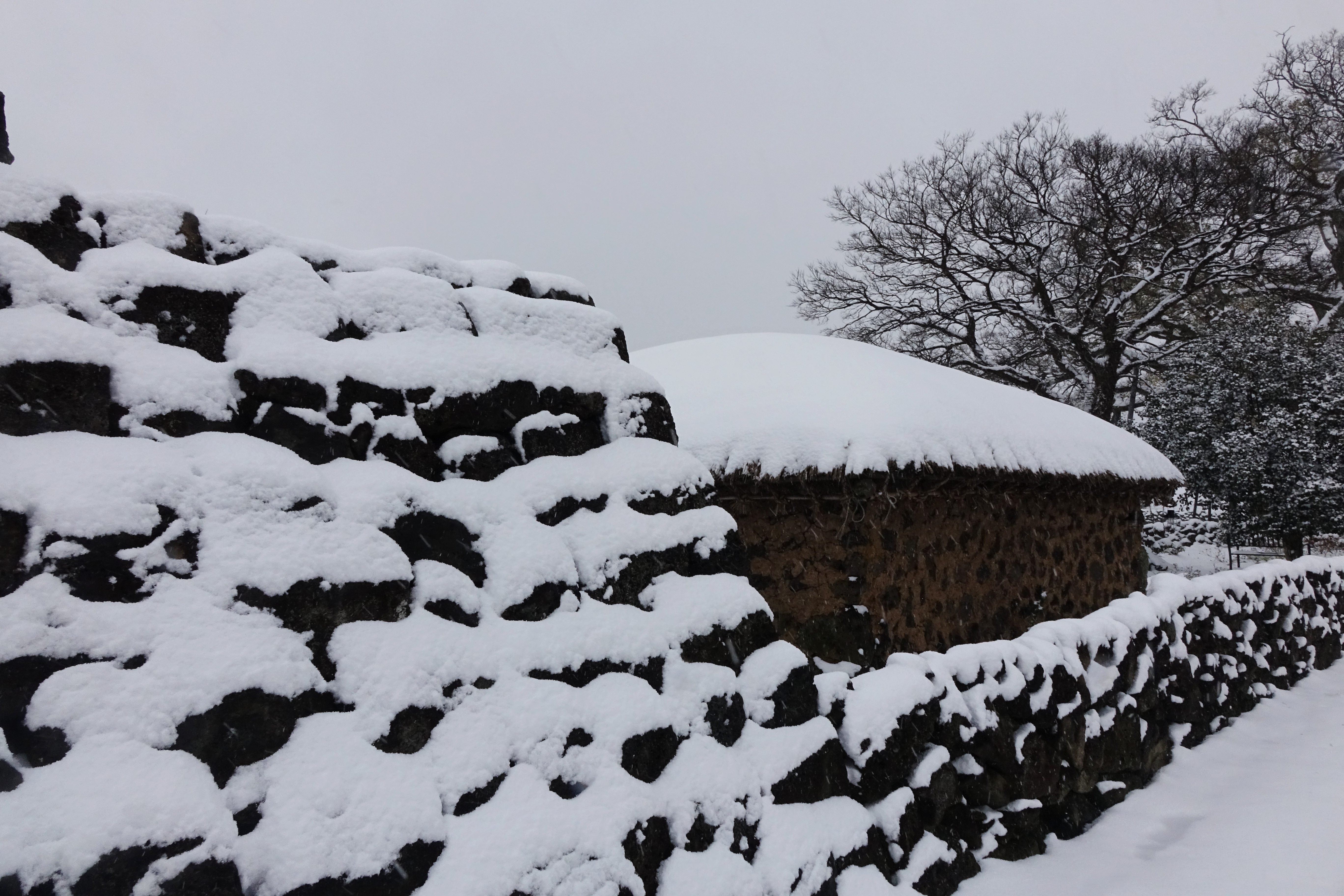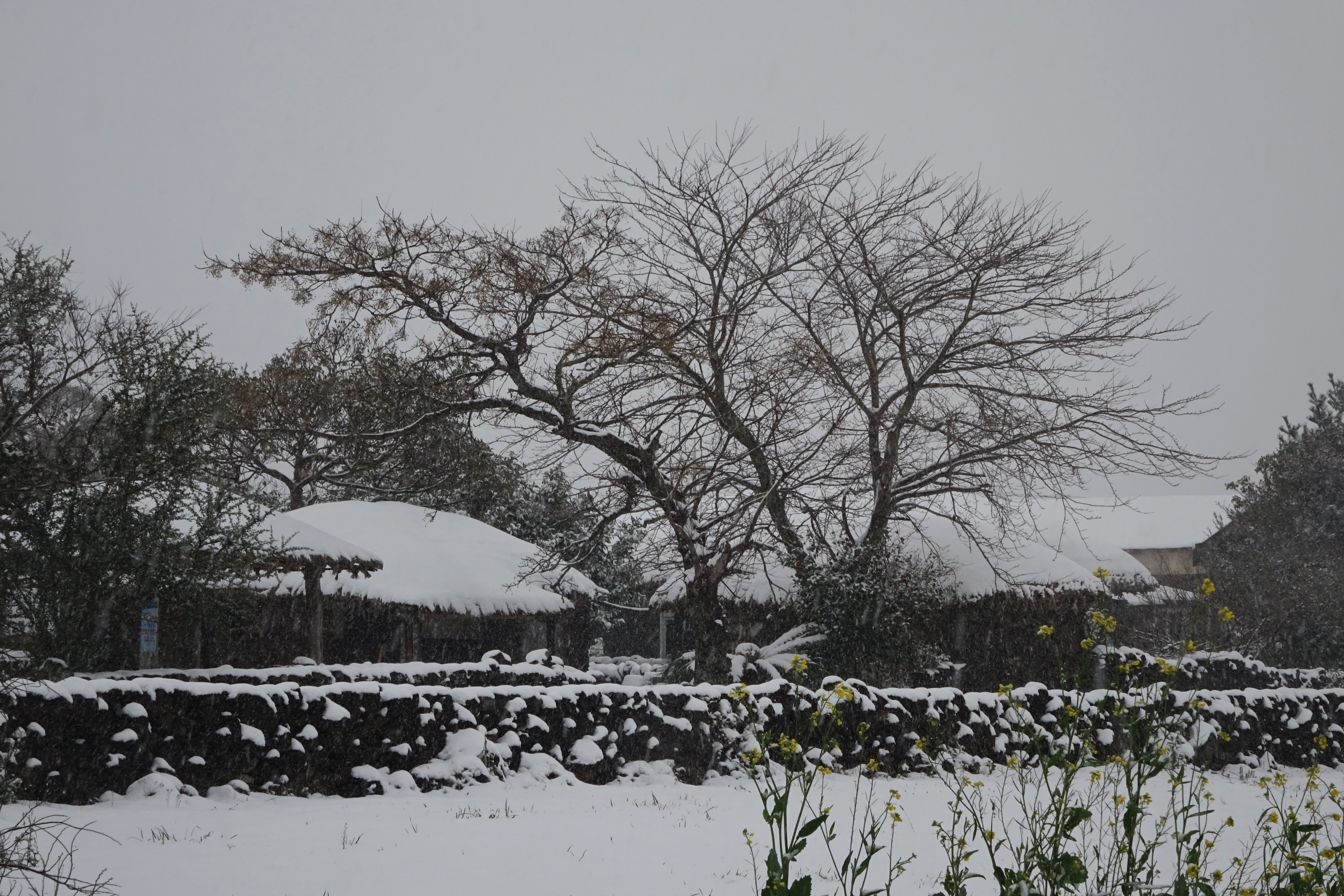 <엇그제 성읍 민속마을의 초가집에 눈 내린 모습이랍니다. >