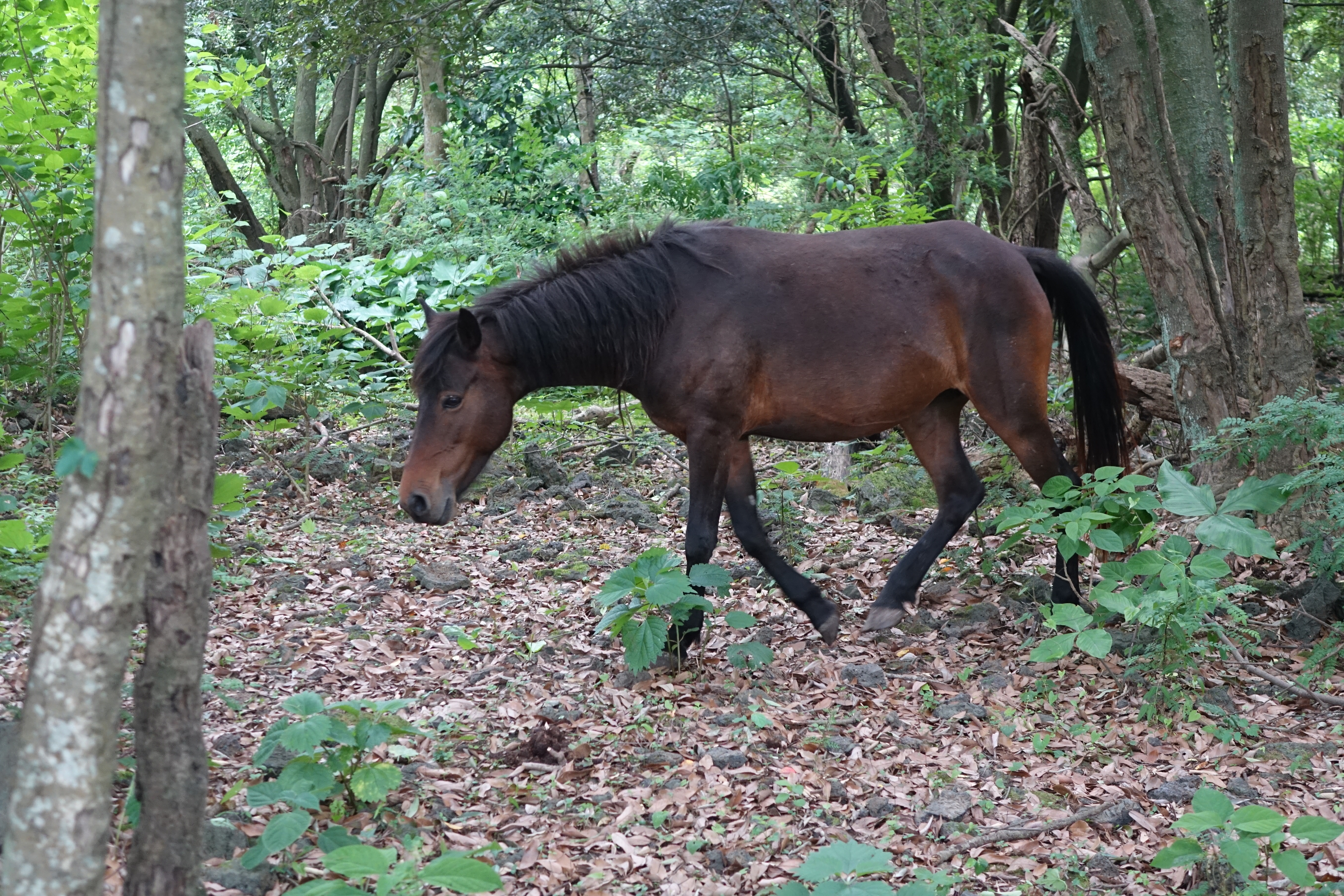 들판이 아닌 곶자왈 숲속에서 방황하는 말들이 가끔 발견된다.