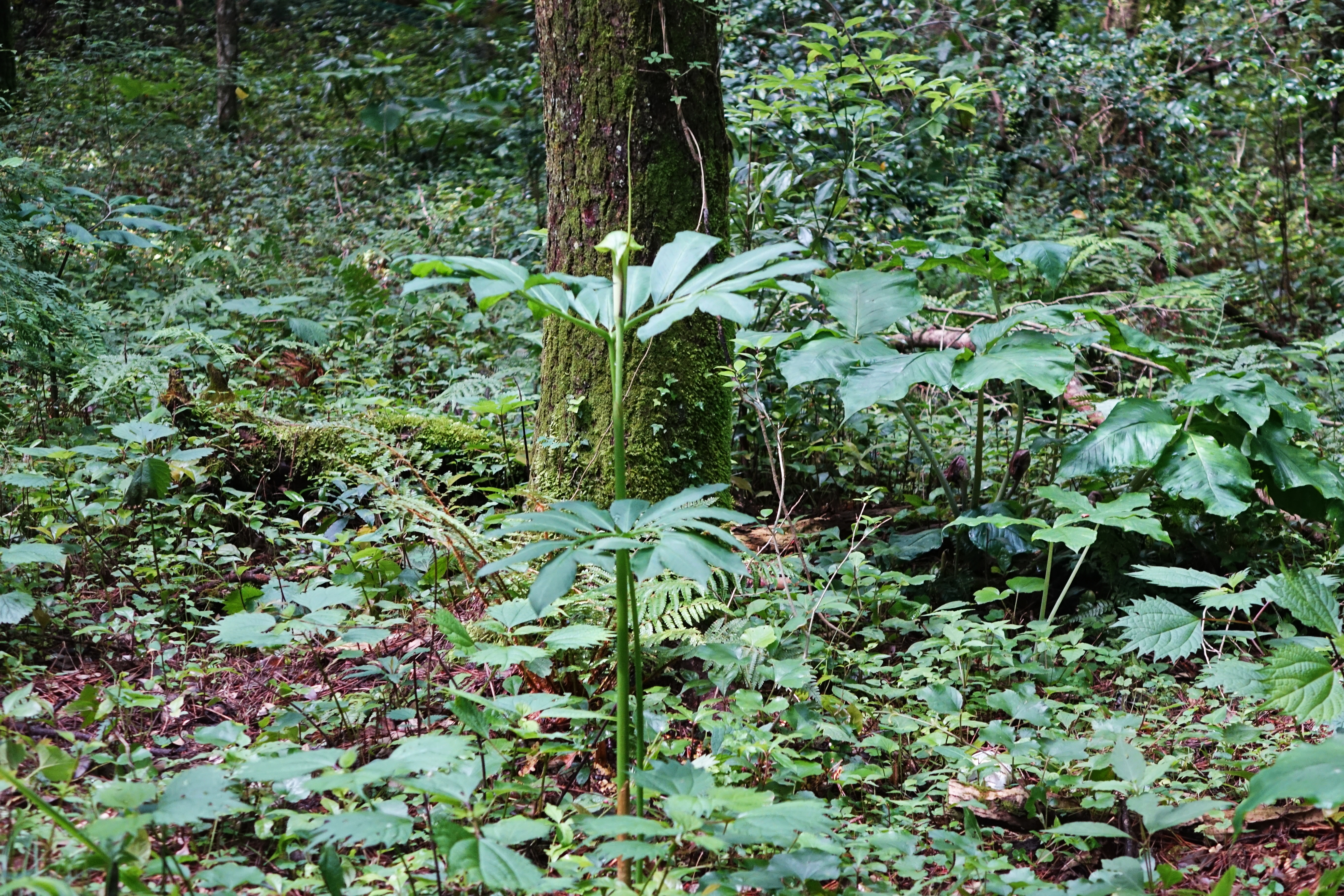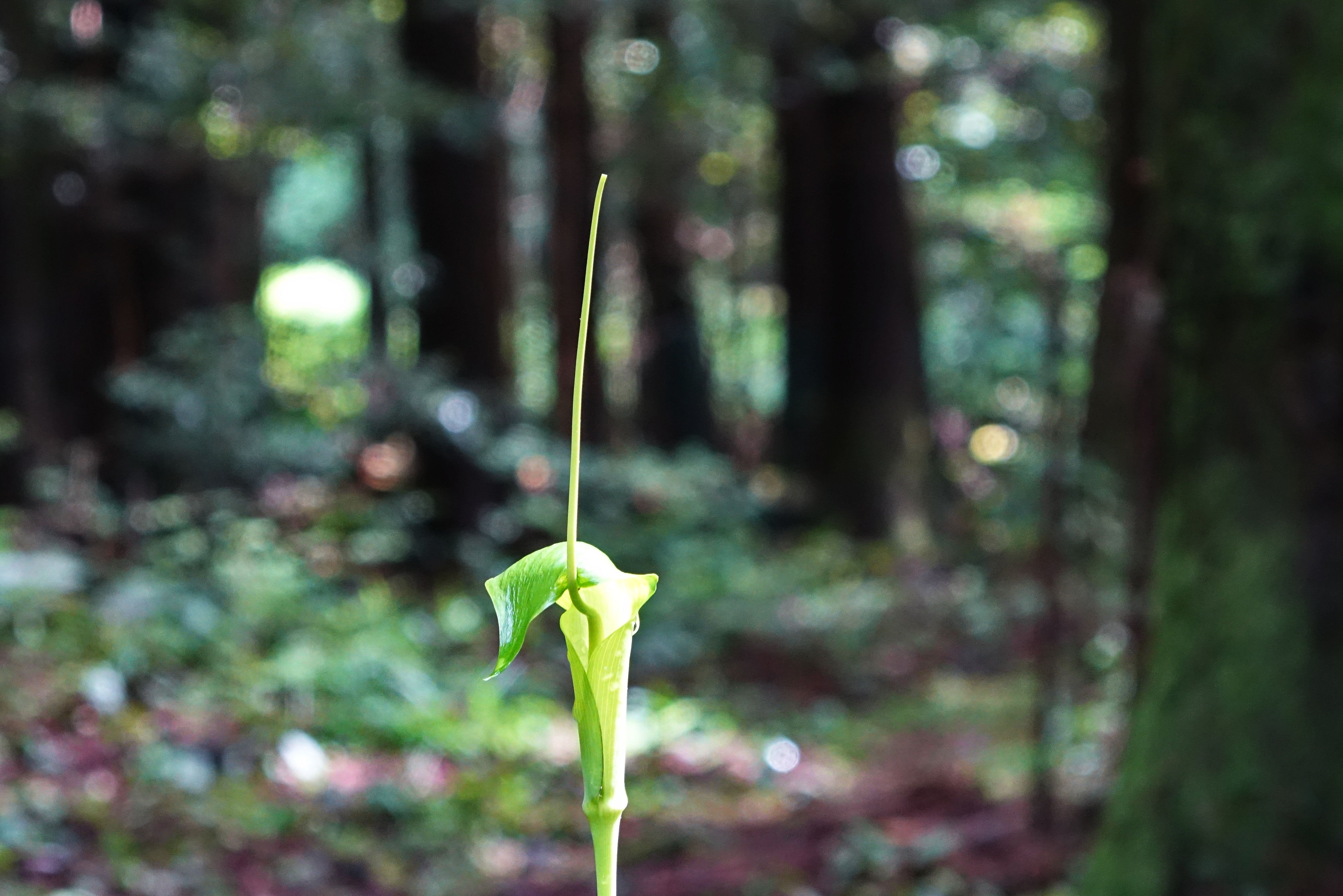 두루미천남성; 숲속에서 자라는 다년생 초본이다. 비옥한 땅의 습기가 많은 곳에서 자라는데 다른 천남성과 달리 음지뿐만 아니라 양지에서도 적응한다. 날개같이 생긴 잎 위로 꽃대가 길게 자라고 불염포라는 꽃 속에서 꽃술이 다시 길게 나와 1m가 넘는 것도 있다. 독성이 강해 위험하면서도 중요한 한약재로 사용된 것과 같이 긴 혀를 내민 독사의 형상으로 무섭게 보이는가 하면 학의 고고한 자태를 보인다는 양면성을 지니고 있다. 꽃말은 "비밀, 여인의 복수"