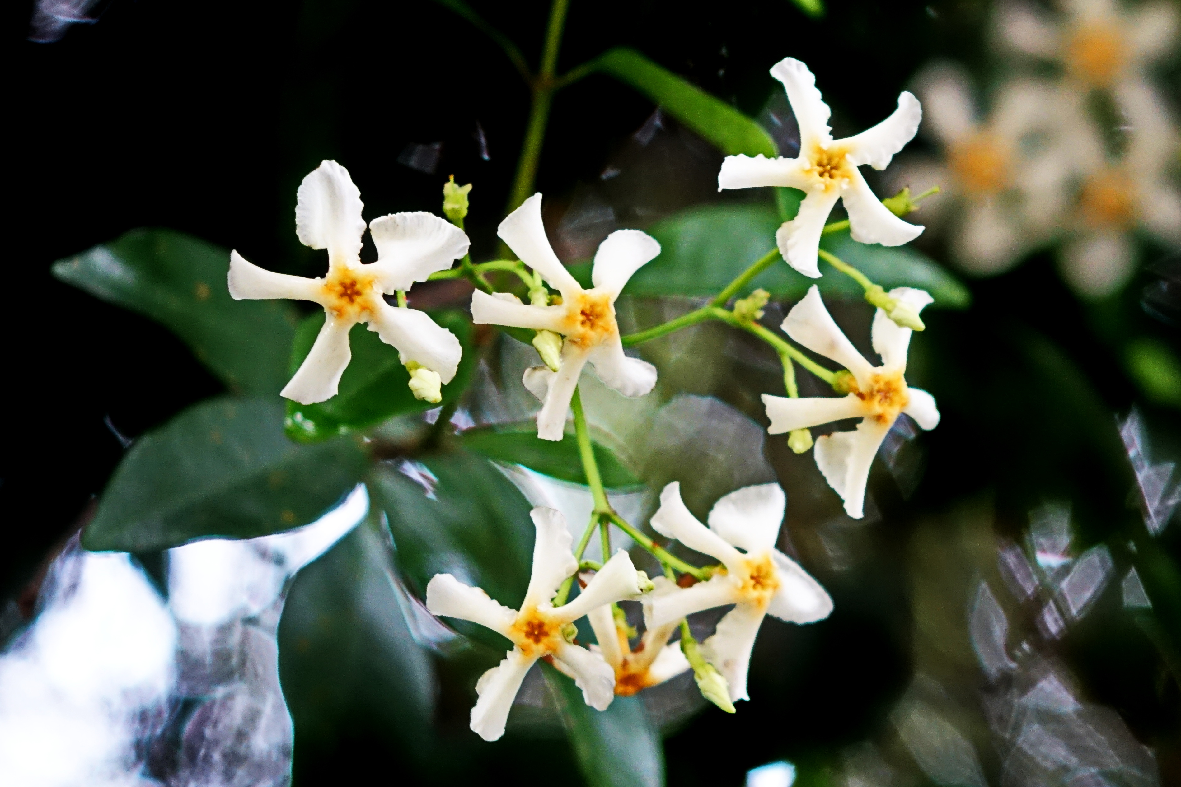 마삭줄; 남부지방의 산지 숲속에서 자라며 쌍떡잎식물로 줄기에서 뿌리가 내려 바 위나 나무 등 다른 물체를 잡고 5m 정도 벋어나간다. 사시사철 푸른 상록 덩굴이나 단풍잎도 동시에 갖고 있다. 꽃은 5~7월에 흰색으로 피었다가 노란색으로 변하고 취산꽃차례를 이룬다. 꽃잎은 5개로 갈라지는데 약간 뒤틀린 모습이 선박의 스크루를 닮아 보인다. 몸 전체 부위가 큰 것을 백화등이라 한다. 한방에서는 잎과 줄기를 해열, 진통제로 썼다고 한다. 꽃말은 “하얀 웃음”