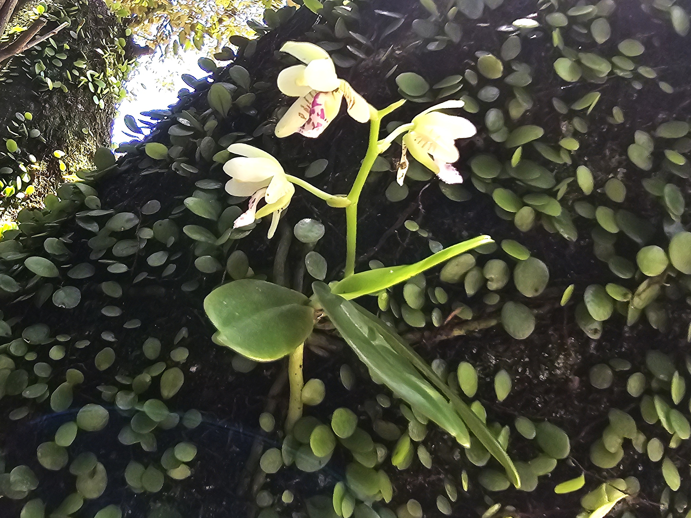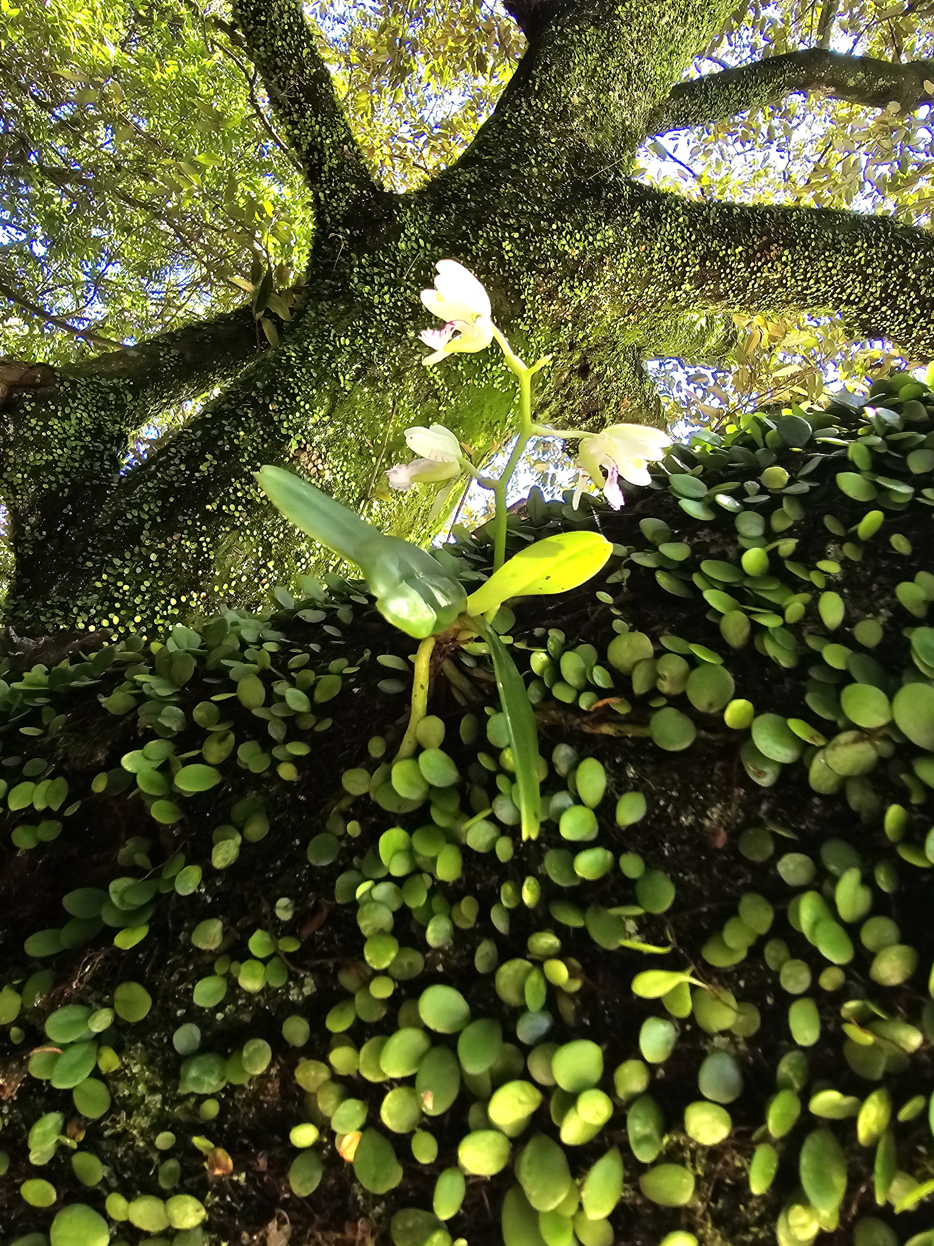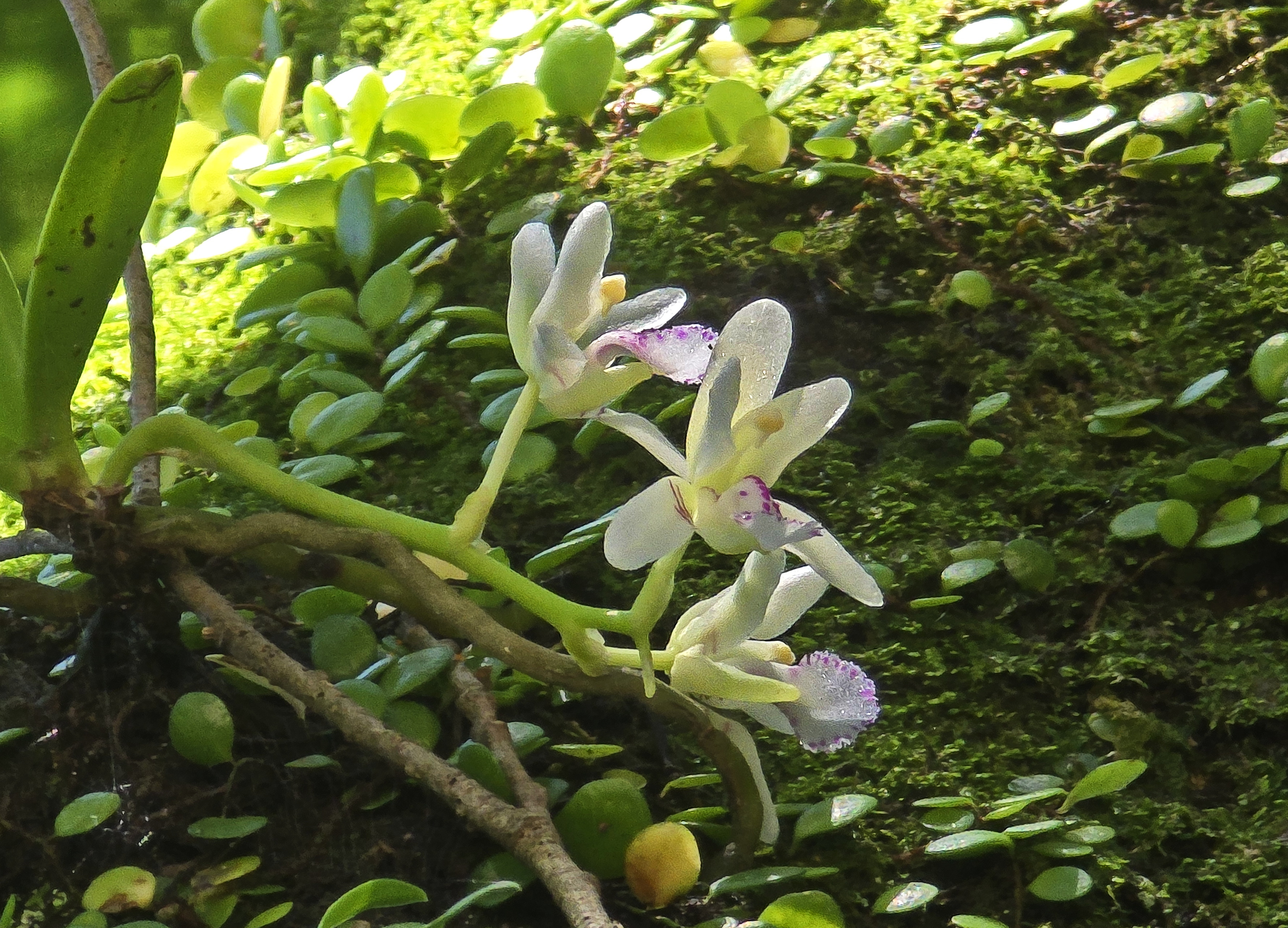 나도풍란; 제주도와 남부 지방 일부 지역의 상록수 나무줄기나 바위에 붙어 자라는 착생 난초의 하나로 노란나비난초 또는 대엽풍란 등으로도 불리며 멸종위기 식물 1급으로 지정되어 있다. 공기 중에 노출된 기근인 긴 수염뿌리를 착생 수단으로 삼아 생존하며 짧은 줄기로 6~8월에 꽃을 피운다. 꽃말은 "인내"