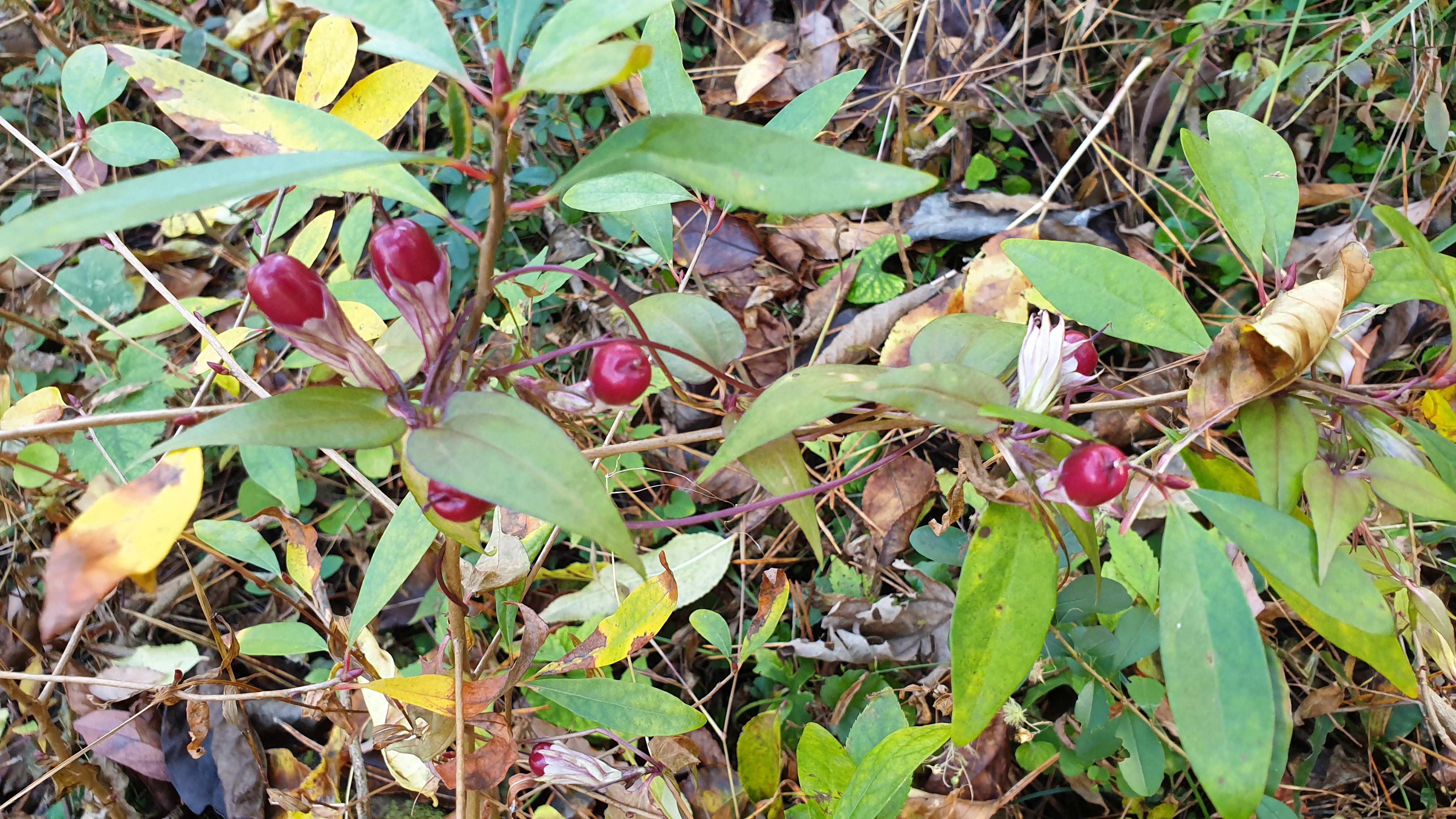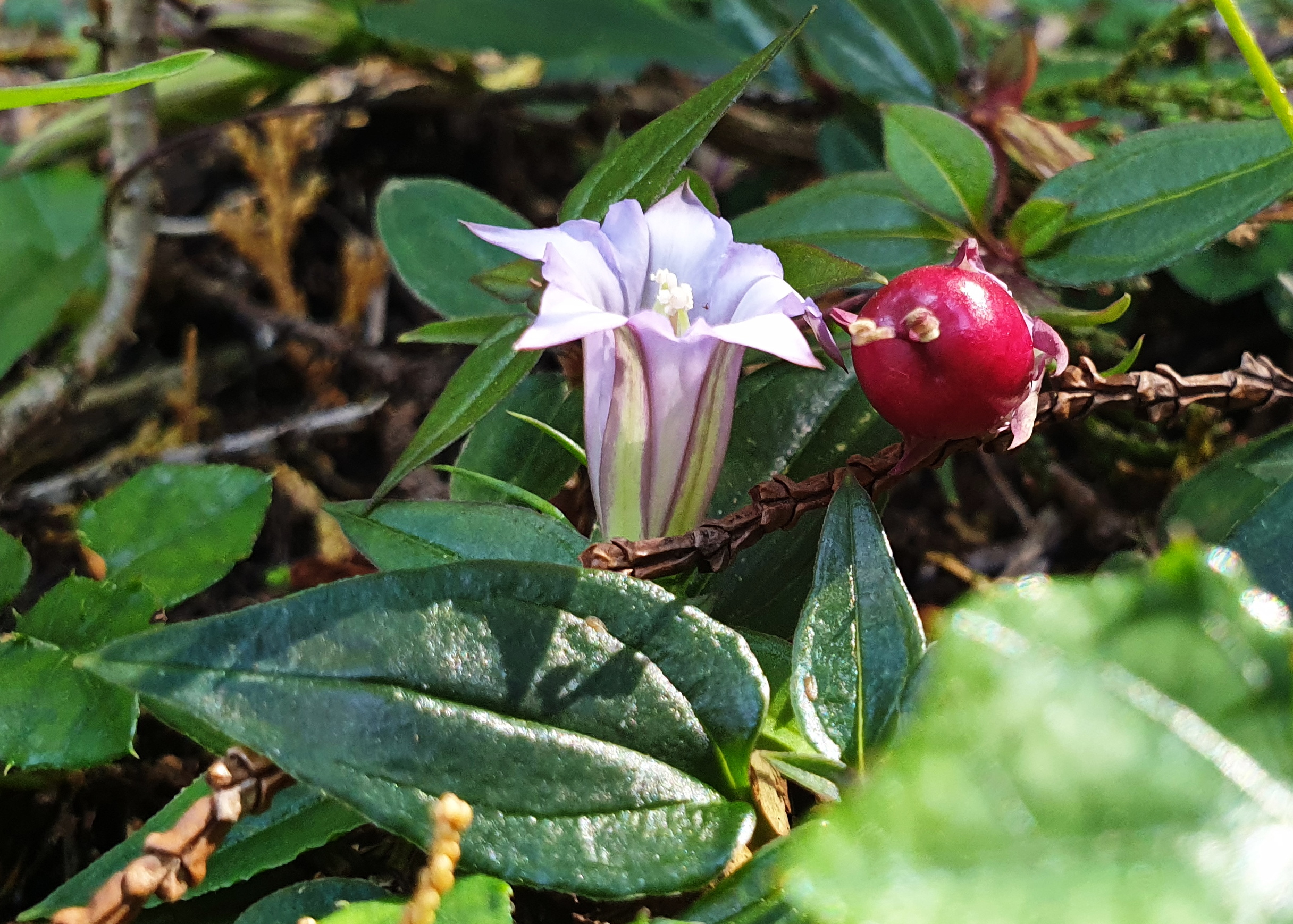 덩굴용담; 제주도와 울릉도의 산기슭 음지에서 자라는 덩굴성 여러해살이풀이다. 나뭇가지 등을 감고 올라 9~10월에 잎겨드랑이에서 흰색 또는 보라색 꽃을 피운 후 10~11월에 붉은 열매를 꽃 속에서 토해낸다. 한방에서는 청어담초라 하여 황달 등에 사용한다고 한다. 꽃말은 "당신의 슬픈 모습이 아름답다."