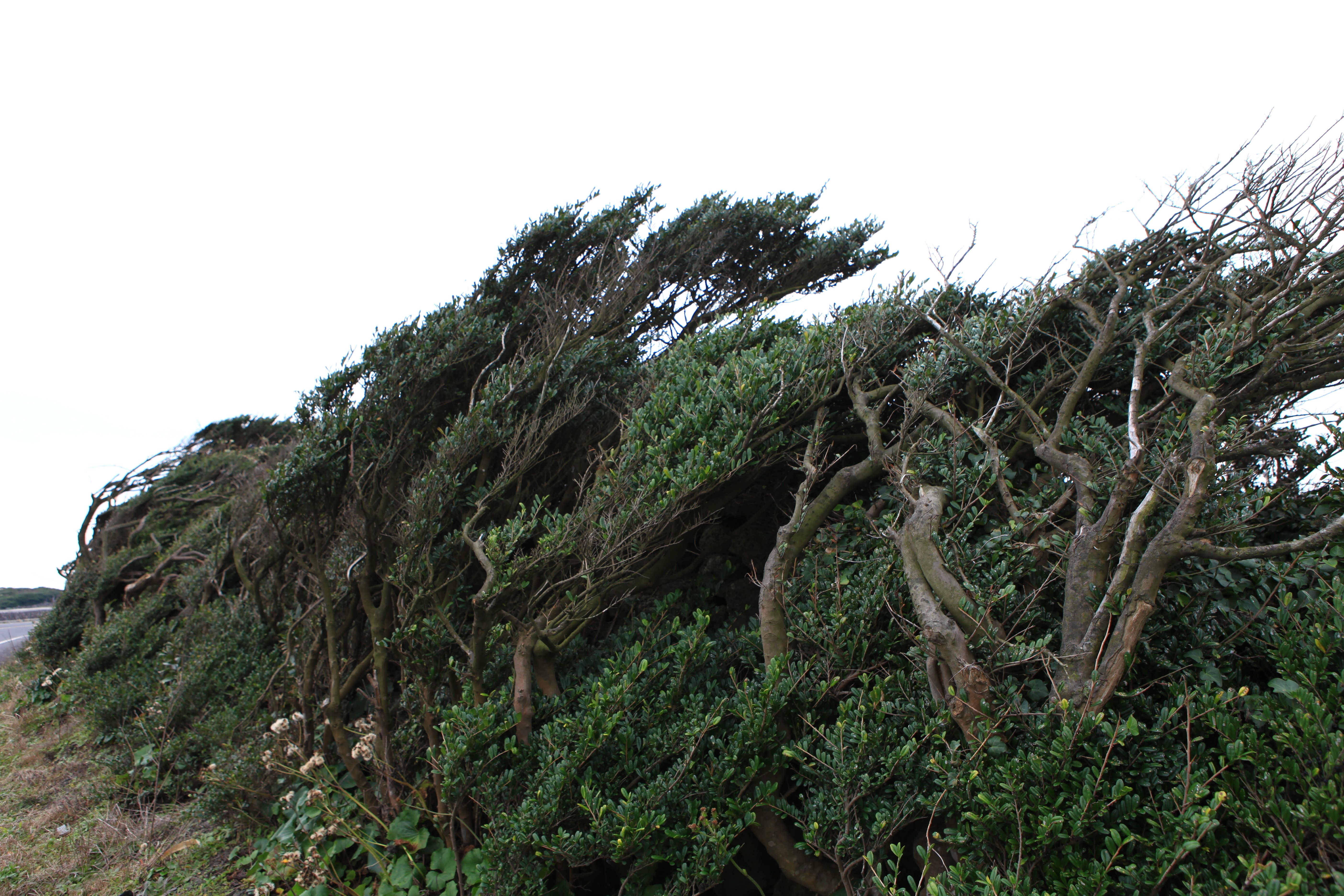 바닷가 나무는 기울어져도 여럿이 의지하는 것 같답니다.