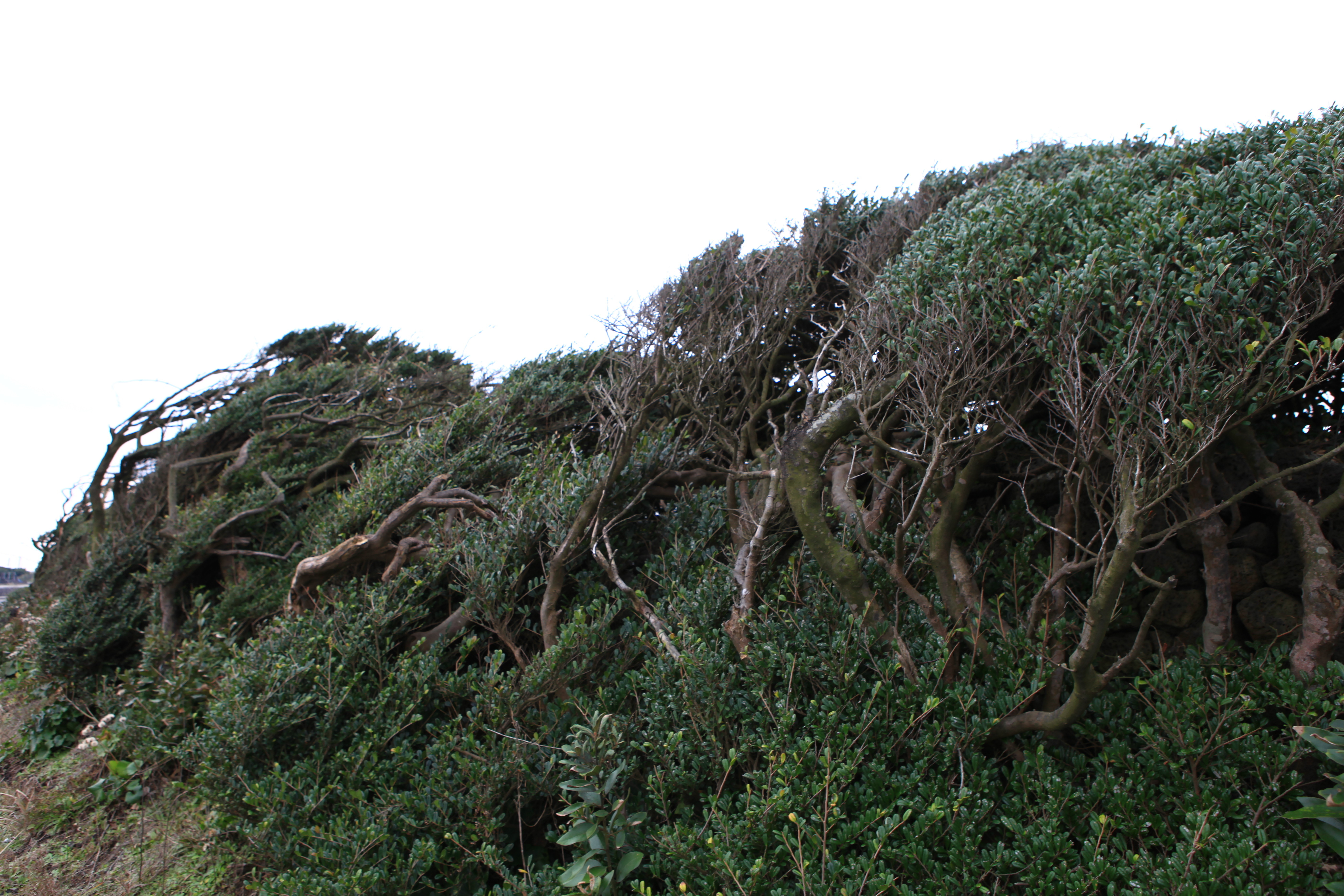 제주도 동쪽 바닷가에 사는 우묵사스레피나무는 겨울철에도 푸른 잎을 자랑하고 있는데