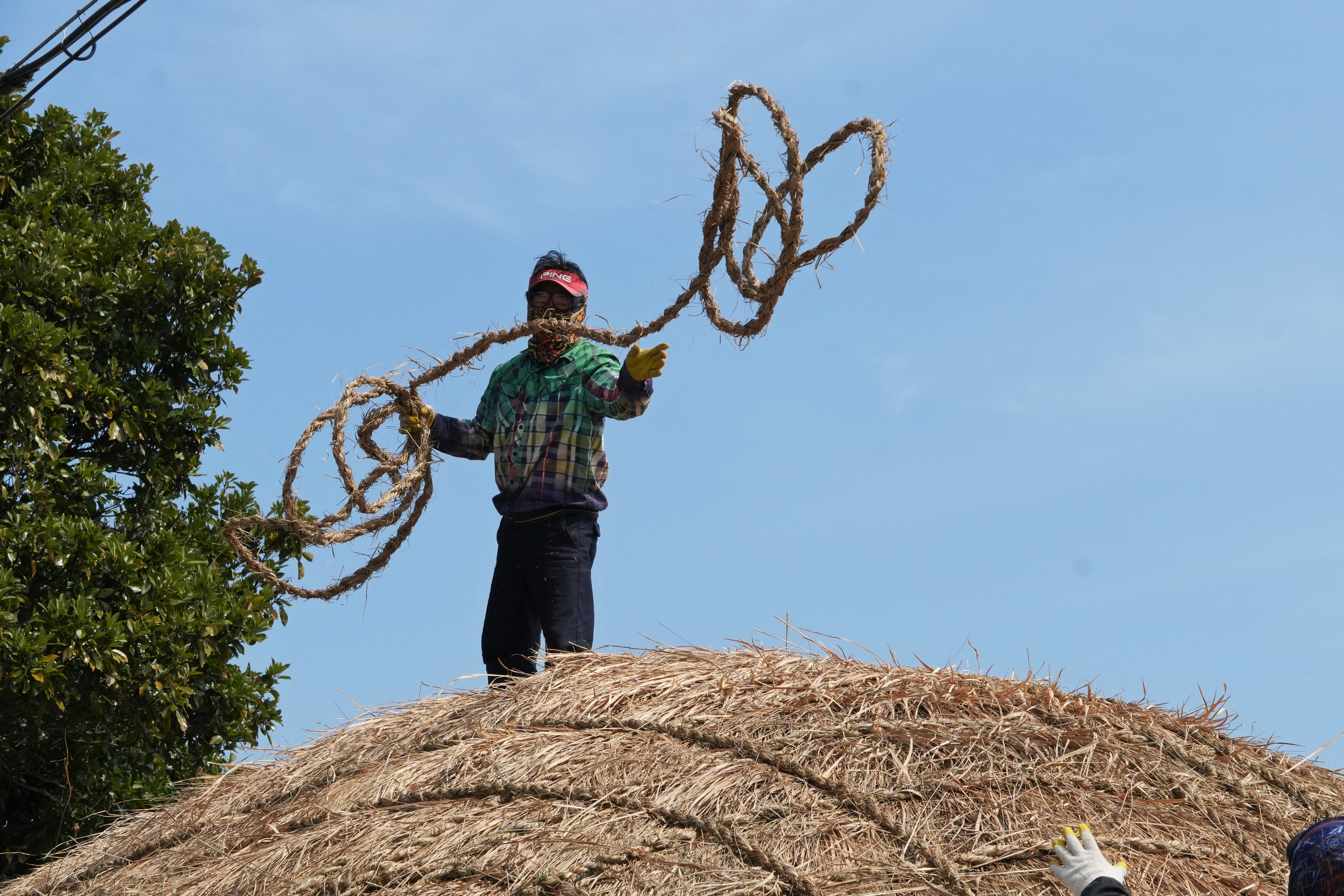 제주도는 바람이 거세기 때문에 지붕을 새로 만들면 밧줄로 단단히 묶어야 한답니다.
