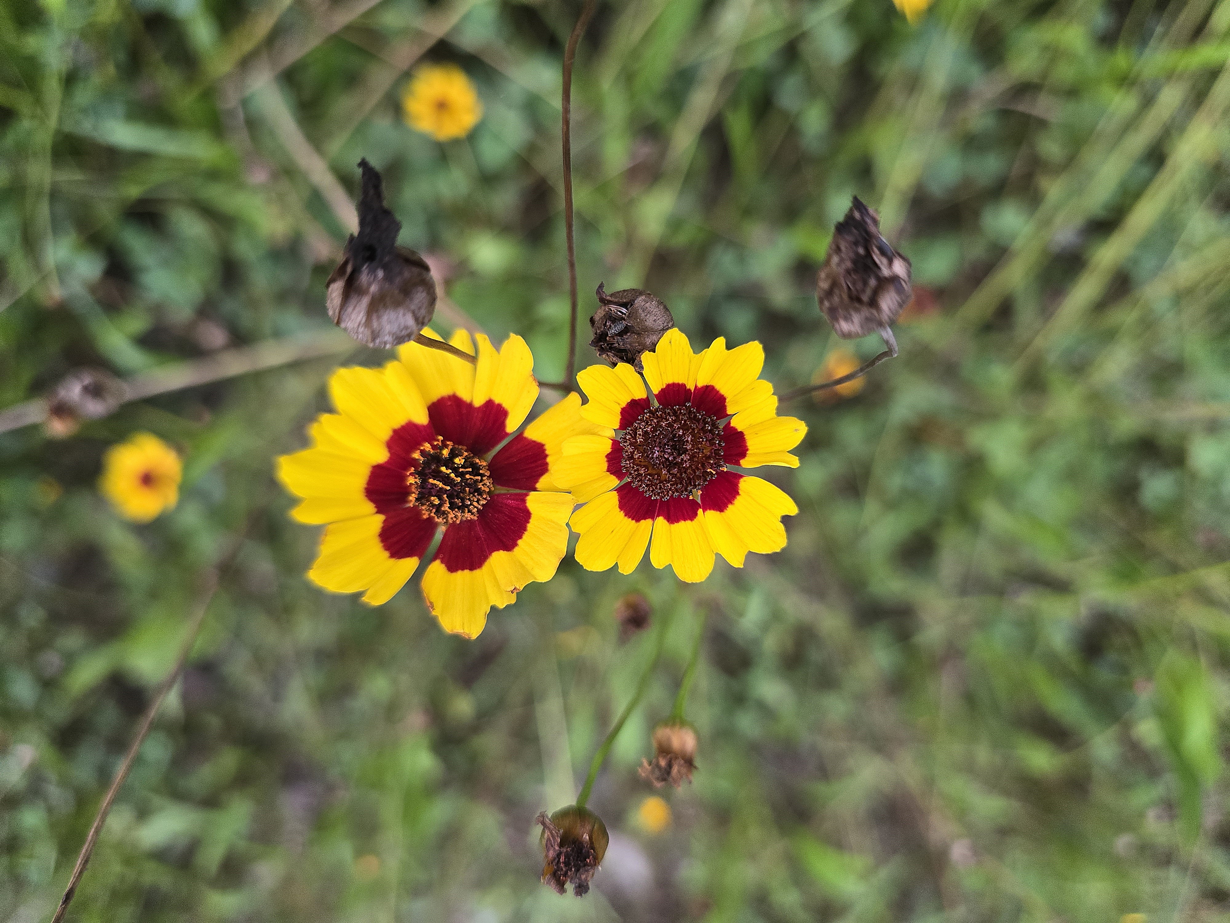 기생초; 북아메리카 원산지로 국화과의 한해살이 또는 두해살이풀이다. 노란 바탕 가운데 붉은색 무늬가 마치 기생이 치장한 것 같은 아름다움이라고 해서 이름이 붙었다는 말이 있다. 본래 원예종으로 들여왔지만, 생활력이 강해 밖으로 널리 퍼져 여기저기 풀밭에서 많이 자라고 있다. 꽃은 7~10월까지 피고 키 높이가 1m까지 자란다. 꽃말은 “다정다감한 그대의 마음”